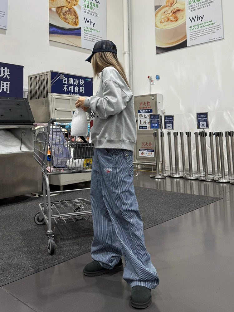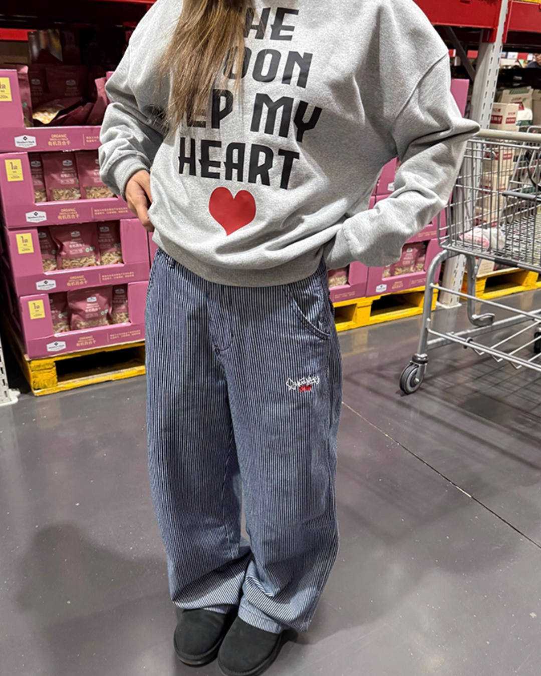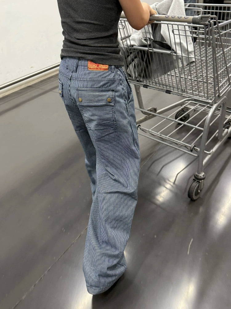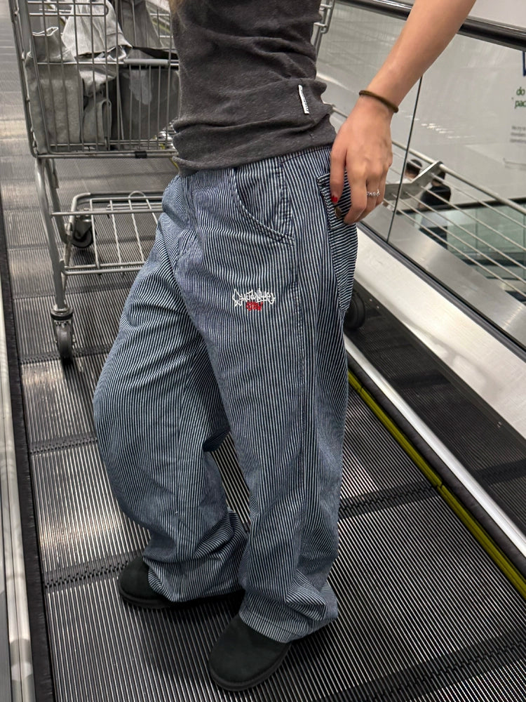 Striped pants that showcase a trend-like styling just by wearing them.