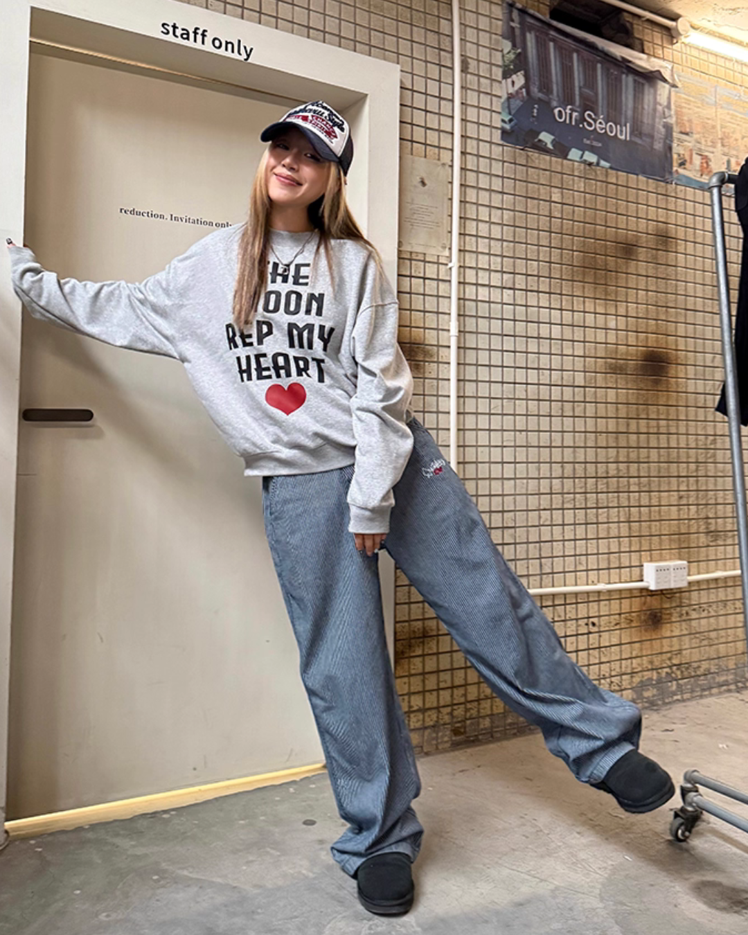 Just pairing it with a simple top achieves an adult casual coordinate.