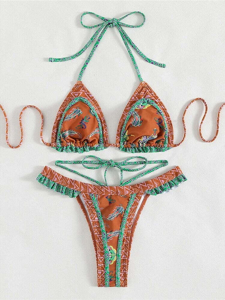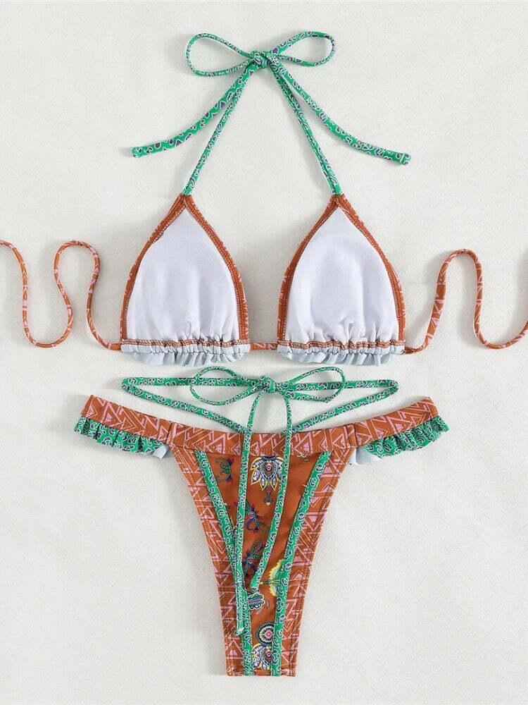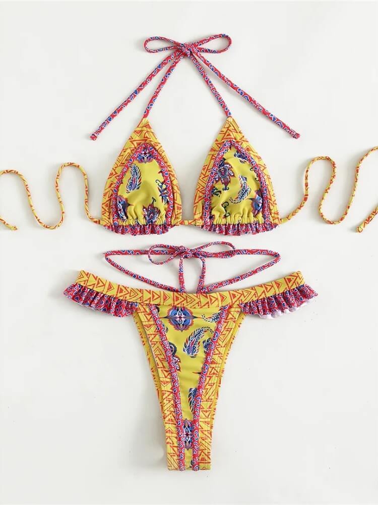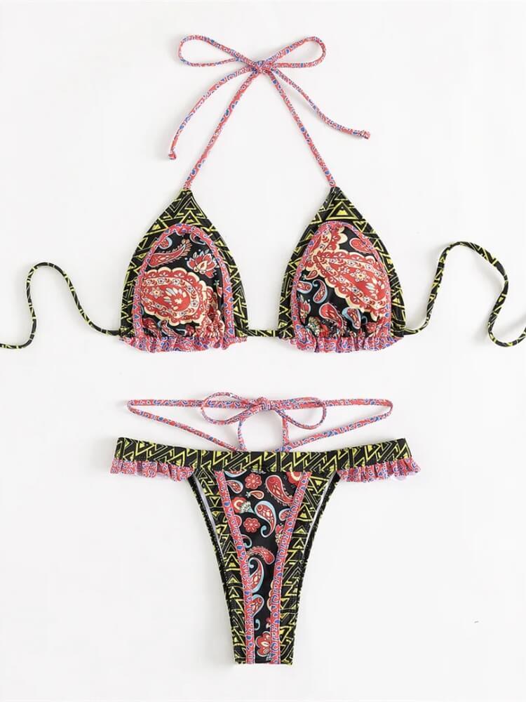 Embroidered Trim Bikini Set