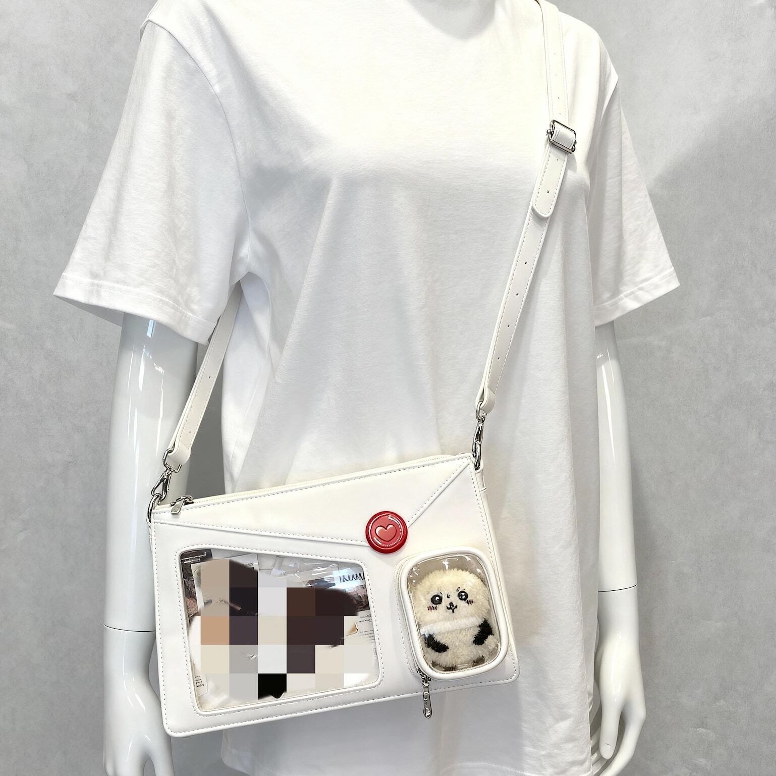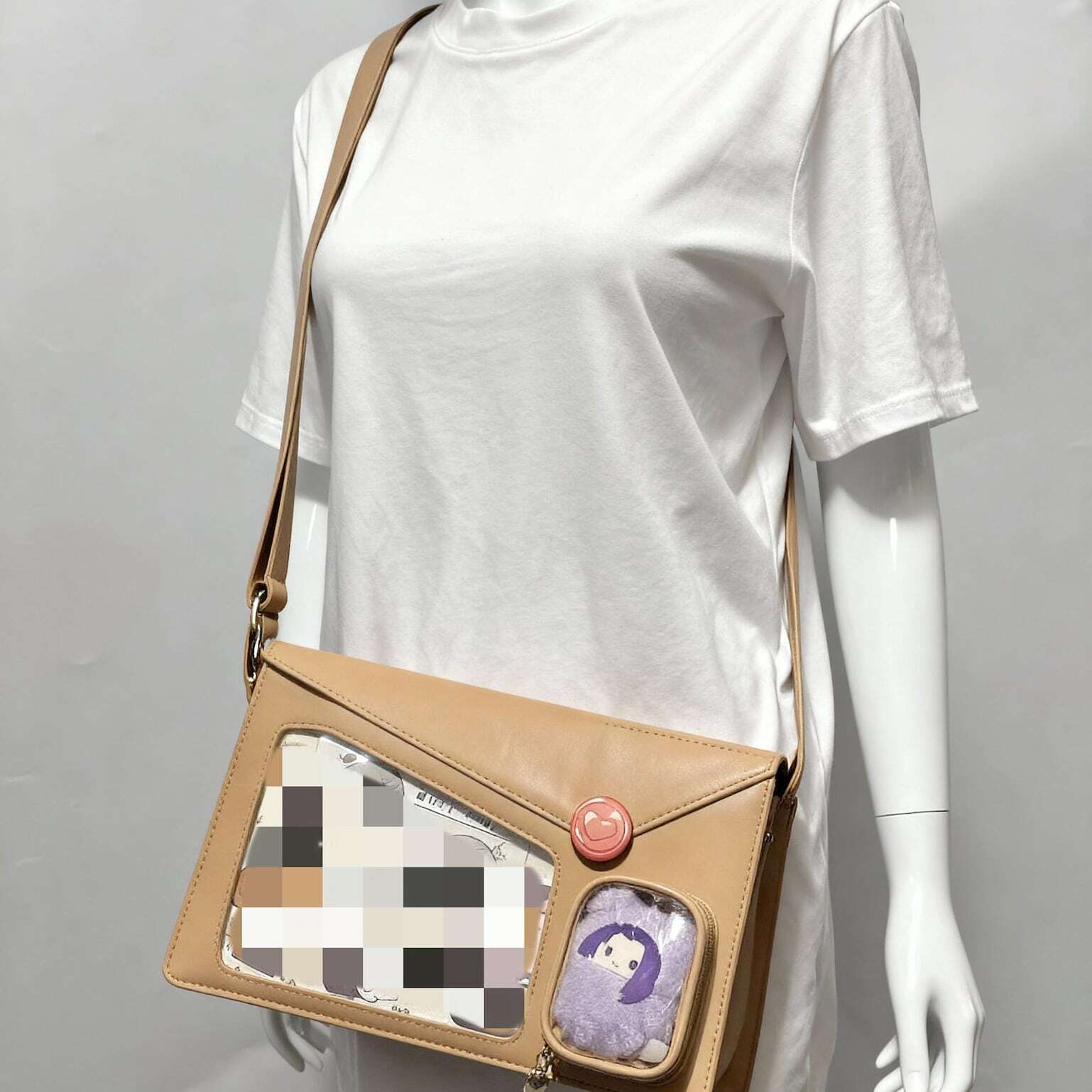 Envelope Ita Crossbody Bag with Clear Window for Plushies and Pins is designed to display plushies, dolls, pins, and badges while keeping everyday essentials organized.