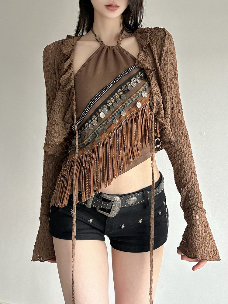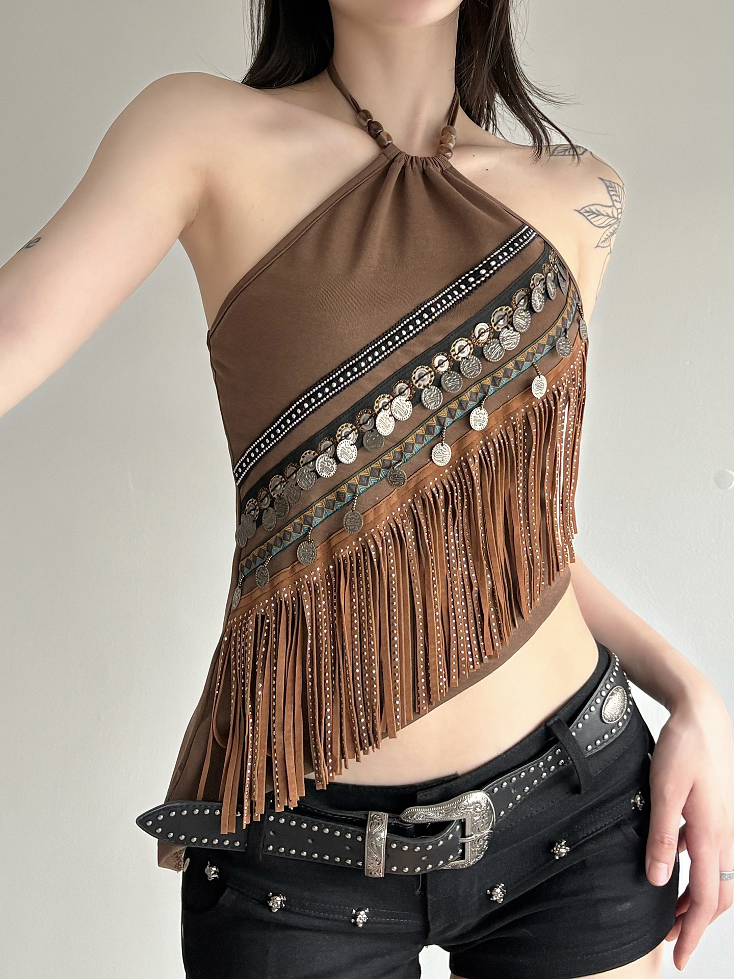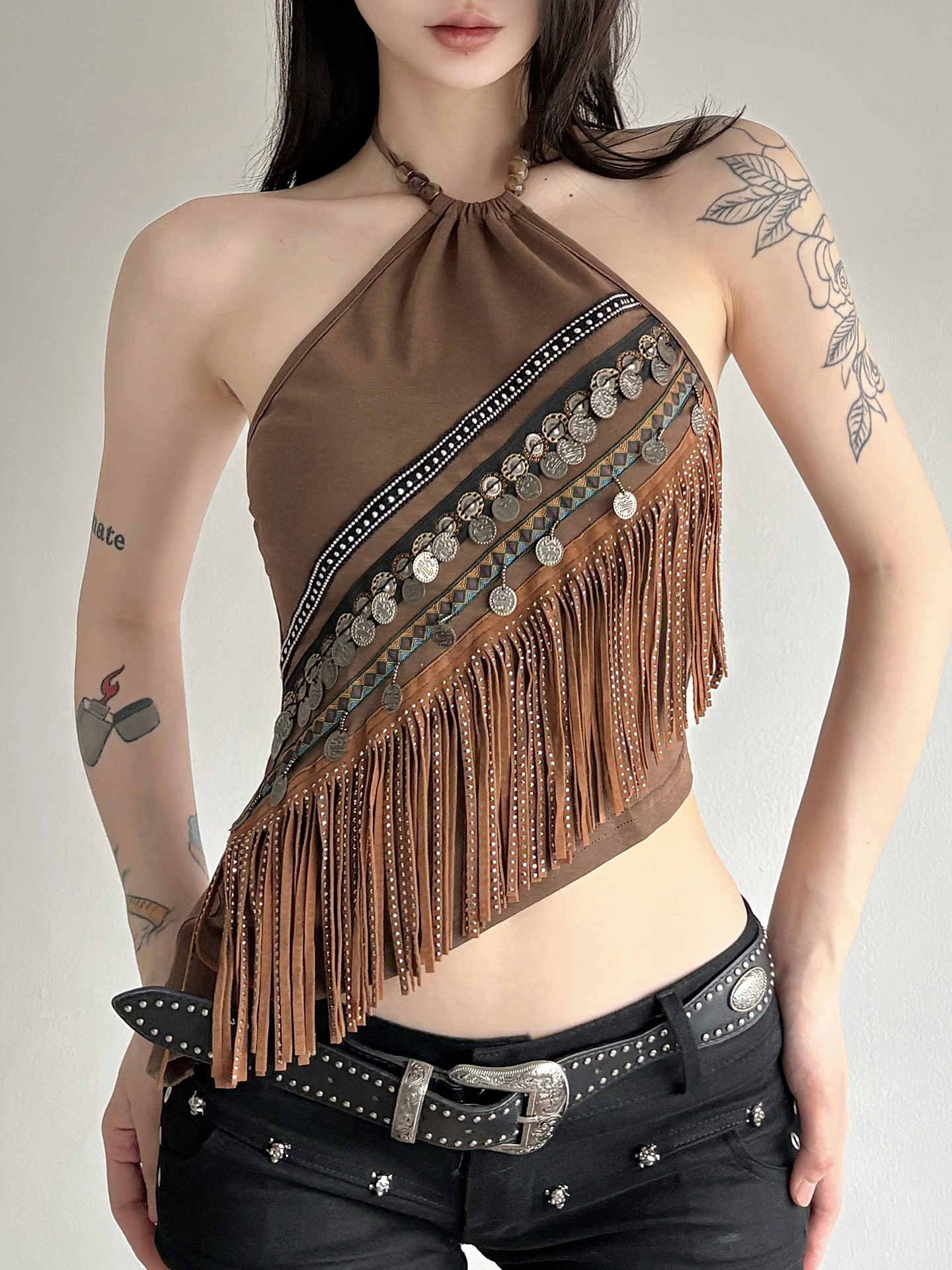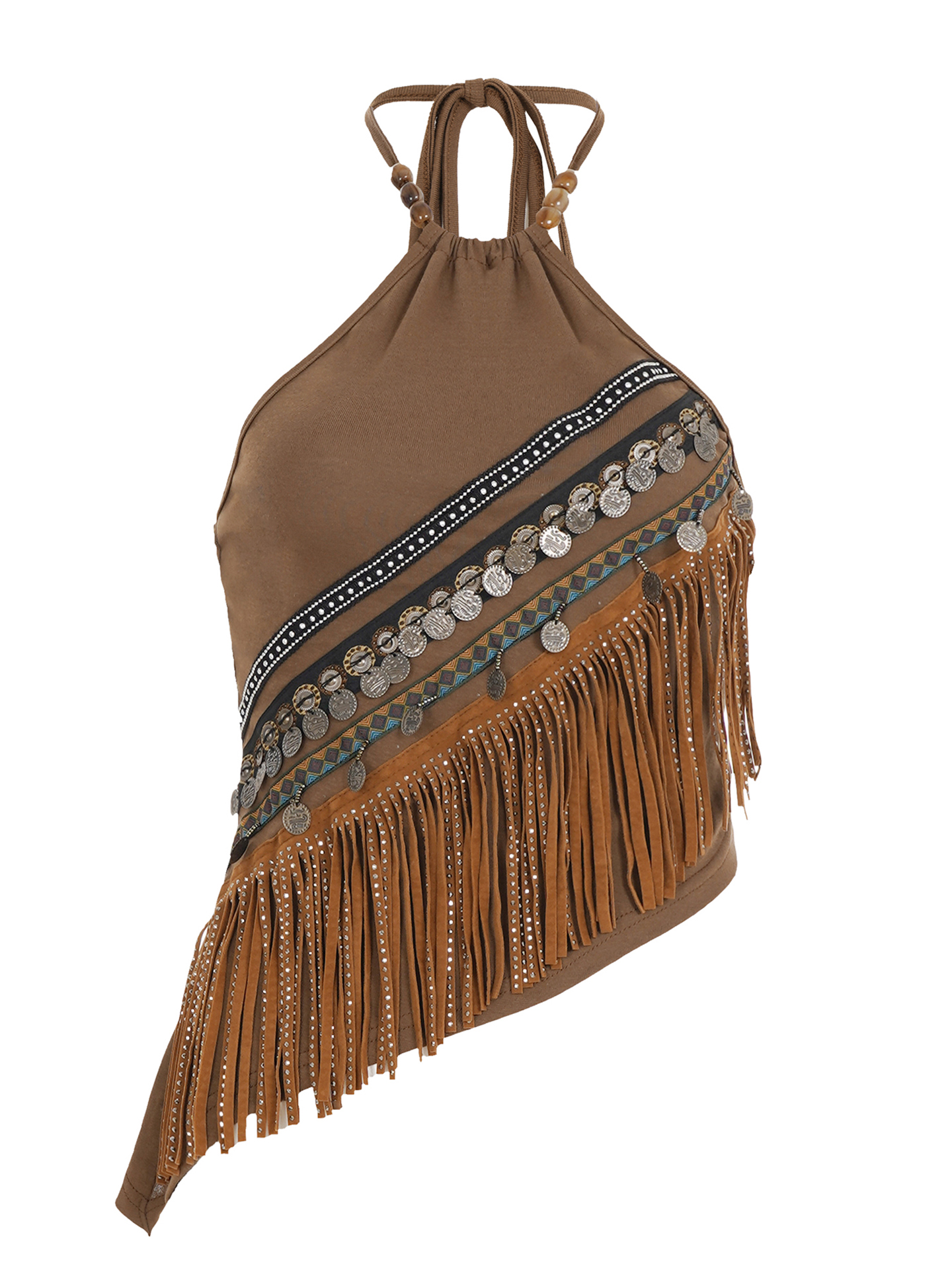 Elevate your wardrobe with our Ethnic Style Metal Decorative Beaded Neck Strap Women’s Irregular Slim Short Tassel Vest Top, a stunning piece that embodies Boho chic fashion. This uniquely designed vest top features intricate beadwork and stylish tassels, ensuring a flattering fit that highlights your silhouette while offering comfort for any occasion. Perfect for layering or wearing solo, this versatile top is a must-have for your collection. Don’t miss out on making a bold statement add this exquisite piece to your cart today!