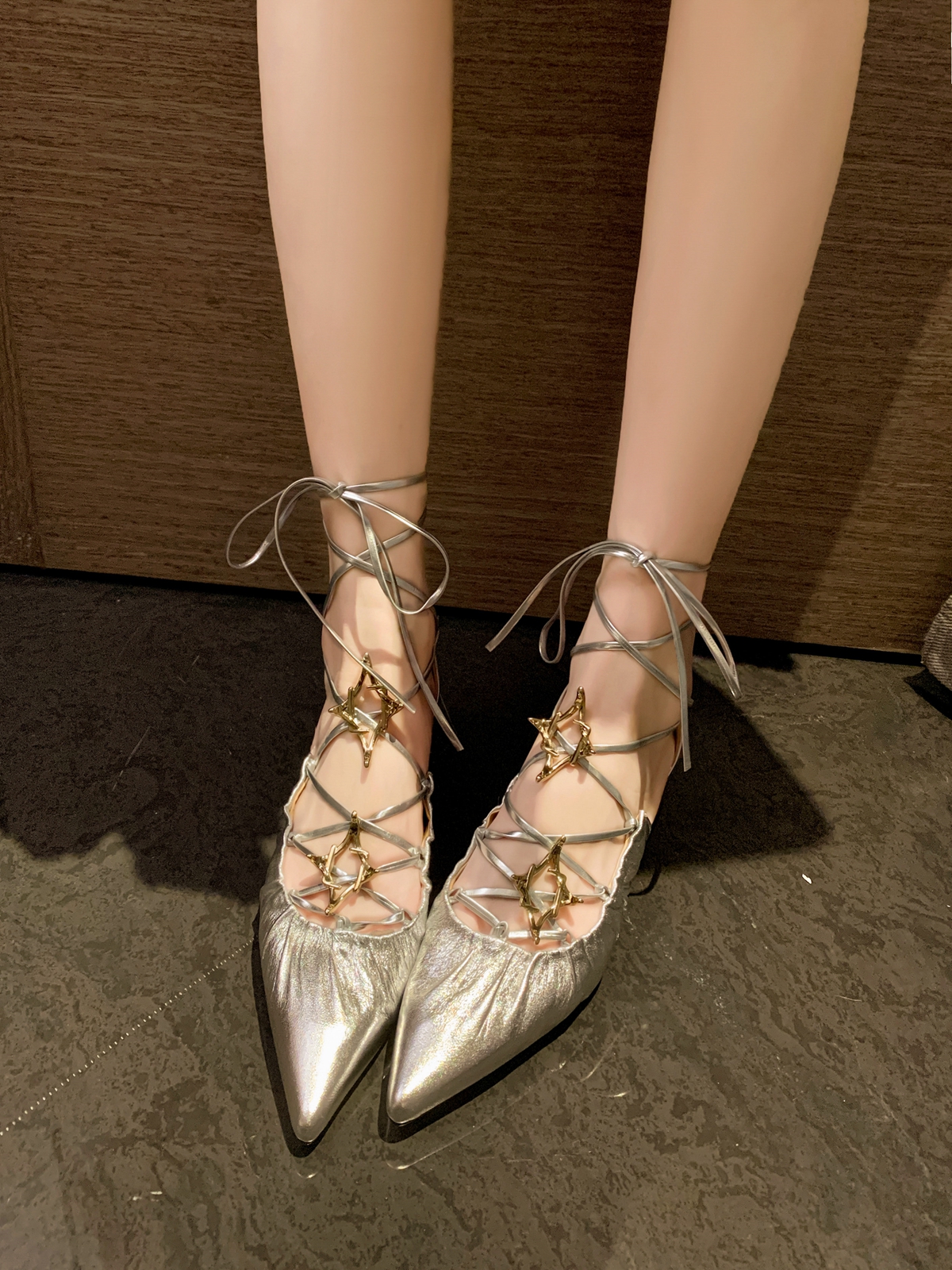 Exotic Fairy Tie Up Pleated Golden Roman Sals Pointed Toe Chunky Heel Silver Shoes Women Summer High-quality product featuring summer fits, fall fashion, pretty outfits and more. Modern design that fits the latest trends. Premium materials ensure durability and comfort. Order now for special offers! Product designed with attention to every detail. Suitable for all occasions and personal styles.