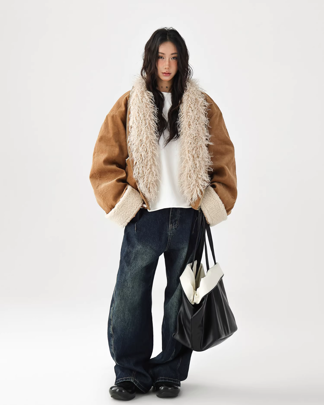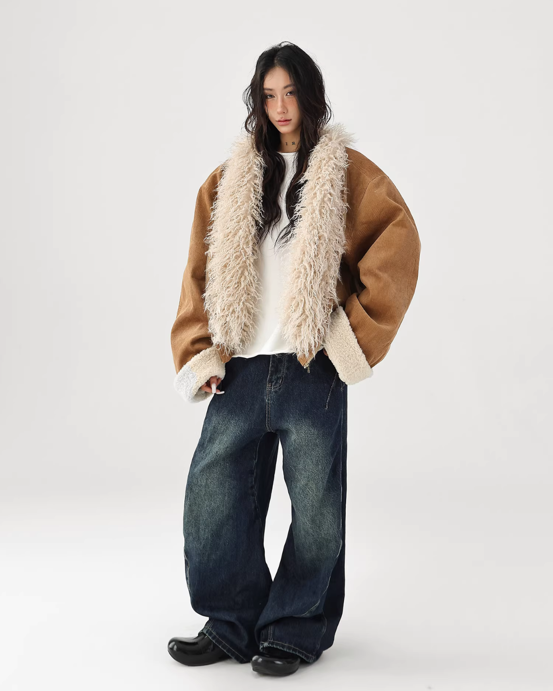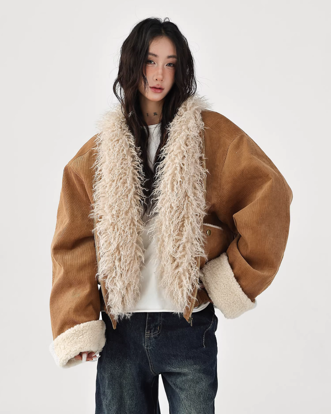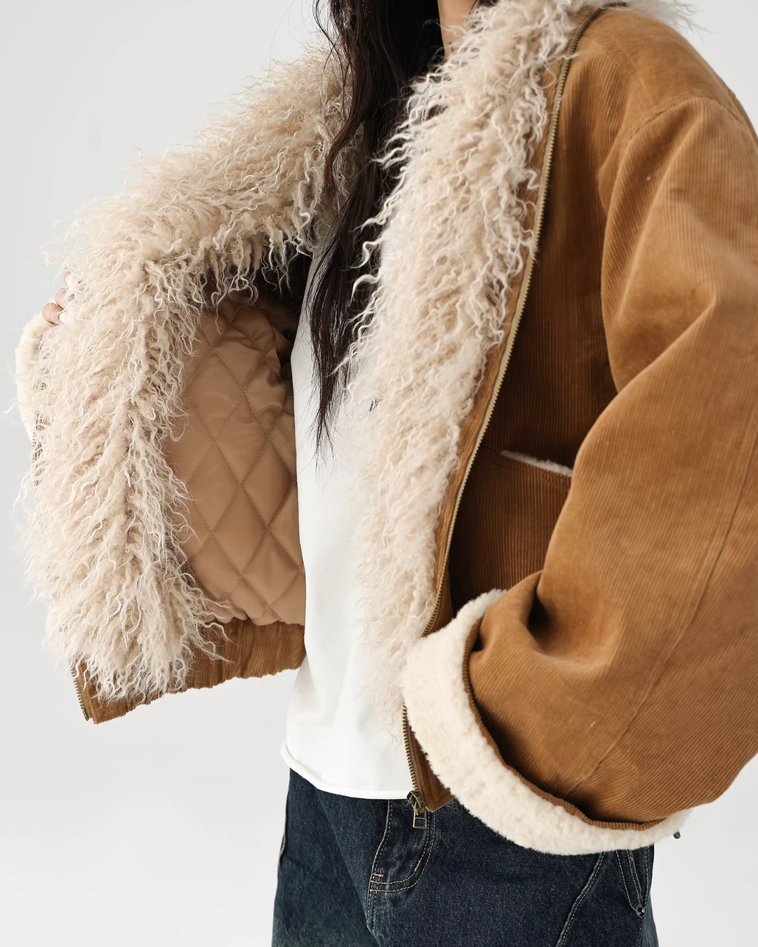 A cute fur coat with a voluminous silhouette.