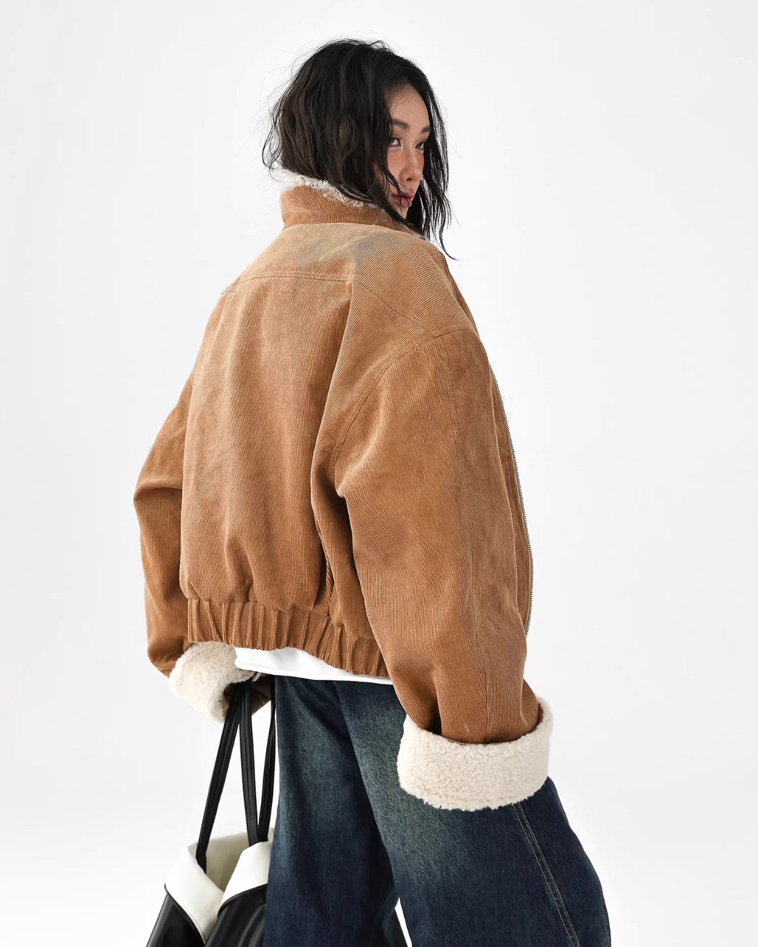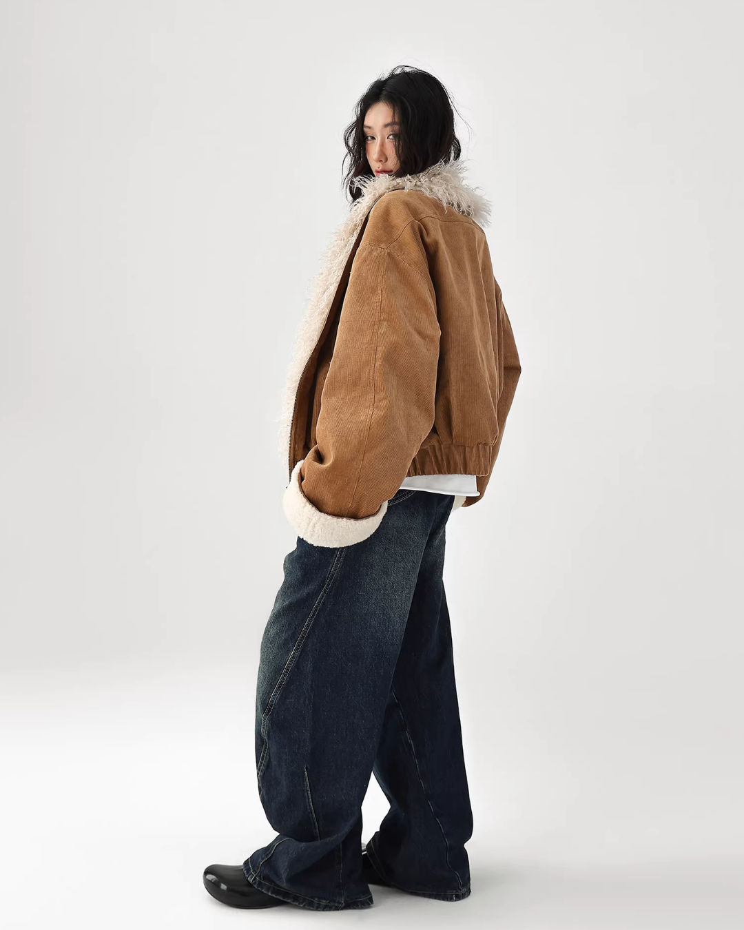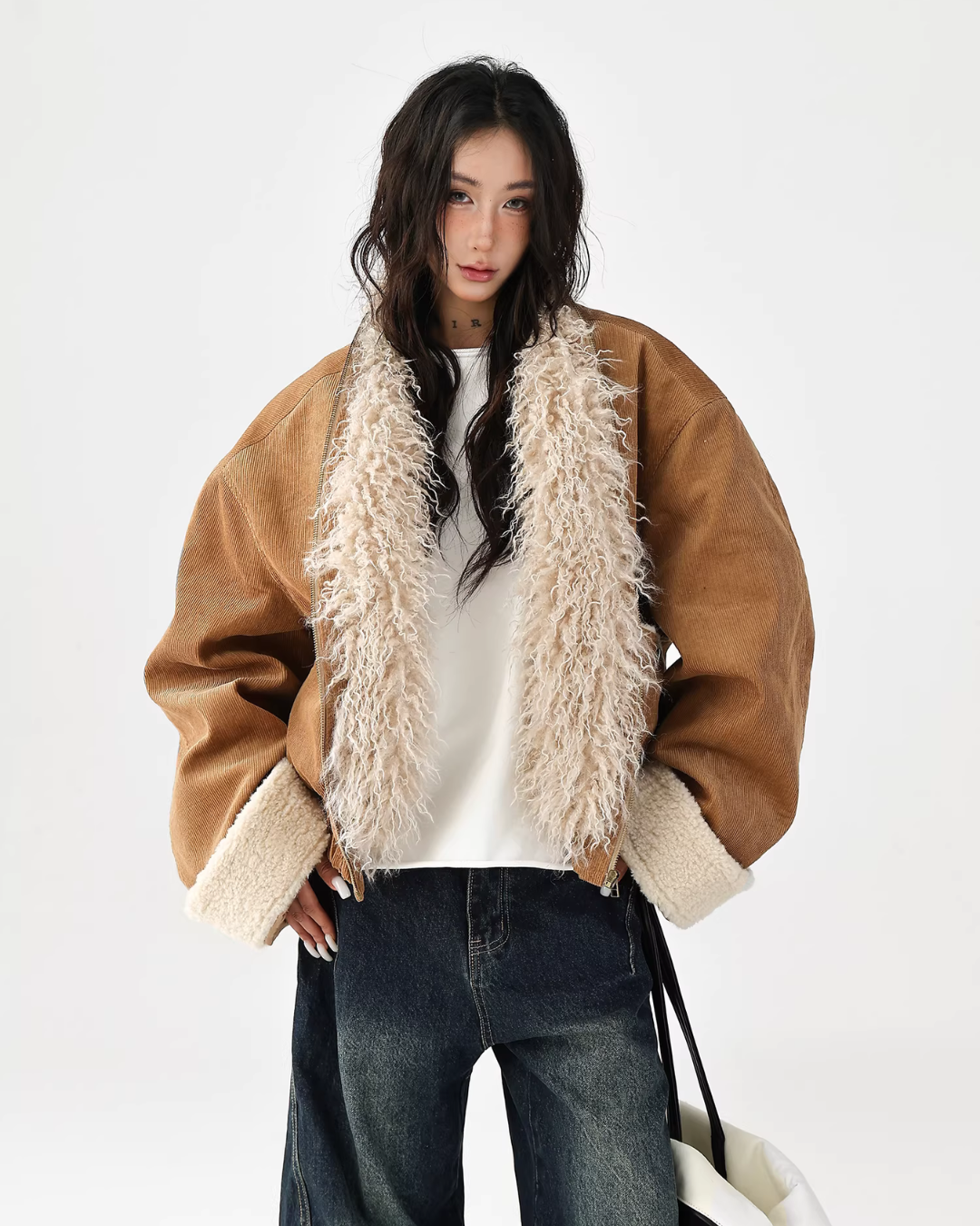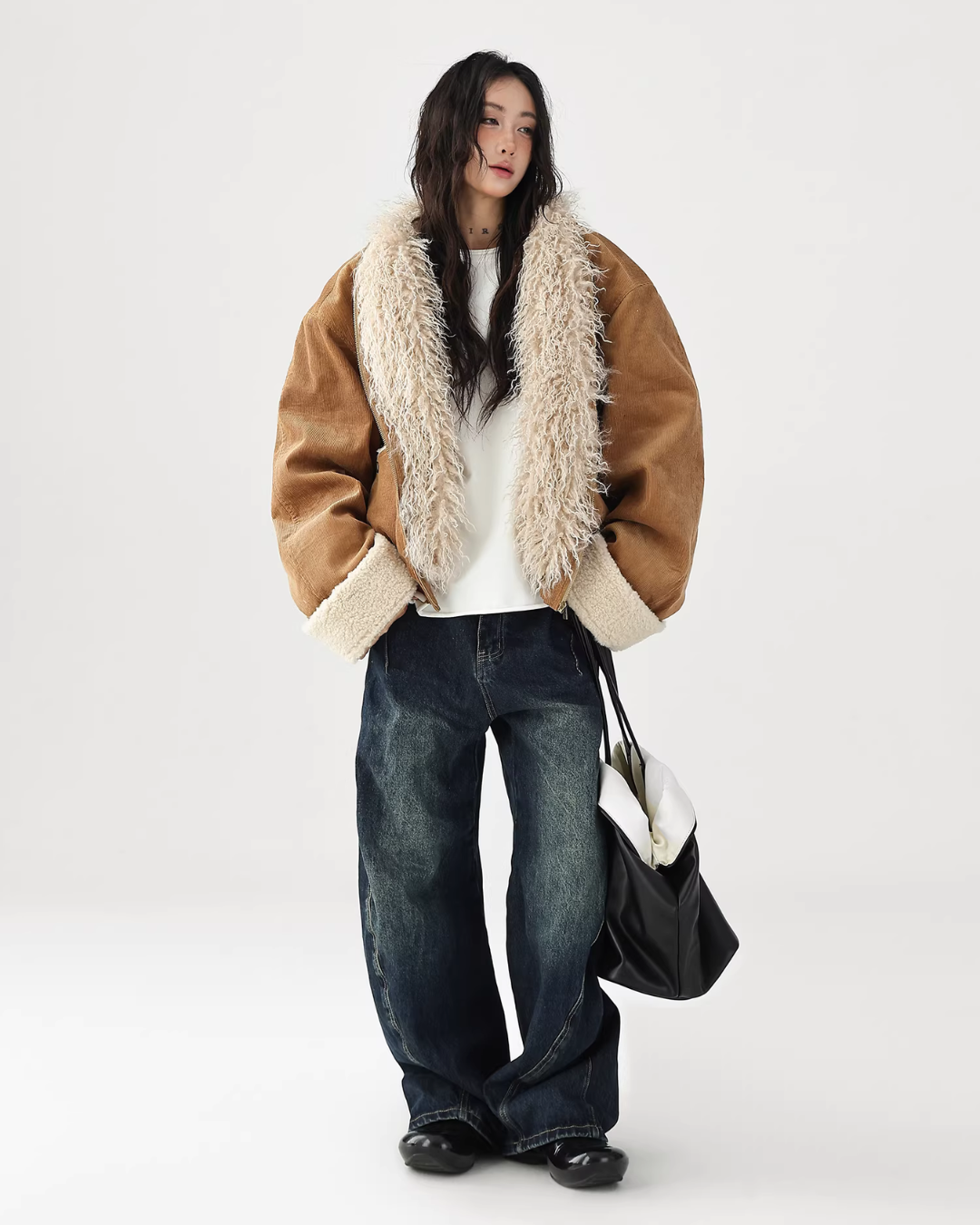 A cute fur coat with a voluminous silhouette.