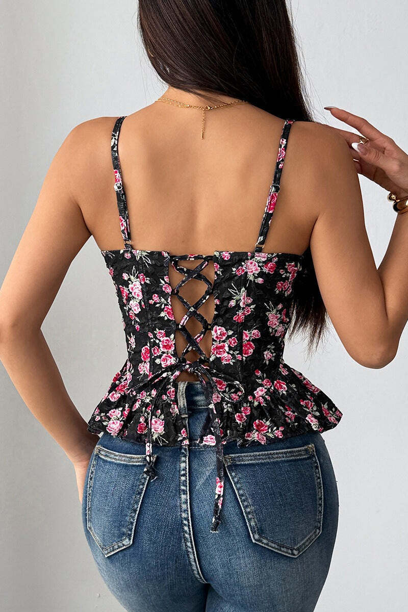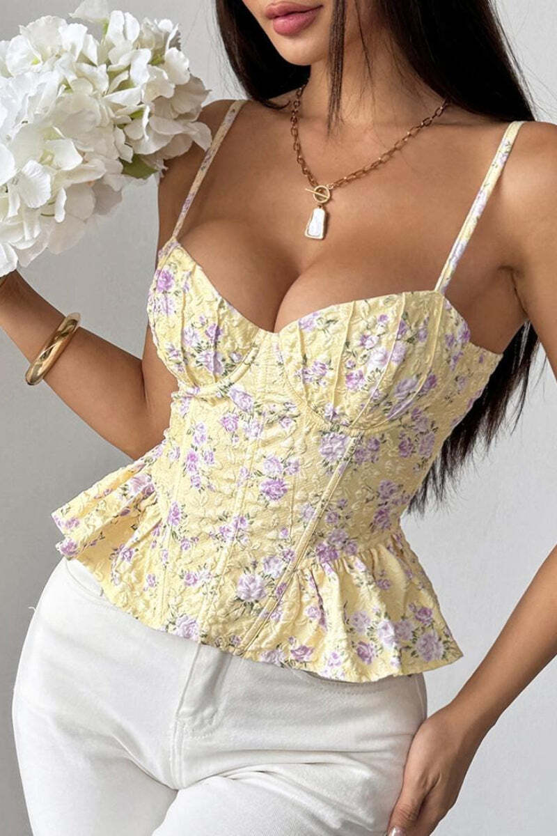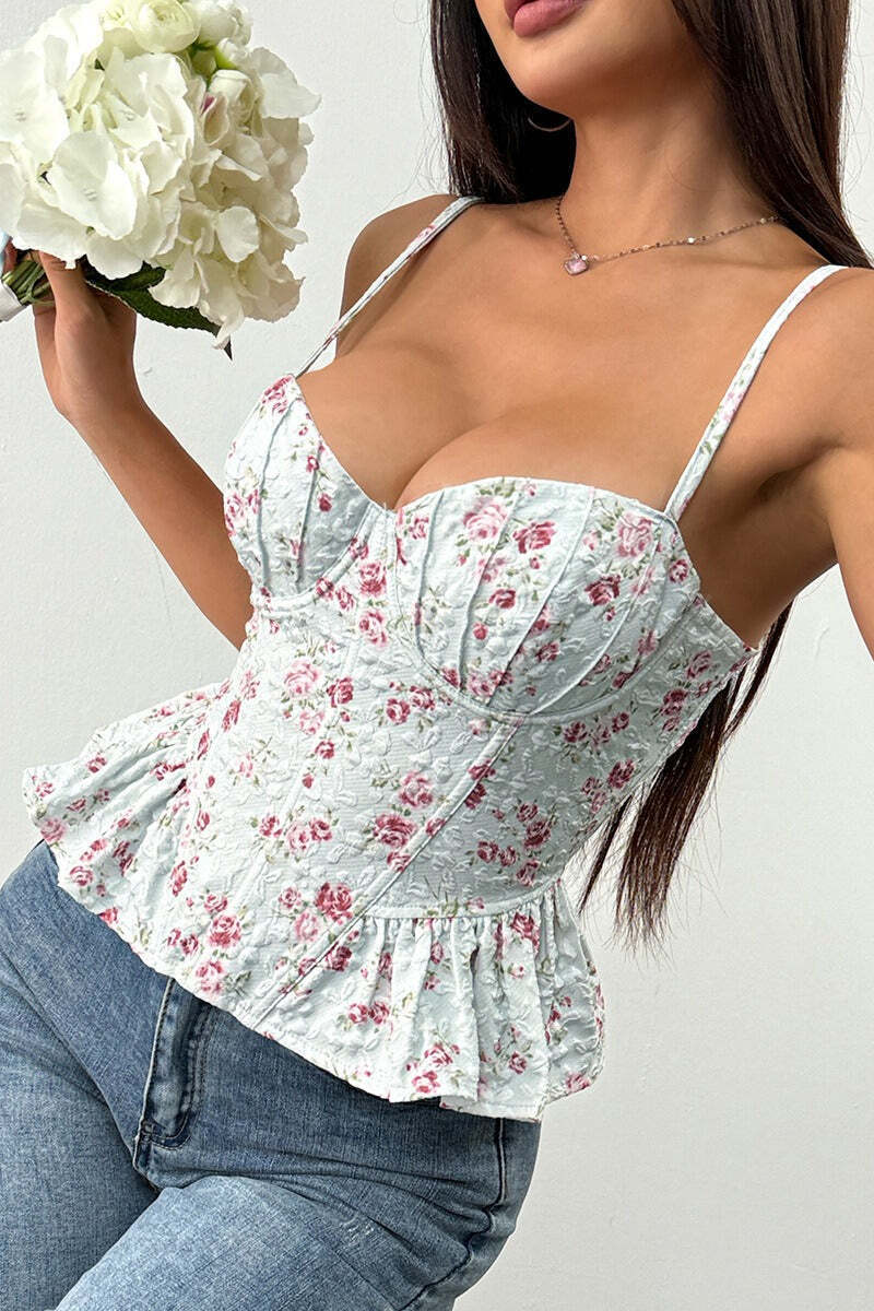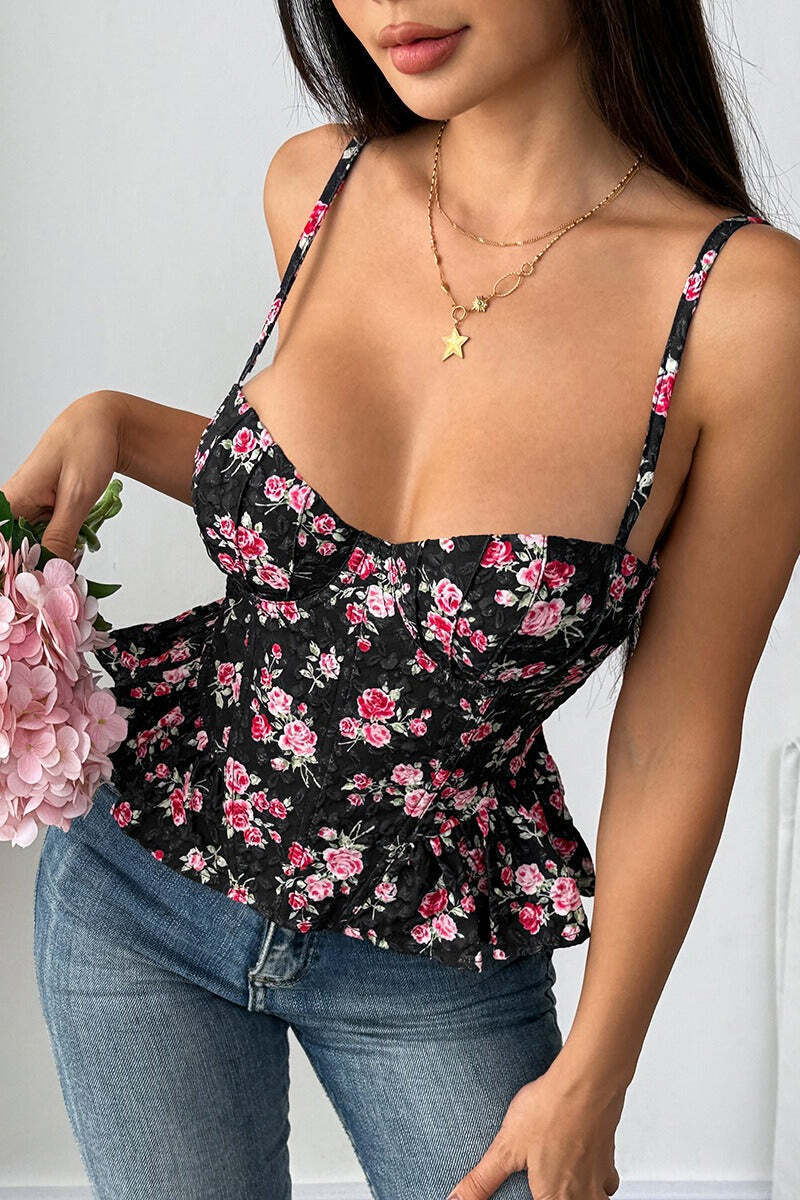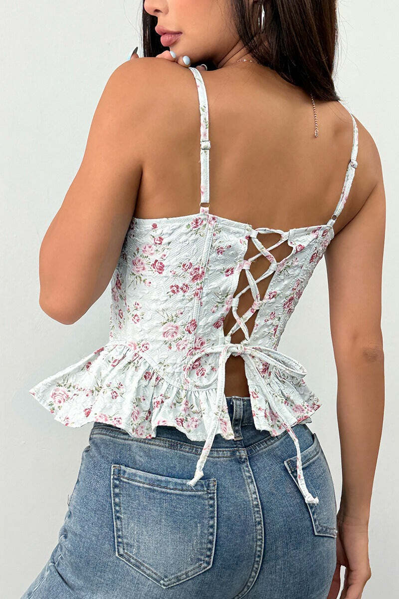 Floral Irregular Ruffle Tie Cami Top