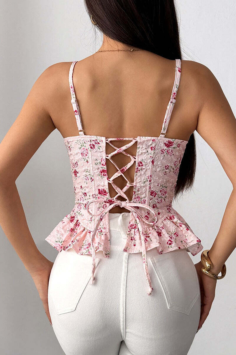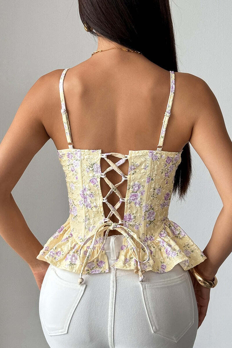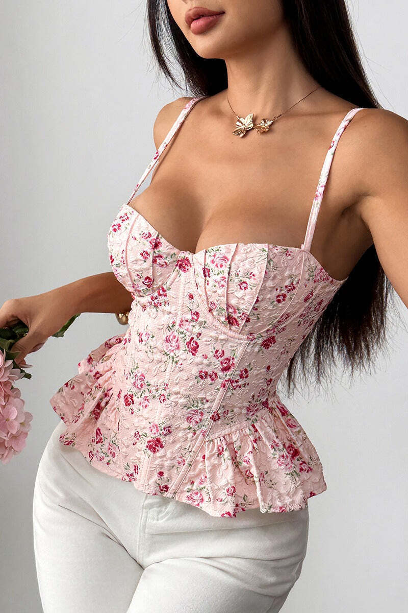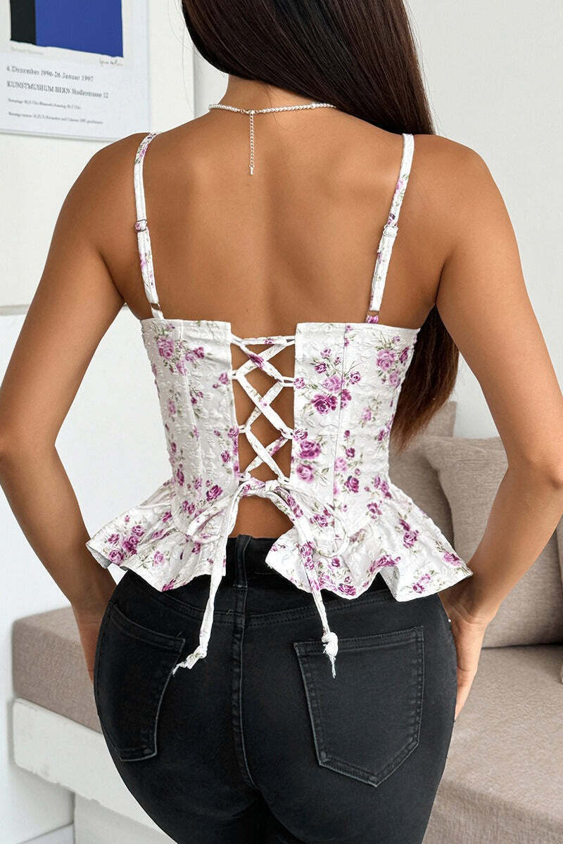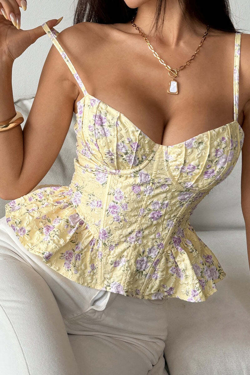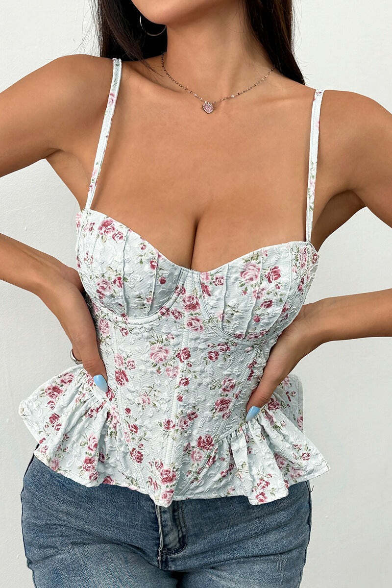Floral Irregular Ruffle Tie Cami Top