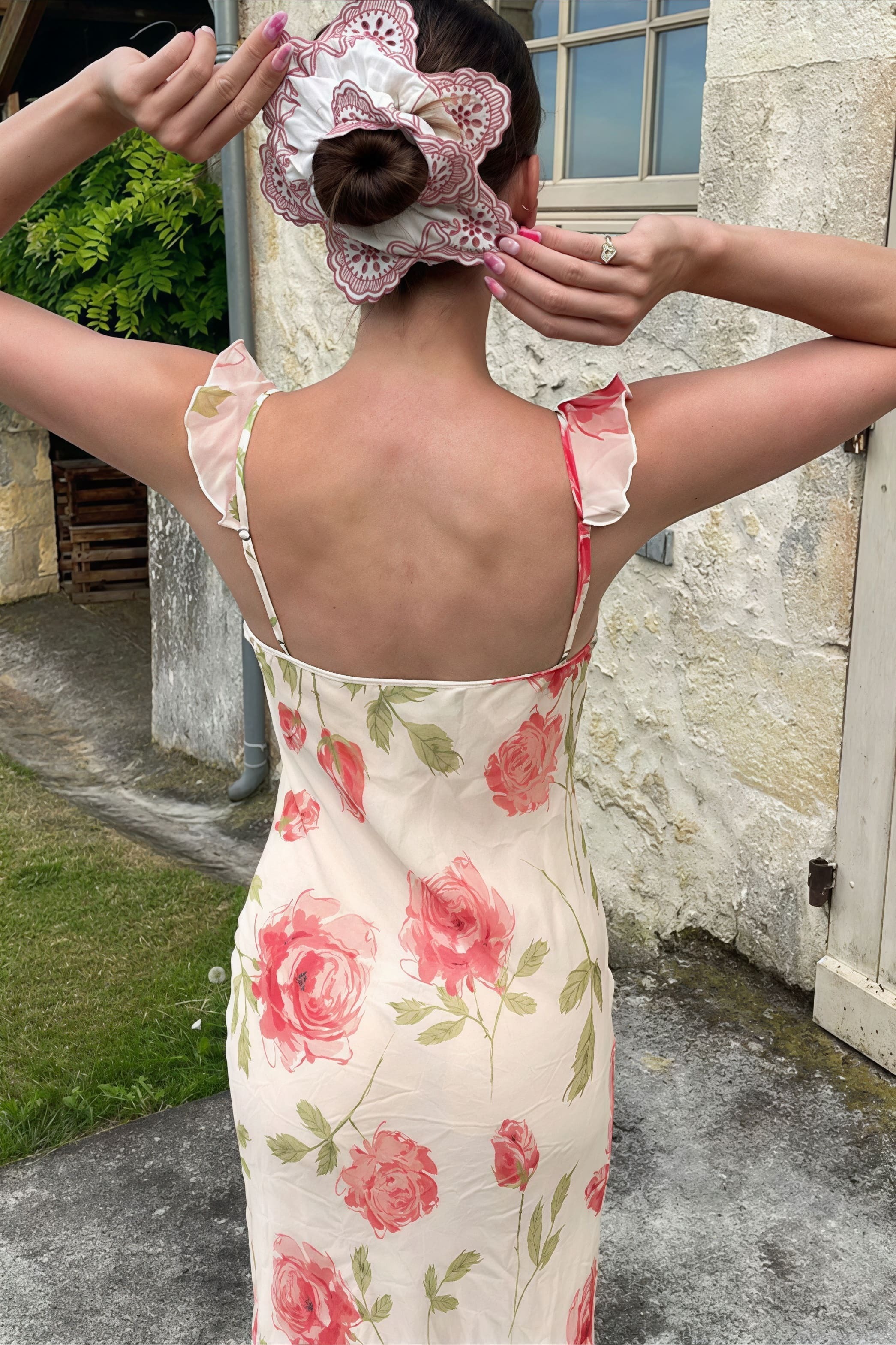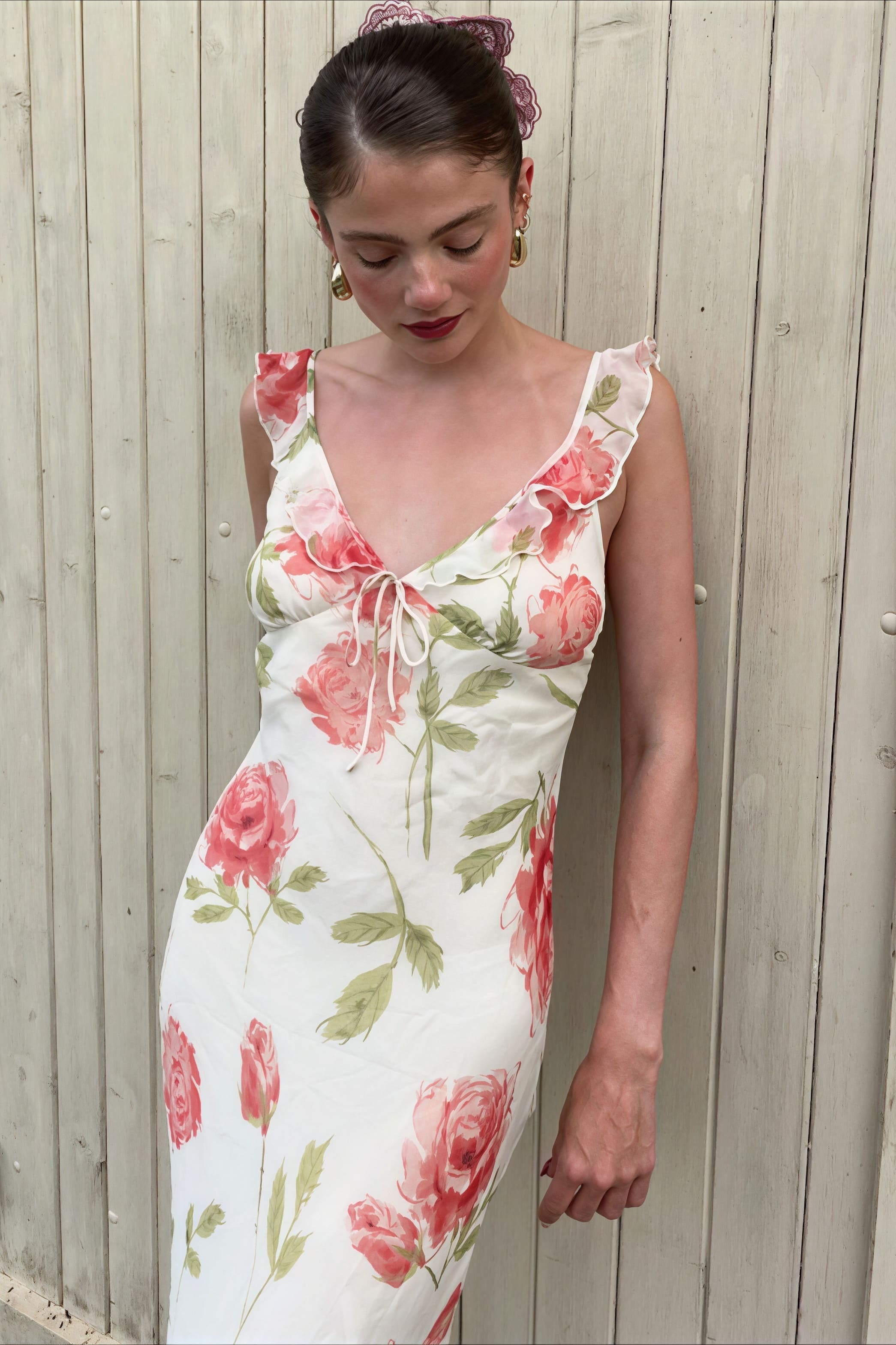 Floral Print Mesh V Neck Cami Midi Dress