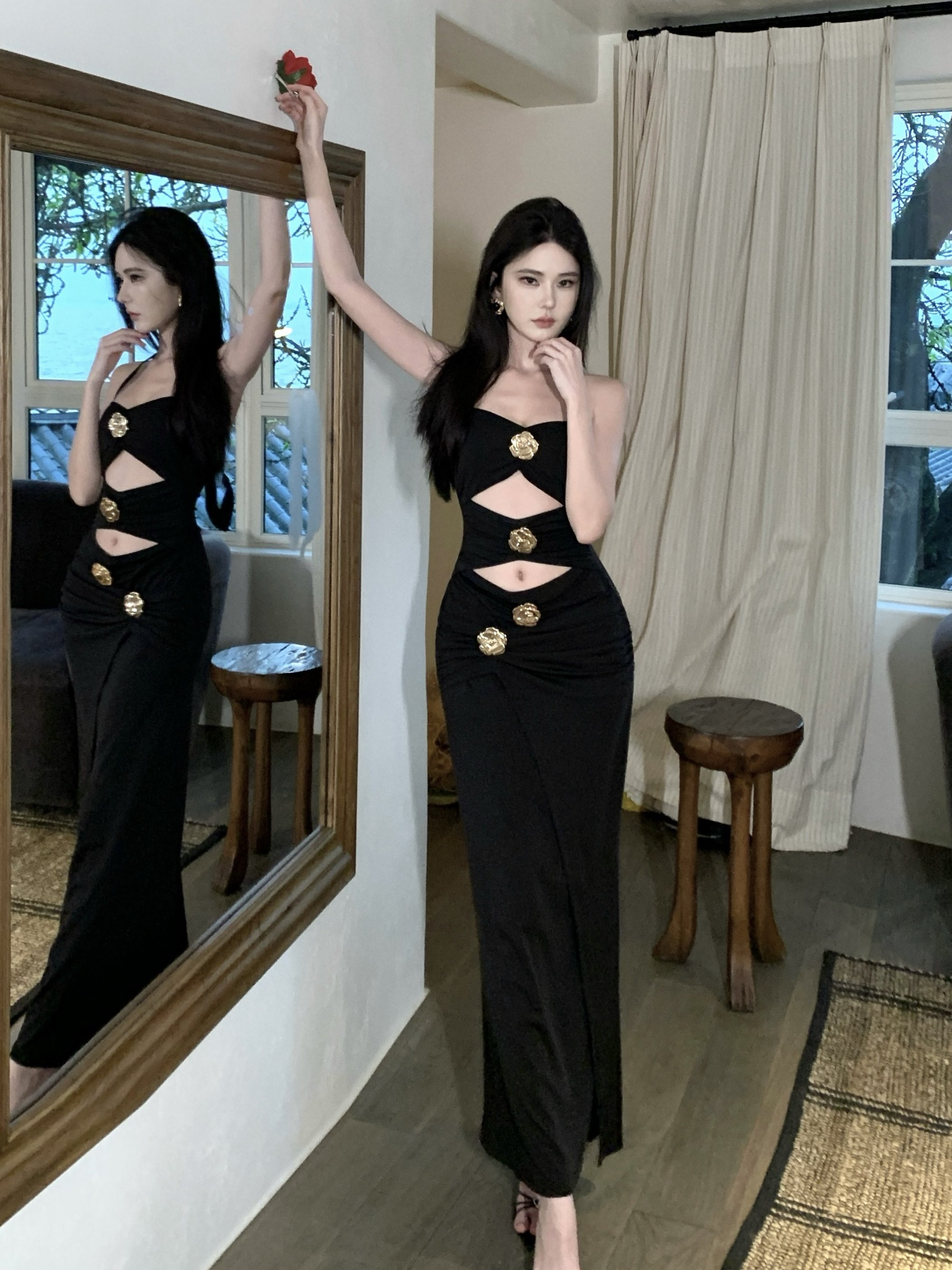 Backless Hollow Out Halter Dress Black Evening Gown Parties Nightclubs High-quality product featuring date night outfit, holiday party dress, party animal costume and more. Modern design that fits the latest trends. Premium materials ensure durability and comfort. Order now for special offers! Product designed with attention to every detail. Suitable for all occasions and personal styles.
