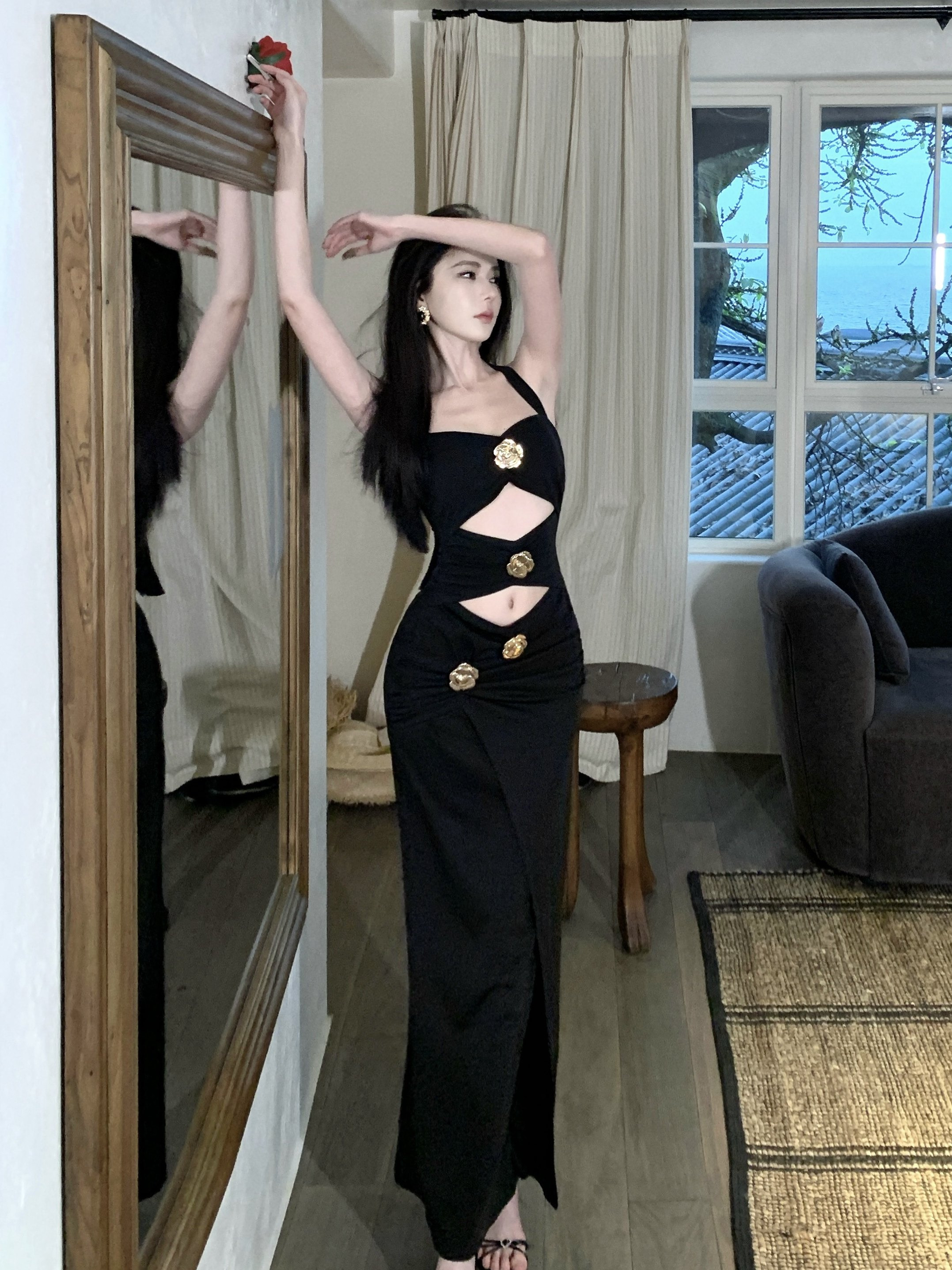 Elevate your evening wear with our stunning French-Style Backless Hollow-Out Halter Dress, designed to turn heads at light luxury parties and nightclubs. This exquisite black evening gown features a flattering fit that accentuates your silhouette, while the daring backless design and intricate hollow-out details add a touch of allure and sophistication. Crafted for those who appreciate elegance and style, this dress is the perfect choice for your next special occasion. Don’t miss out on making a statement add this must-have piece to your cart today!