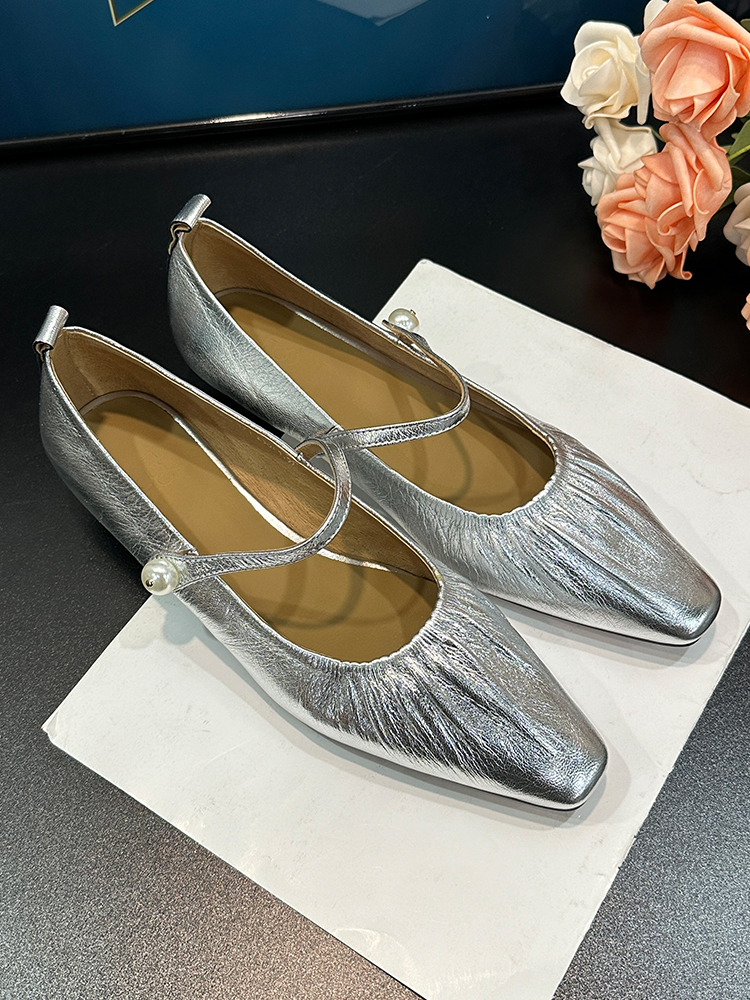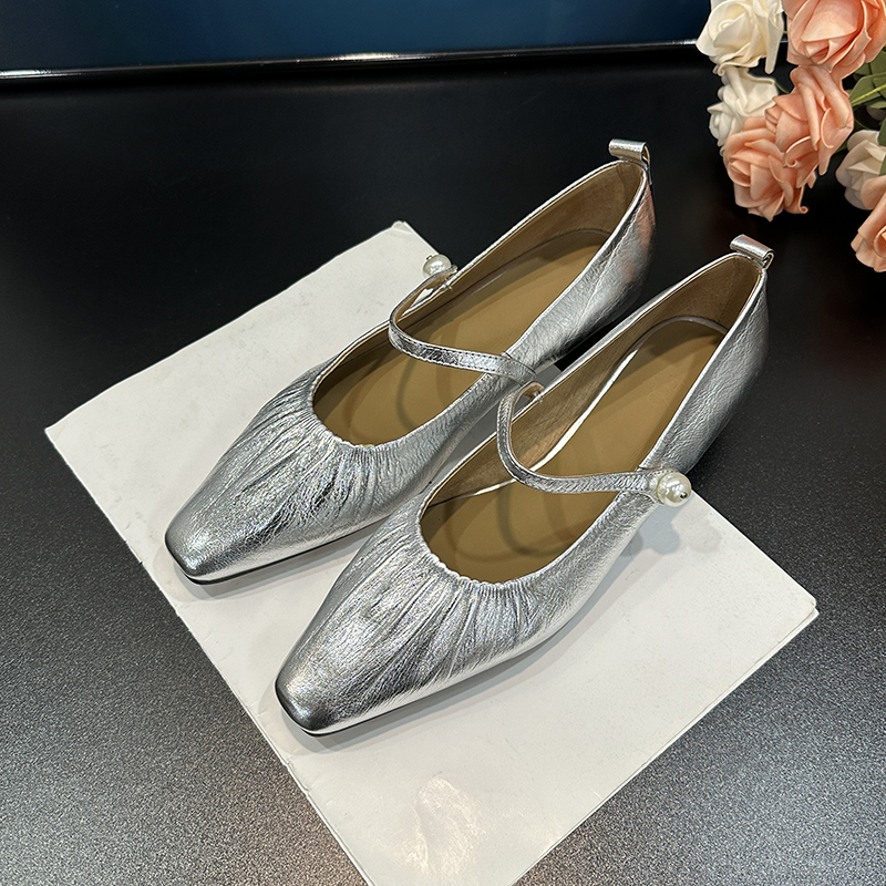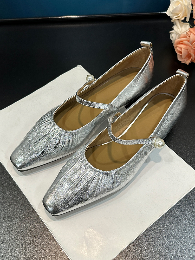Step into elegance with our French-Style Pleated Square-Toe One-Strap Low-Heeled Mary Jane Shoes, perfect for both spring and autumn. Crafted from premium silver genuine leather, these wedge flats offer a chic silhouette and a comfortable fit that keeps you stylish all day long. The unique pleated design adds a touch of sophistication, making them ideal for both casual outings and more formal occasions. Elevate your wardrobe with these versatile shoes and experience the perfect blend of comfort and fashion. Add to your cart today!