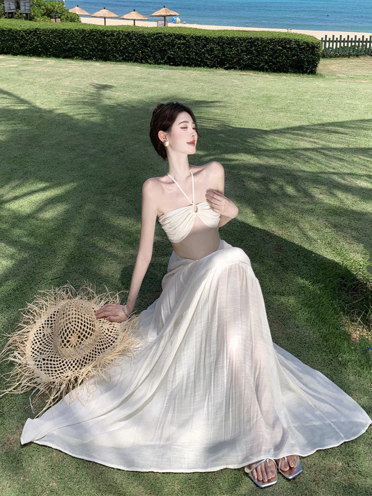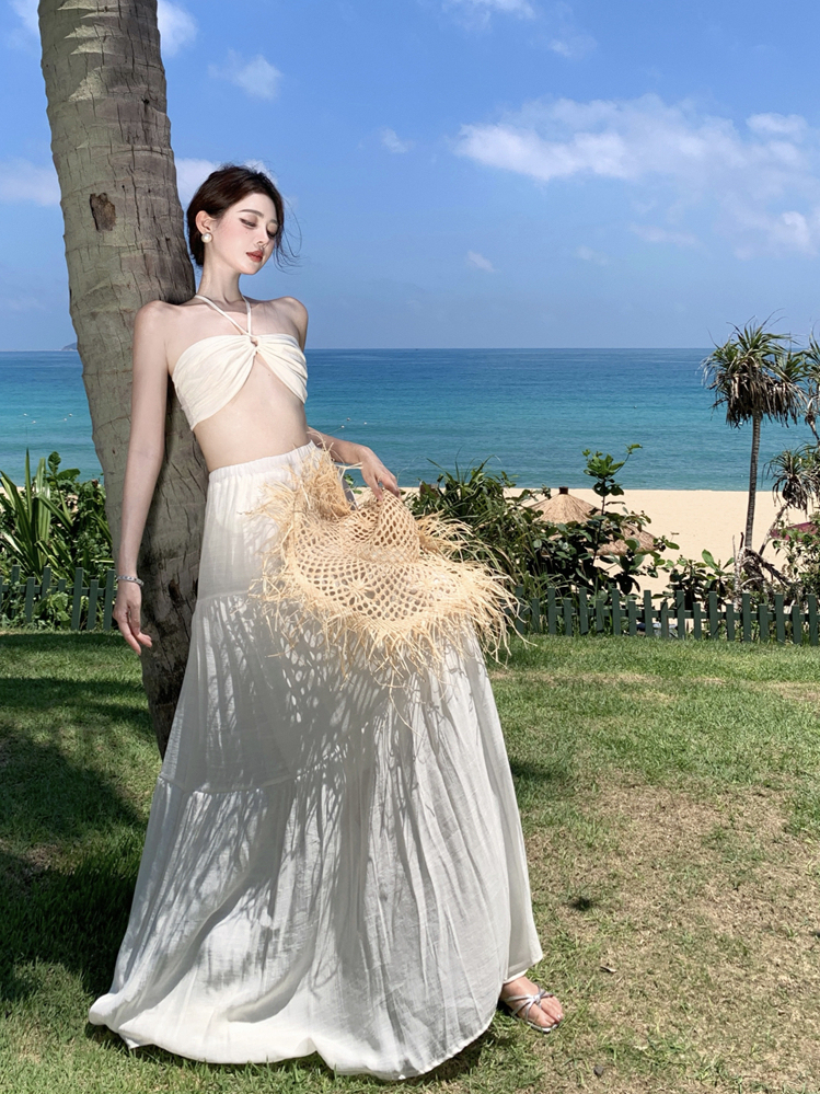 Elevate your summer wardrobe with our French-style Strapless Halter Top & High-Waisted Skirt Set, designed for the ultimate sexy seaside look. This chic outfit features a flattering fit that accentuates your curves while providing comfort and style, perfect for beach days or summer vacations. The lightweight fabric and trendy design make it a must-have for your collection add to your cart now and step out in confidence this season!