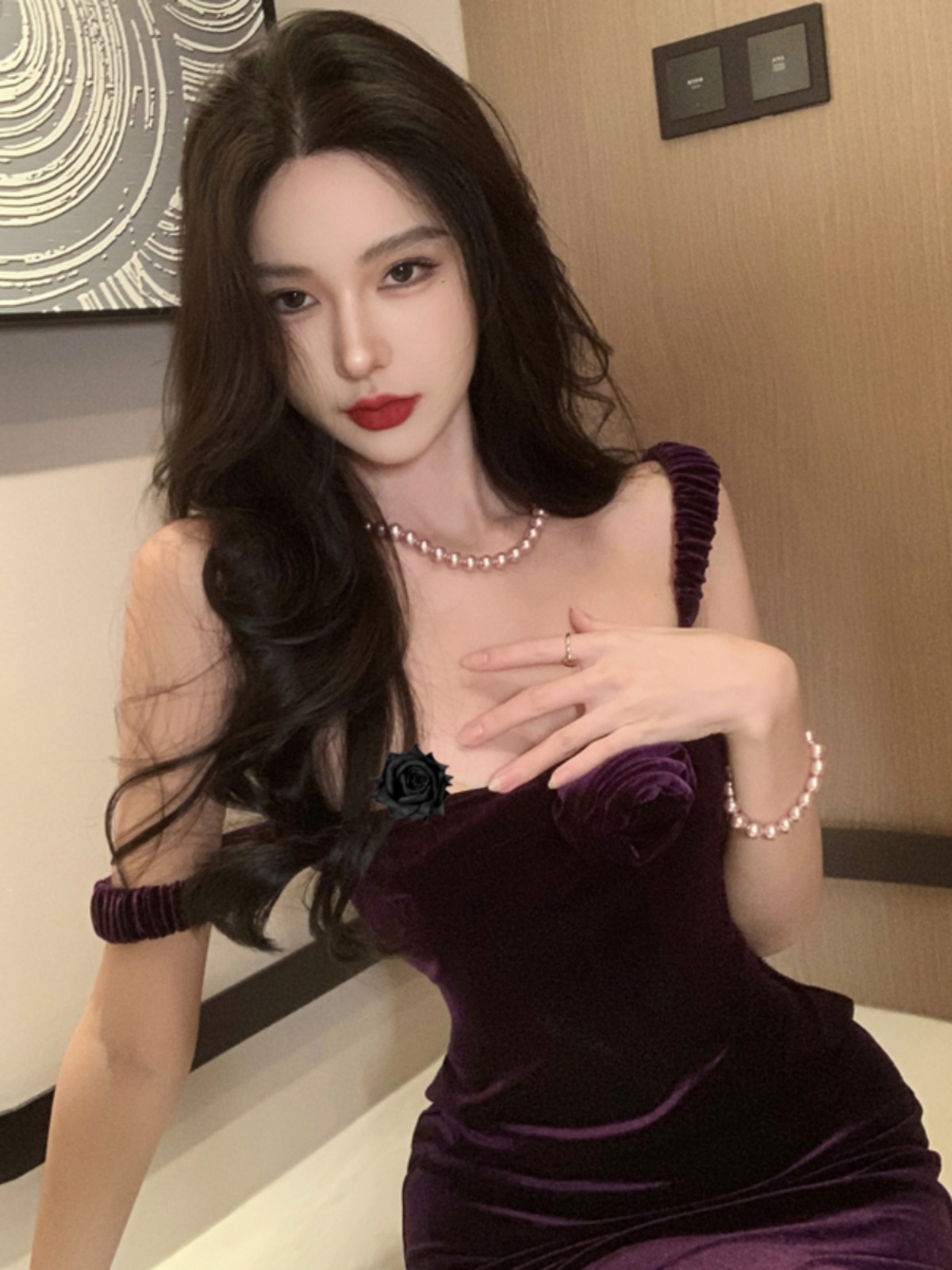 Elevate your evening wardrobe with our French Vintage High-End Purple Velvet Floral Spaghetti Strap Bodycon Evening Gown. This stunning gown hugs your curves in all the right places, featuring exquisite floral detailing on luxurious velvet that exudes elegance and sophistication. Perfect for special occasions, its adjustable spaghetti straps ensure a comfortable and flattering fit, making you the center of attention wherever you go. Don’t miss out on this timeless piece add it to your cart today and make a statement at your next event!