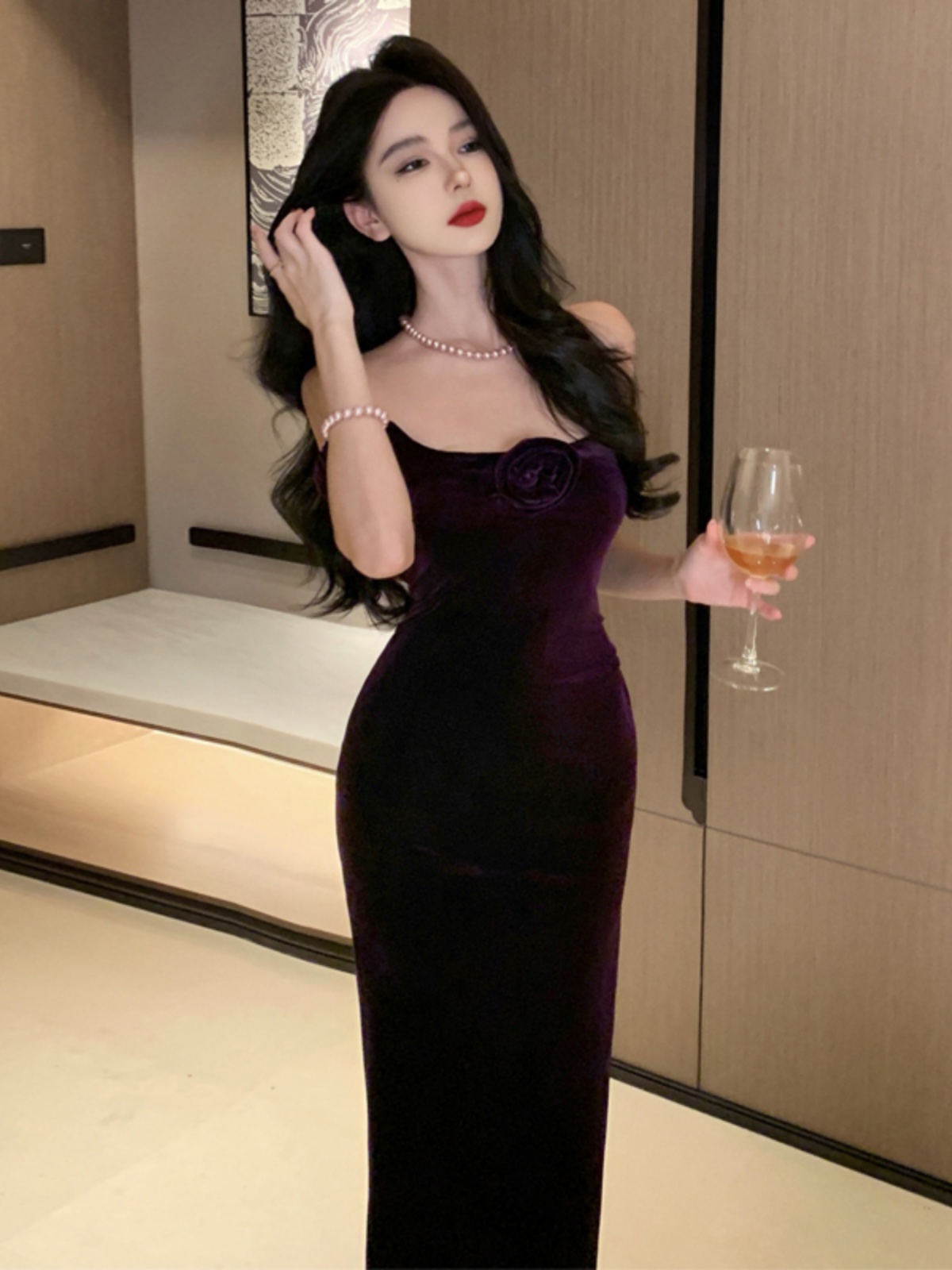 Vintage Purple Velvet Floral Spaghetti Strap Bodycon Evening Gown Women High-quality product featuring pretty outfits, thanksgiving dress, coquette outfit and more. Modern design that fits the latest trends. Premium materials ensure durability and comfort. Order now for special offers! Product designed with attention to every detail. Suitable for all occasions and personal styles.