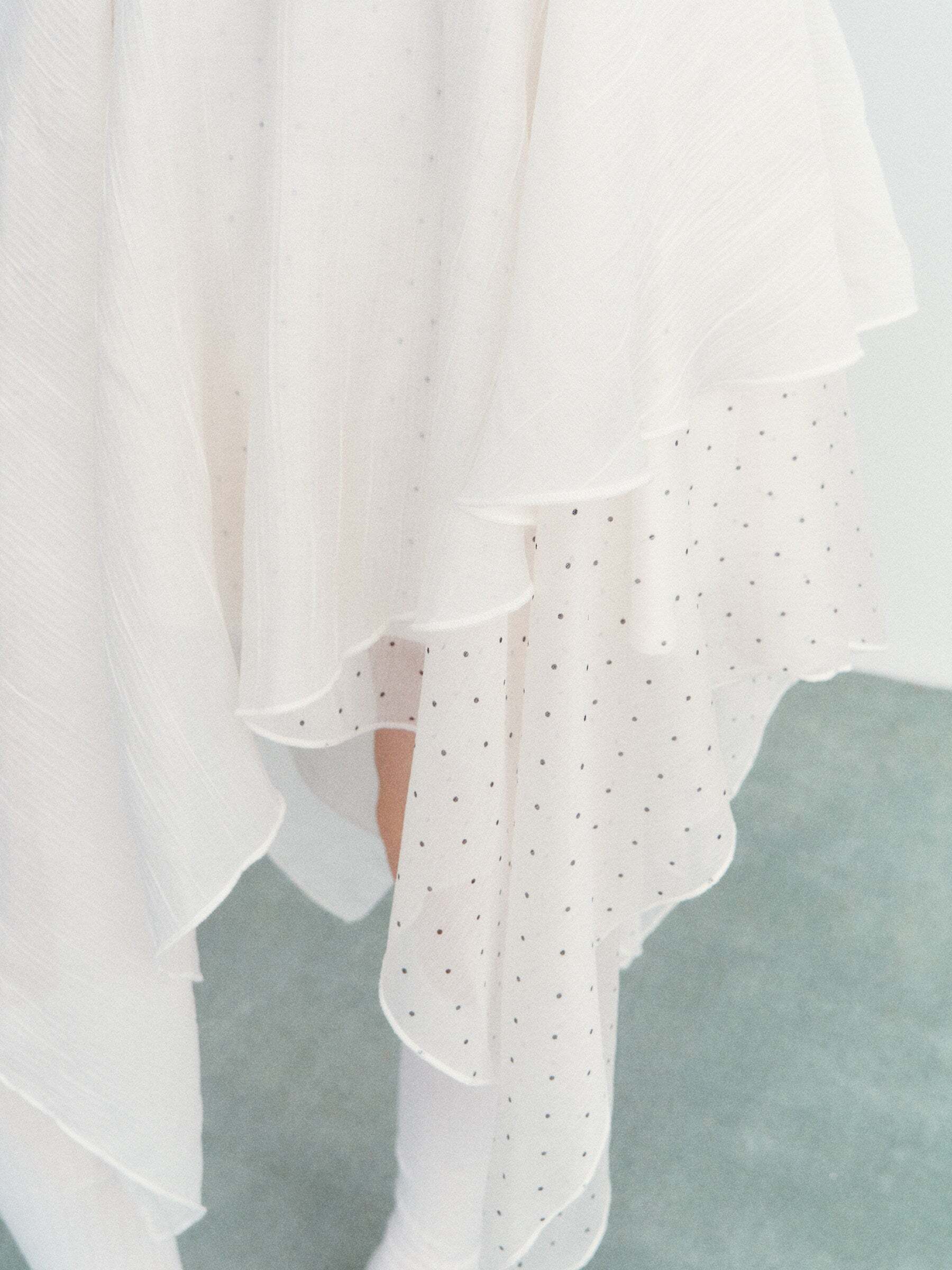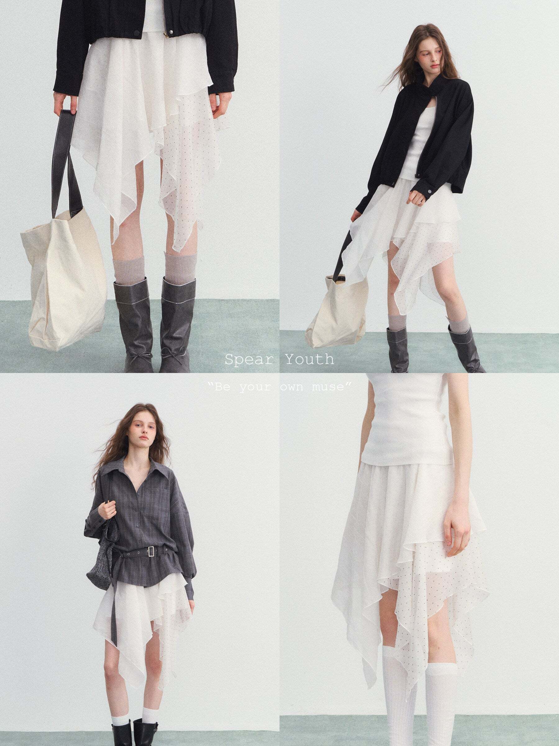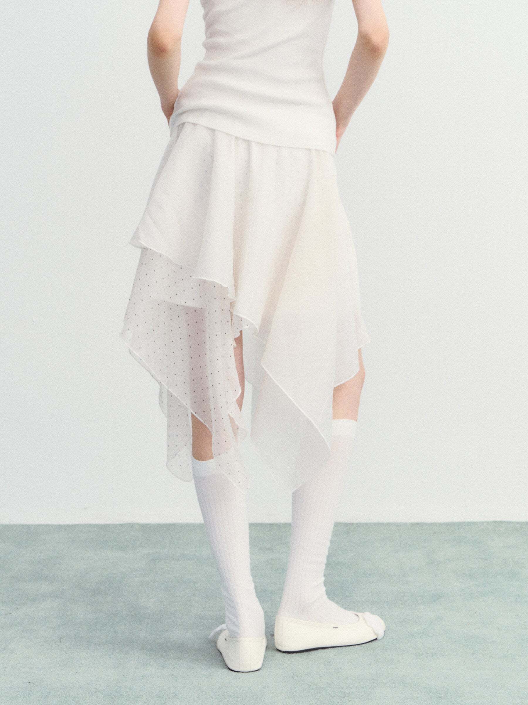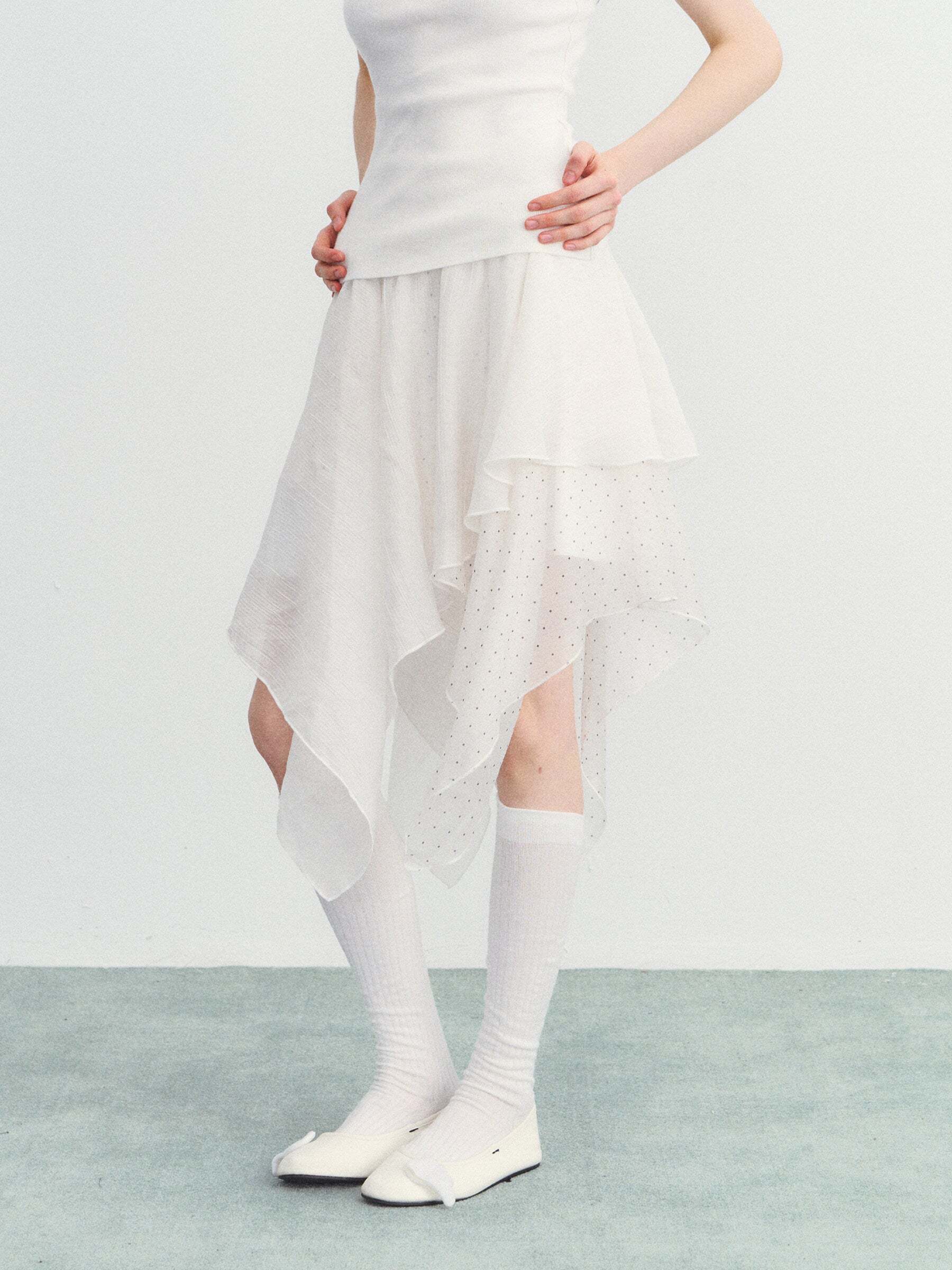 An elegant skirt with an eye-catching asymmetrical frill design.