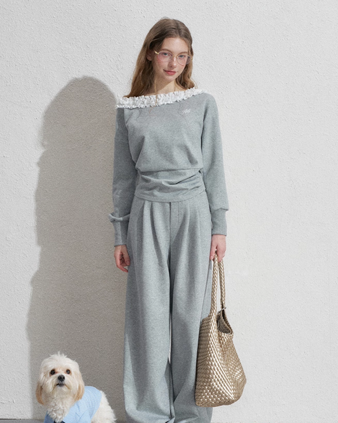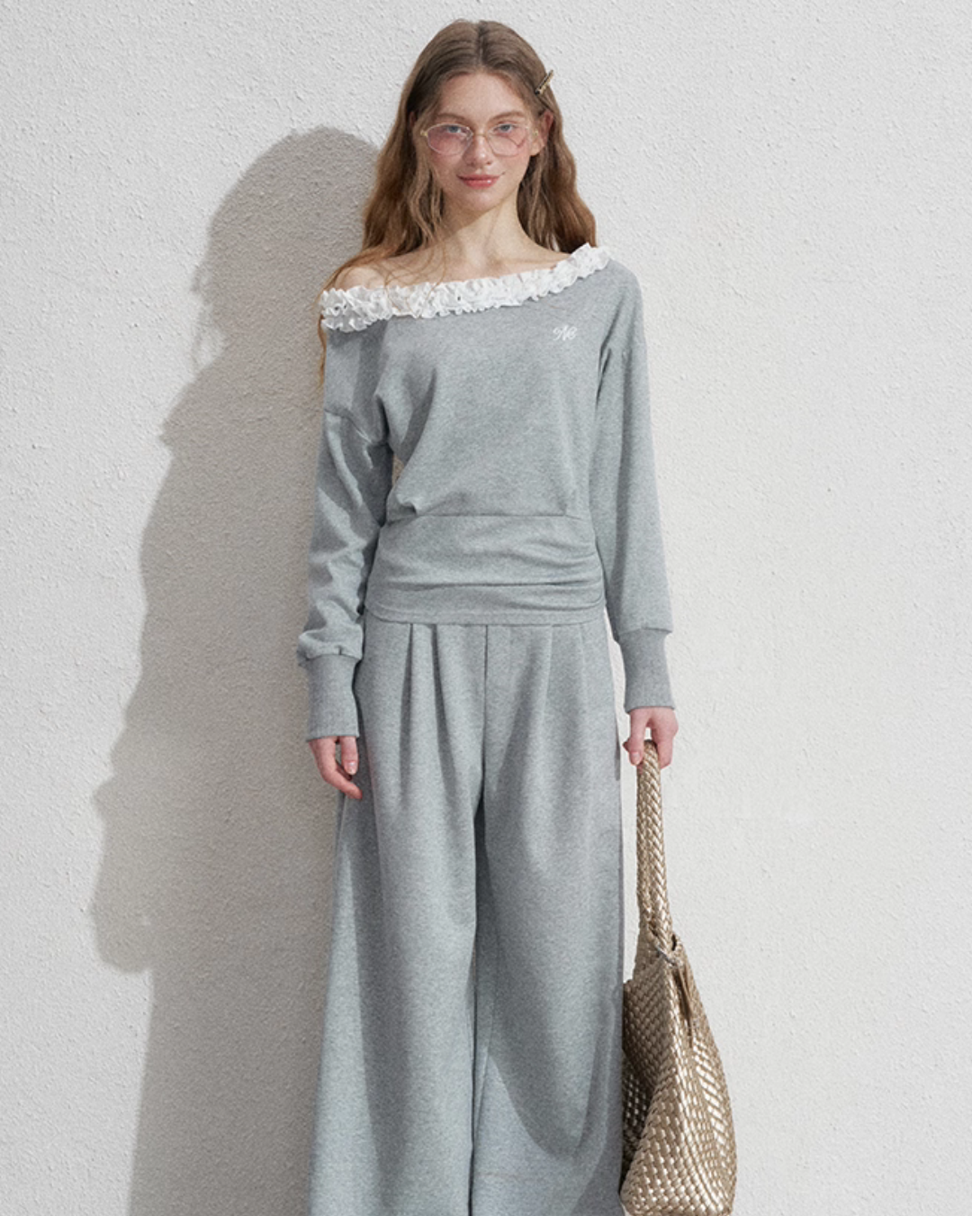 Just by wearing it, your mood will lift, a sweat set that adds a touch of femininity.