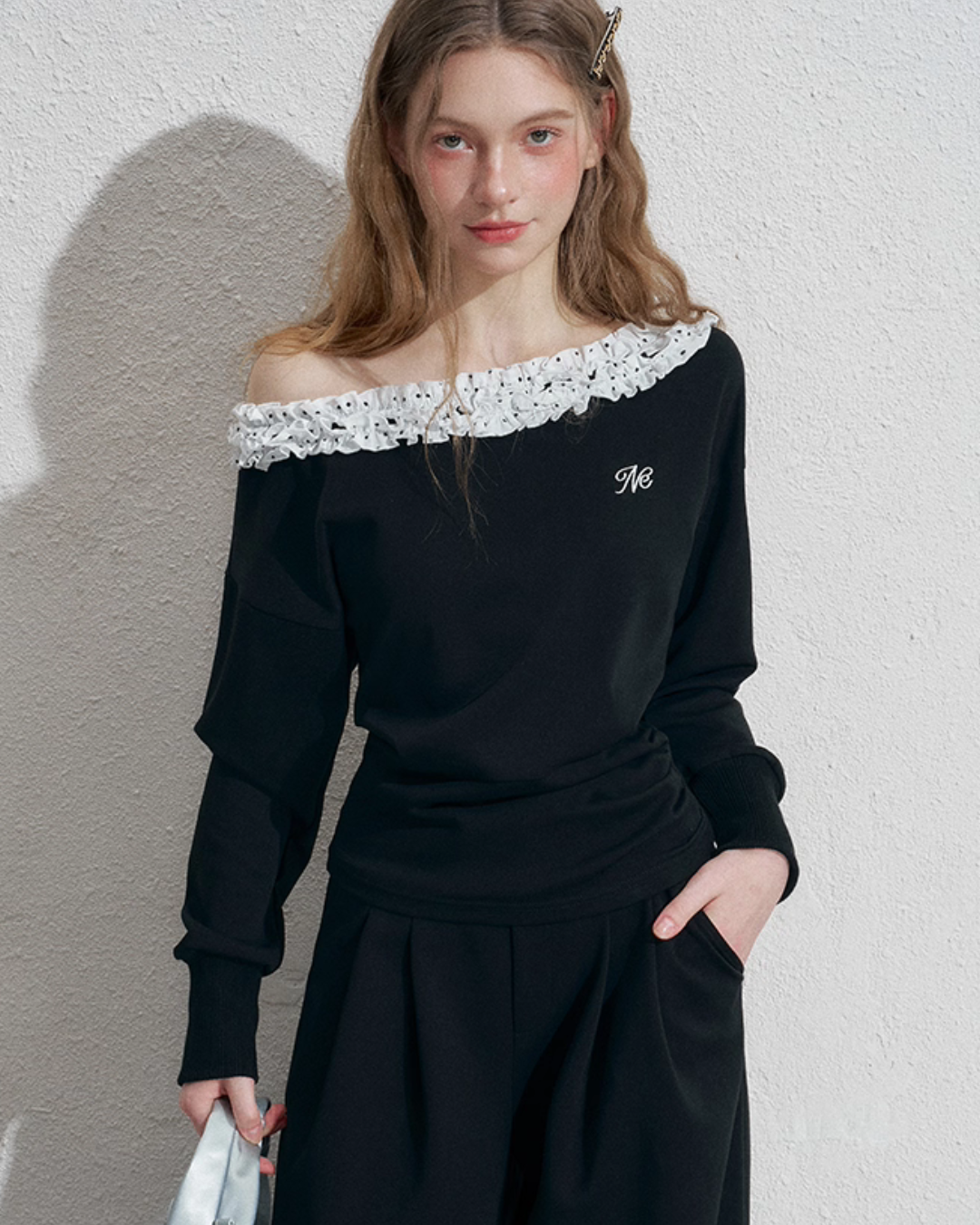 A piece with frill details at the neckline that adds just the right amount of sweetness.