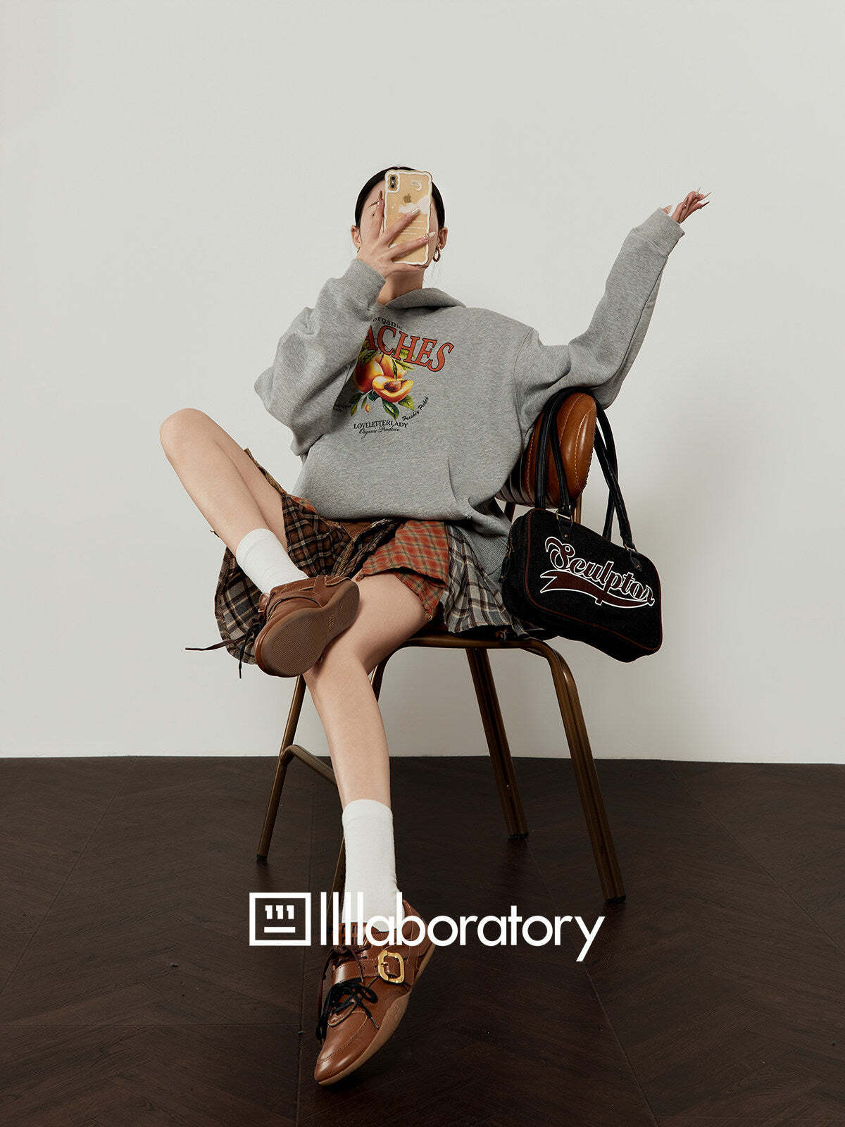 A sweatshirt parka with a fruit motif print that attracts attention.