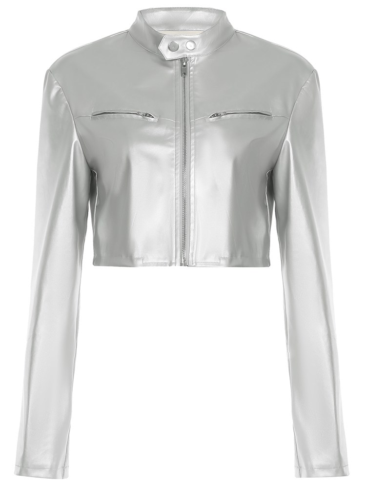 Be the first to review “Functional Windbreaker Zipper Loose Silver PU Jacket Women Cool Casual Leather Look, Street Outerwear” Cancel reply