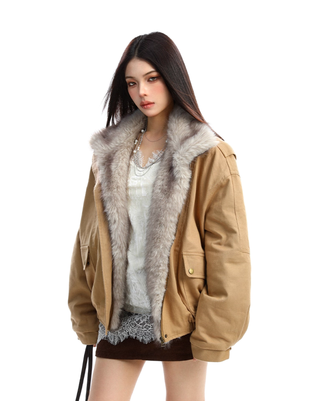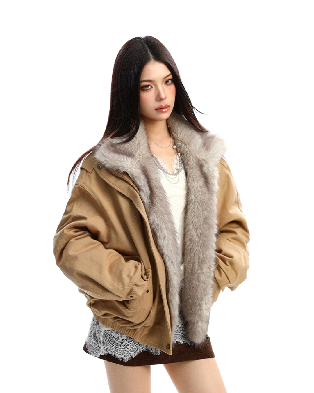 The charm of a fur jacket lies in its elegant fur texture and compact silhouette.