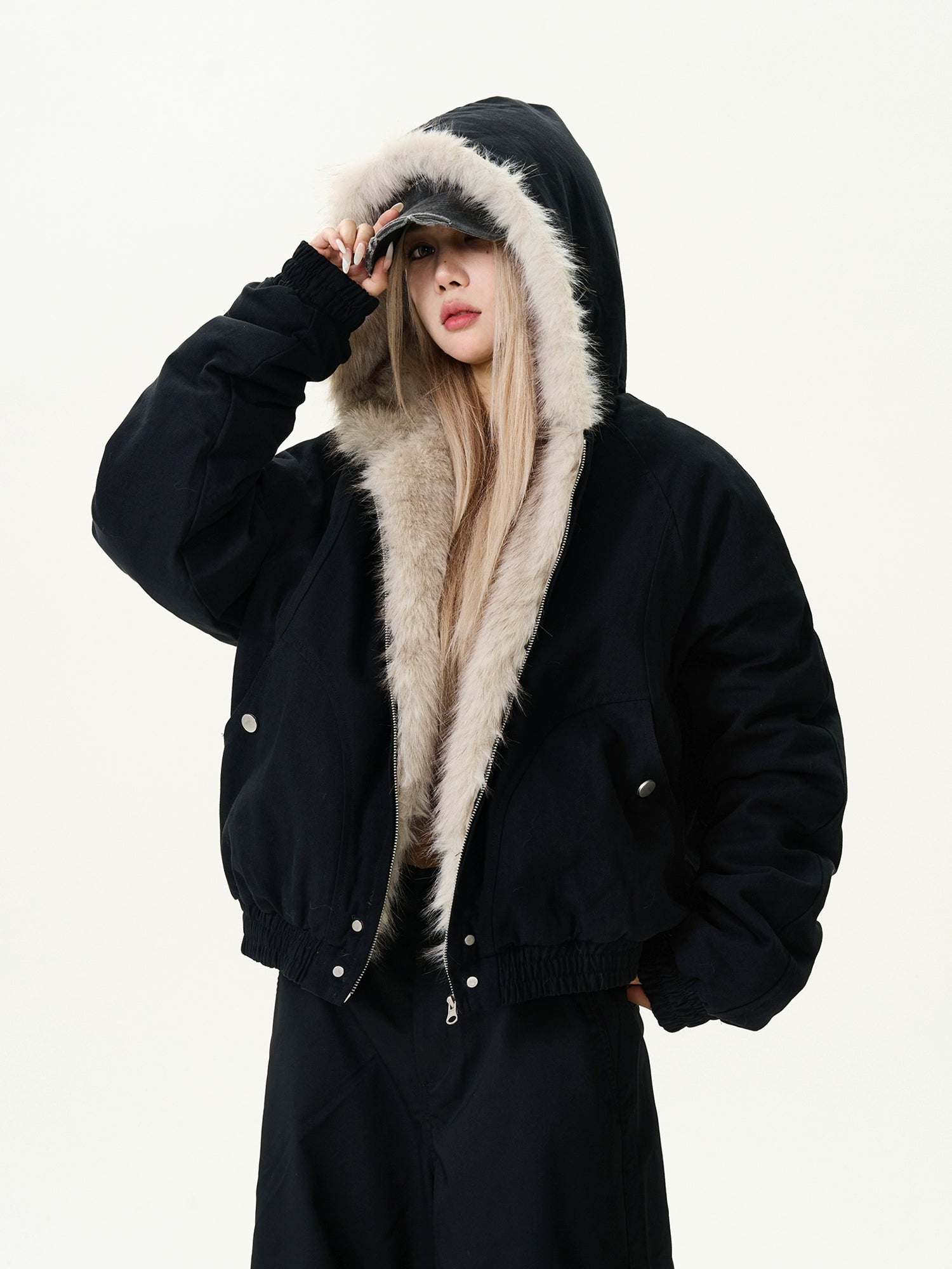 A voluminous fur jacket that will be the main character of your autumn and winter coordination.