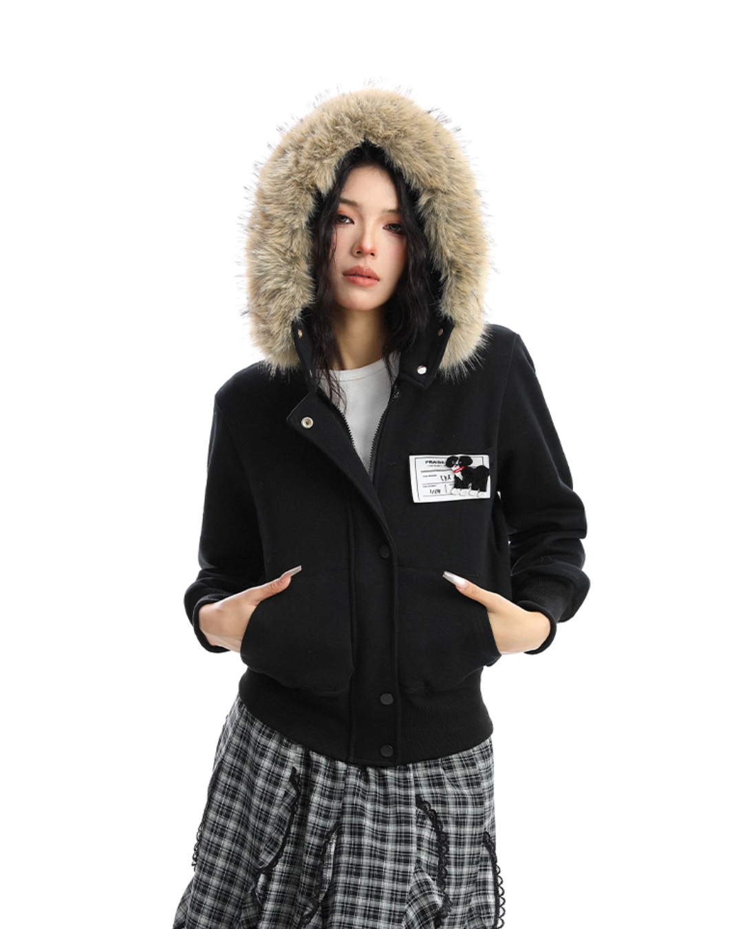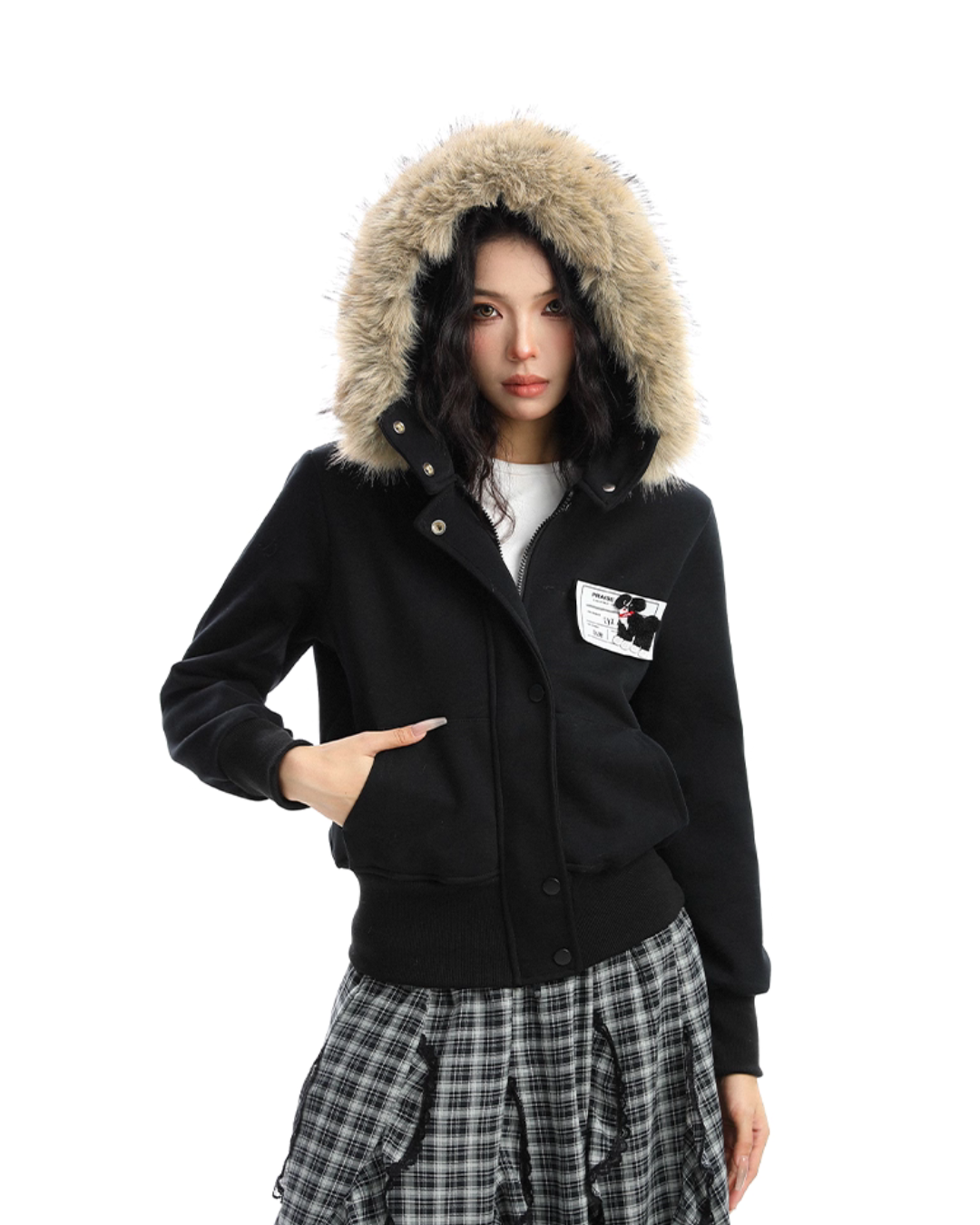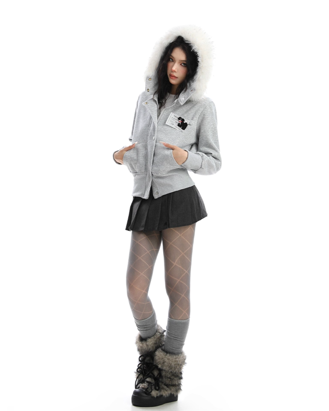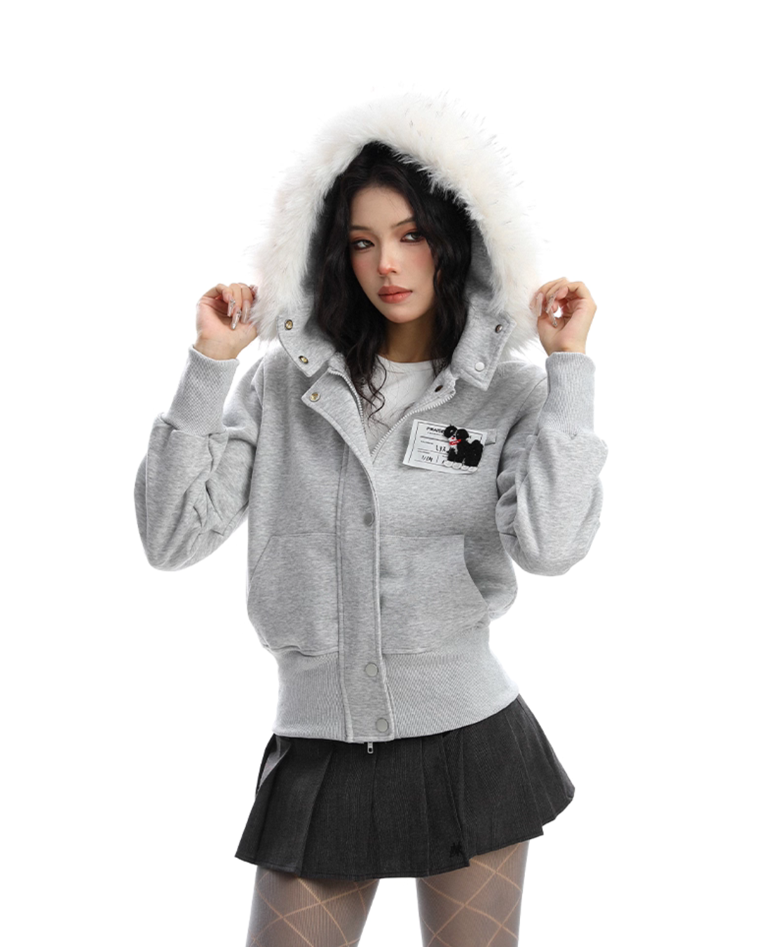 A soft fur that wraps around the neck makes this piece glamorous around the face.