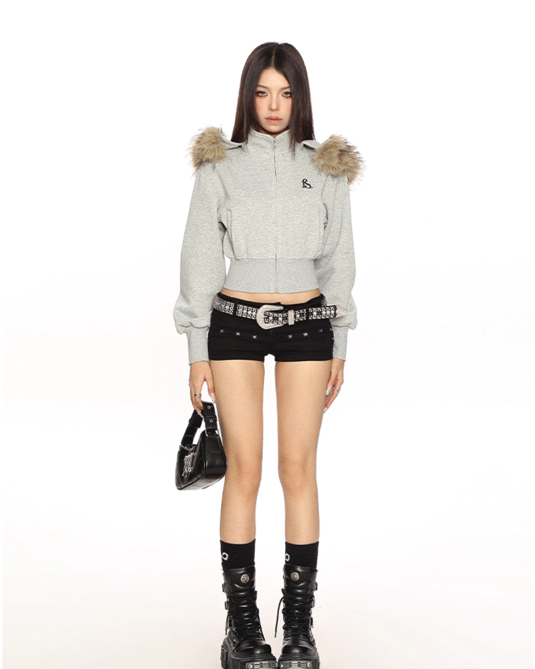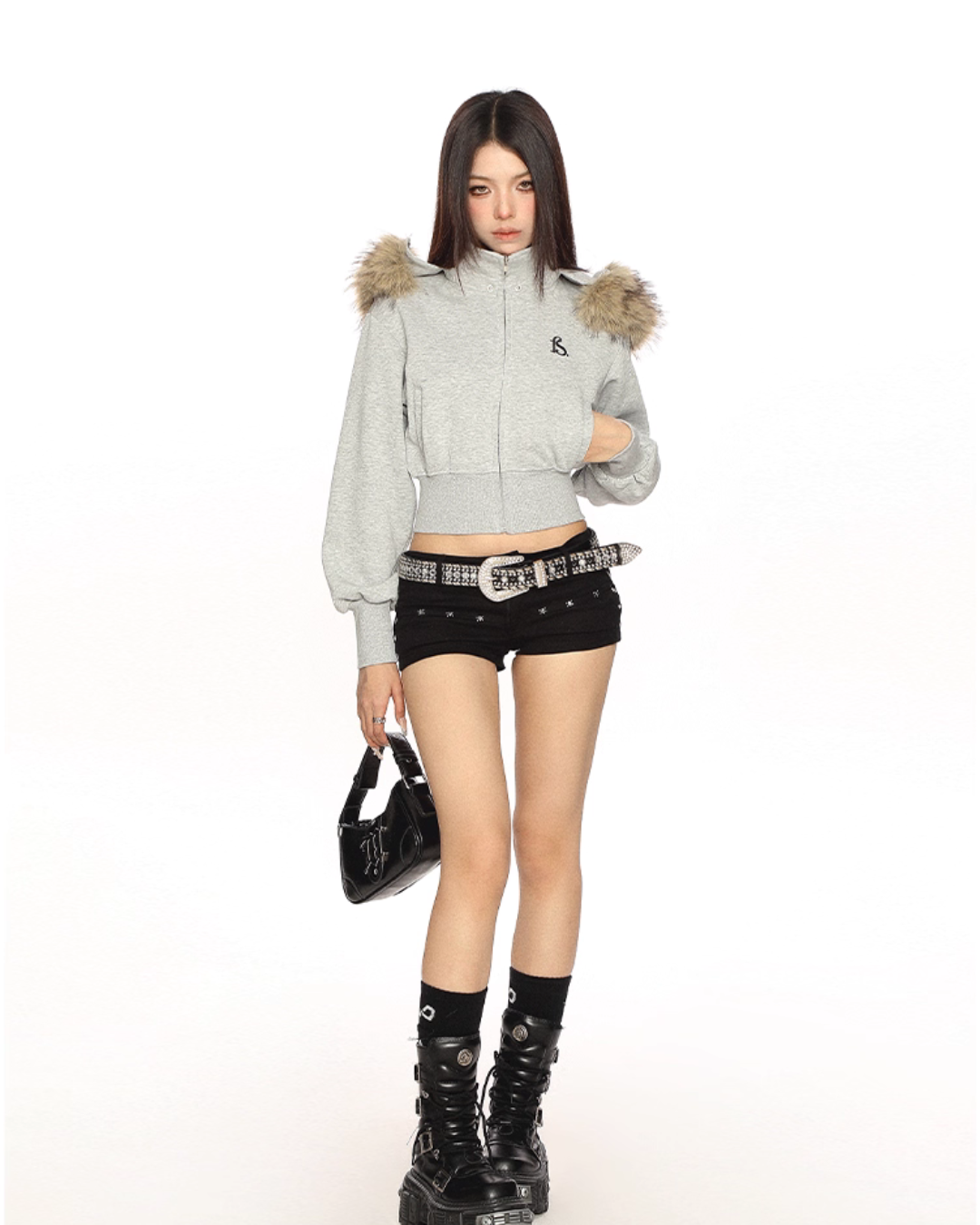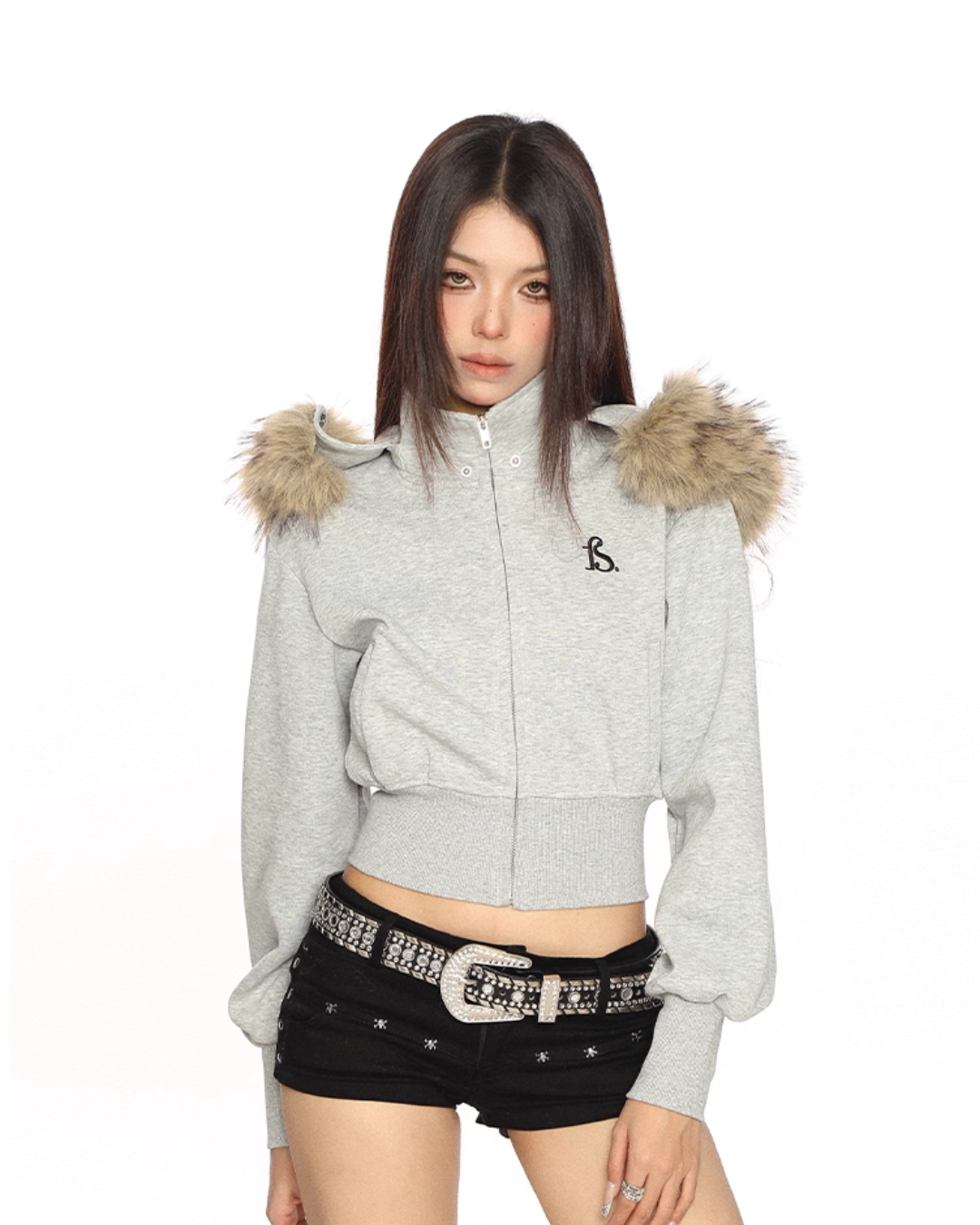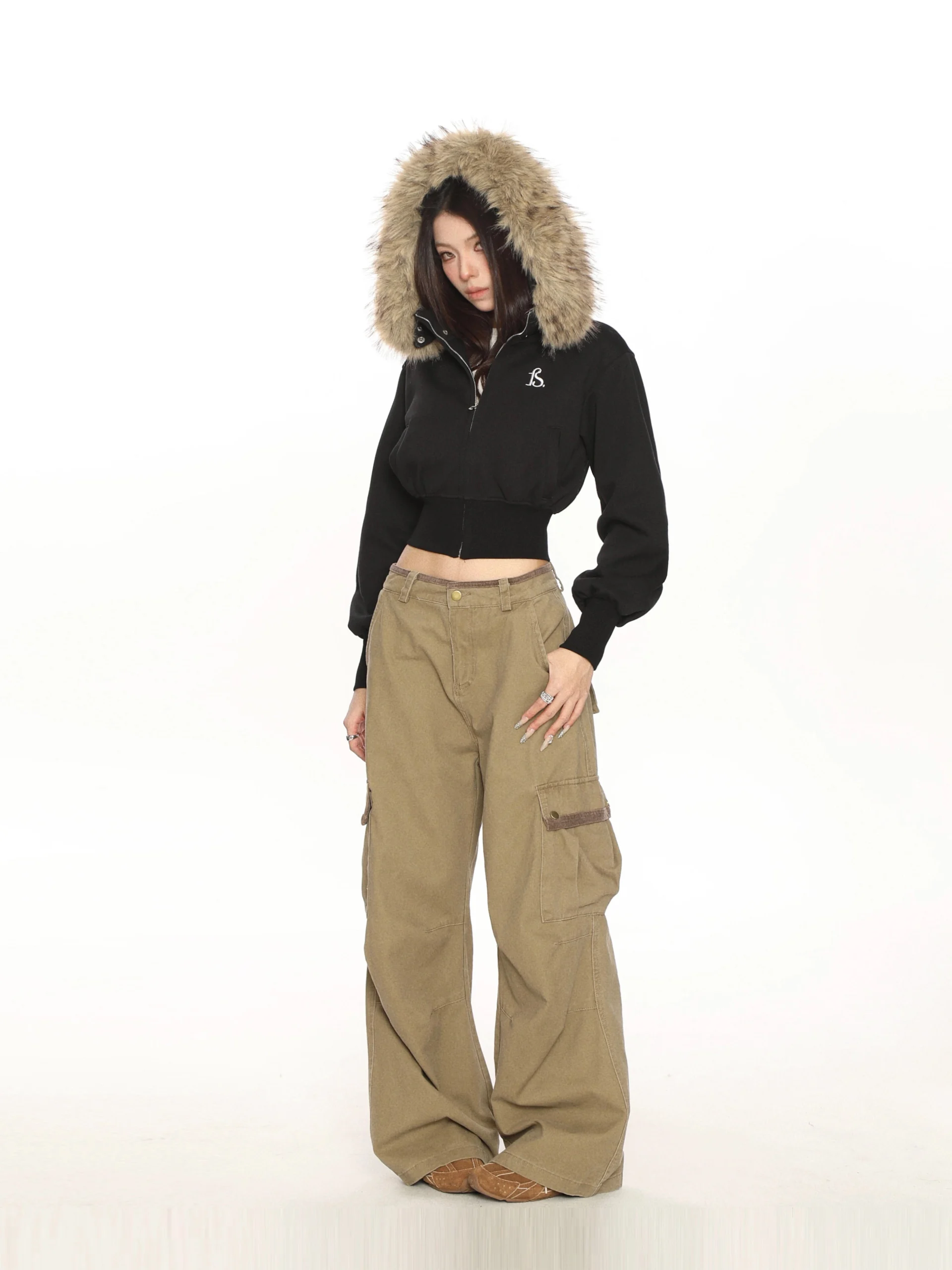 A cropped fur hooded parka that is perfect for the Y2K look.