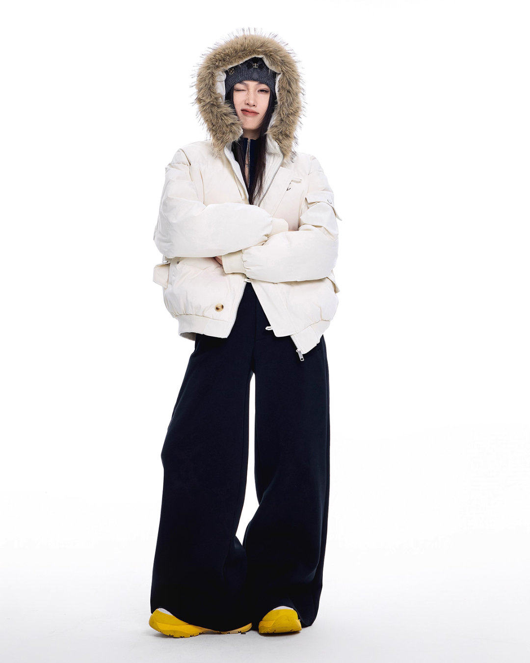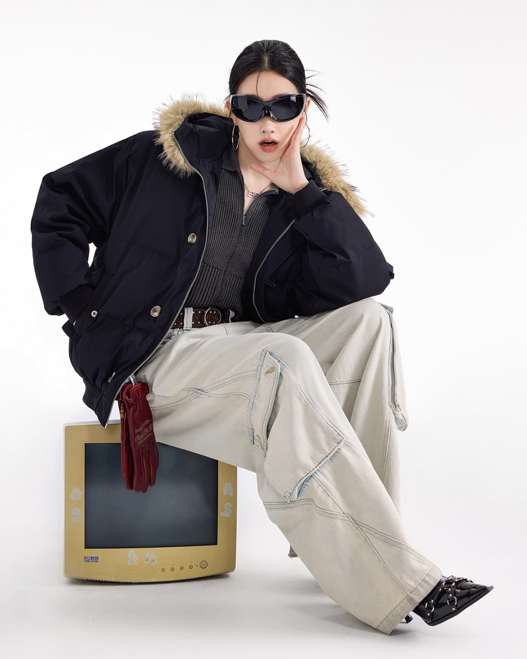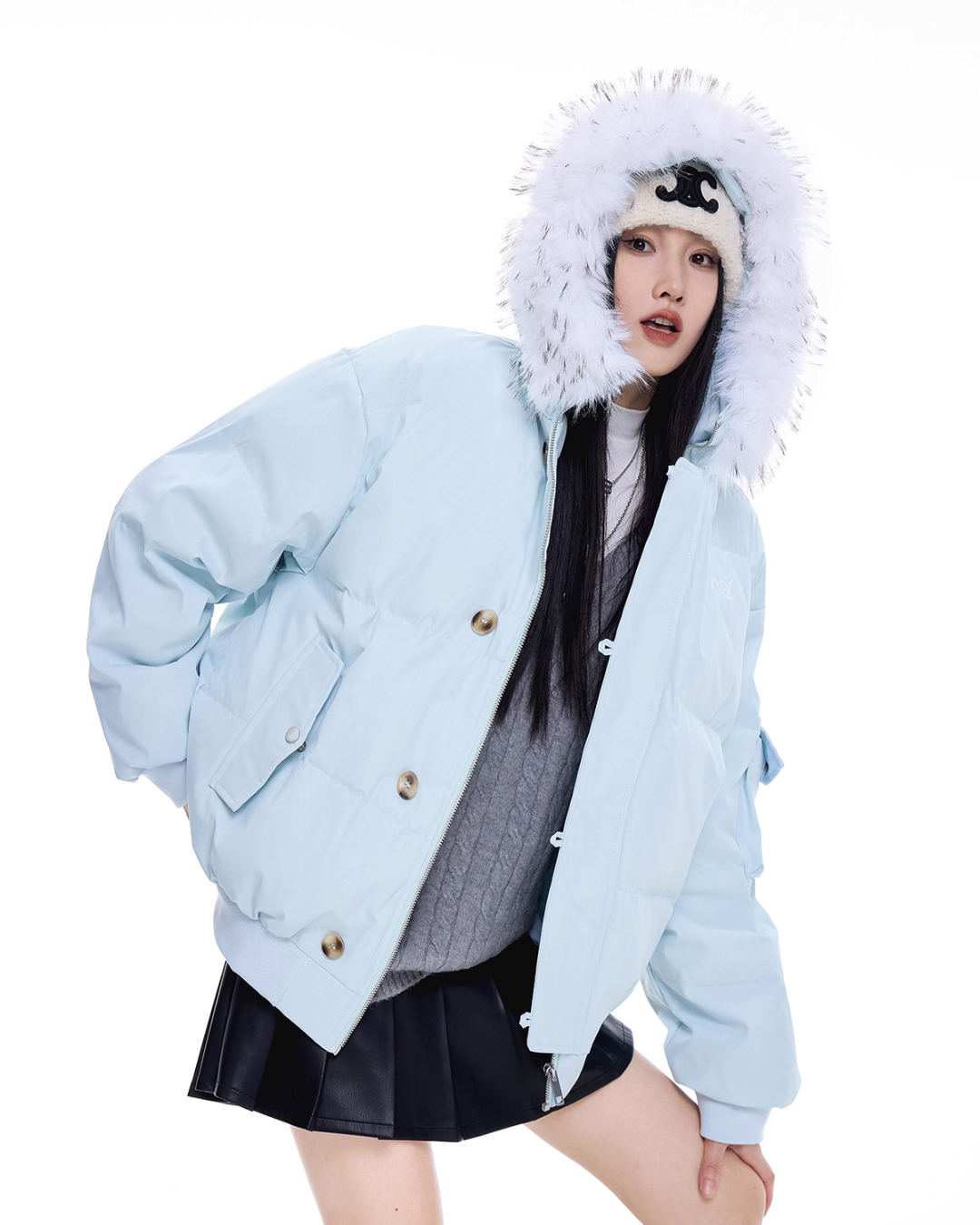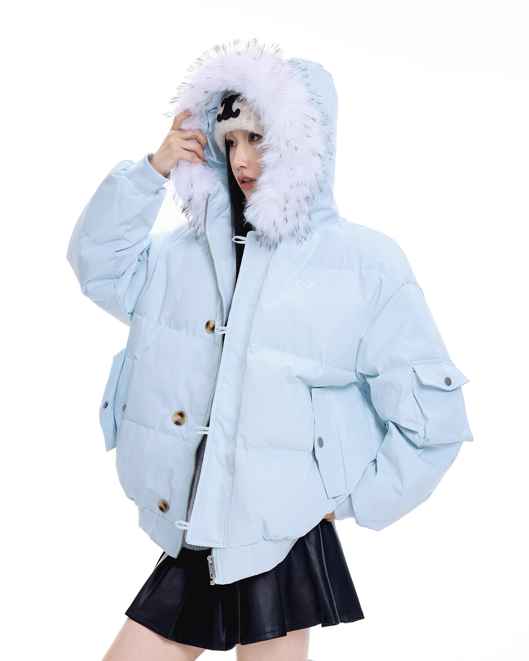 The down jacket with a three-dimensional voluminous silhouette catches the eye.