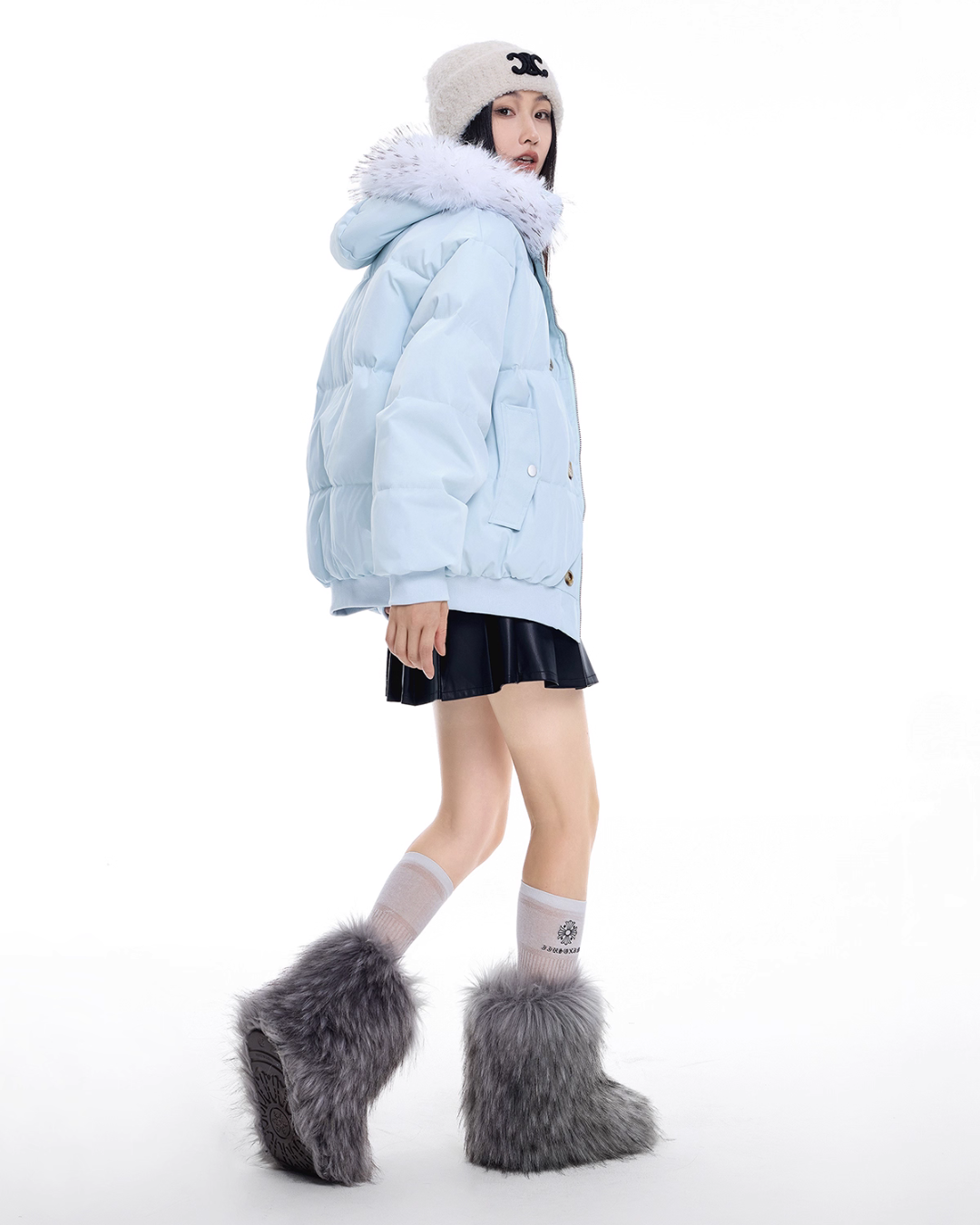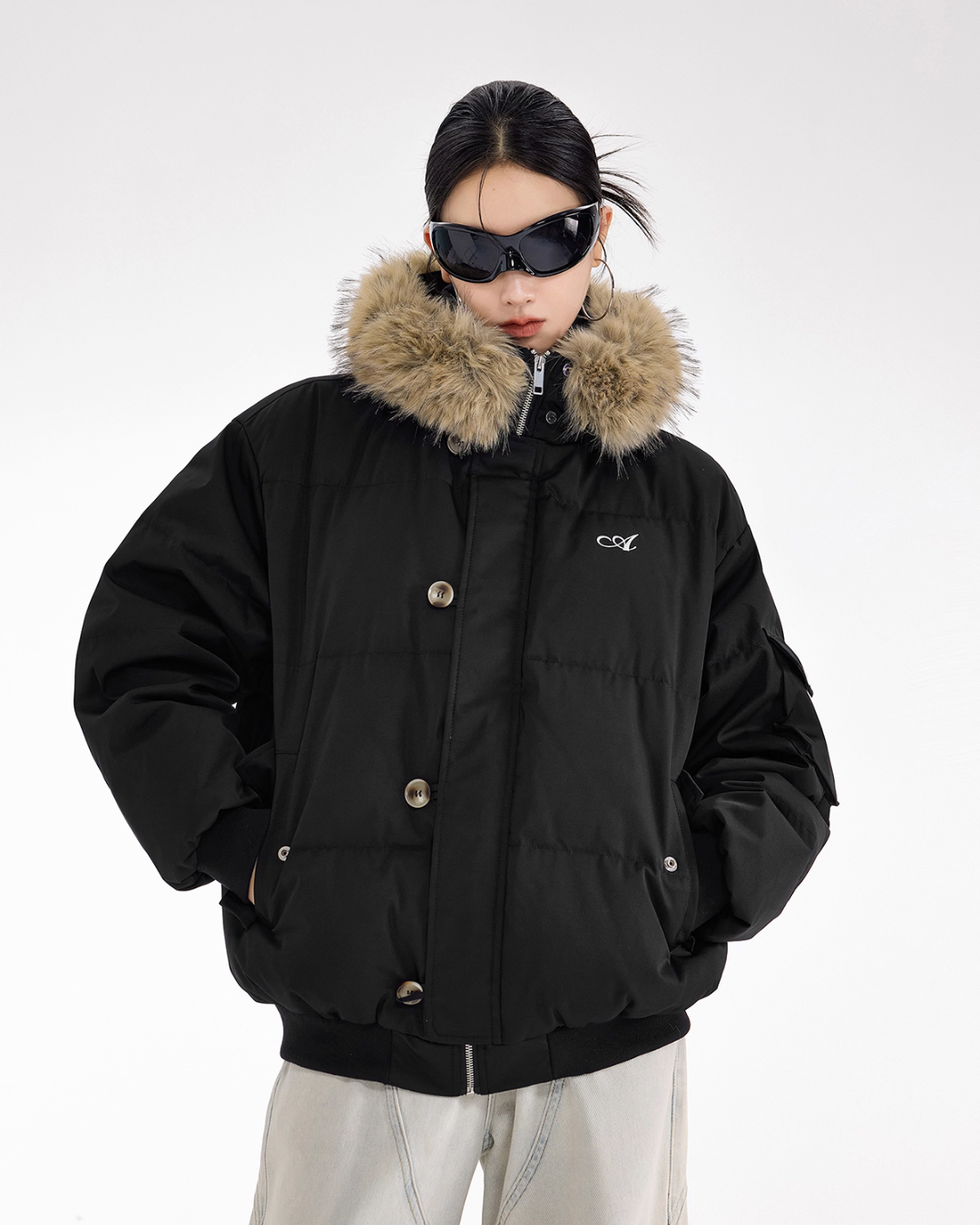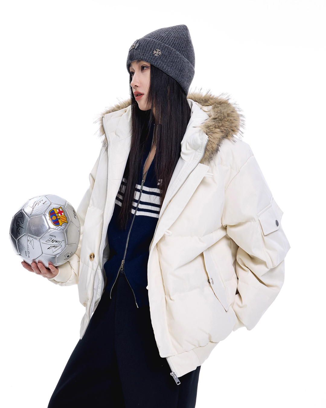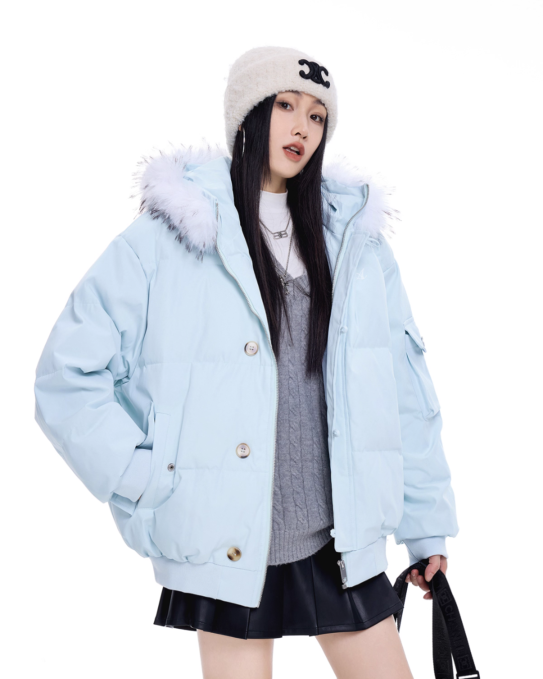 The down jacket with a three-dimensional voluminous silhouette catches the eye.