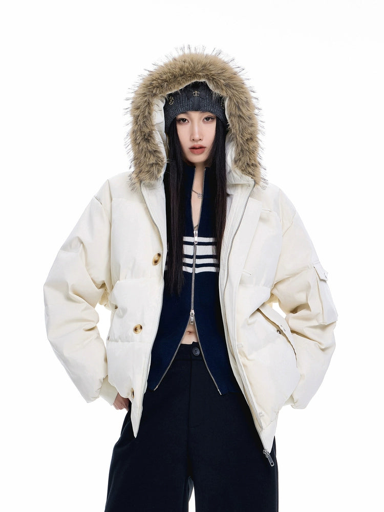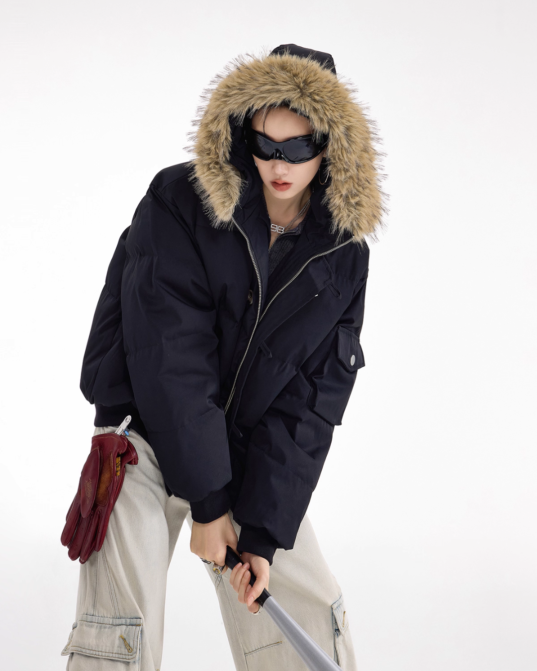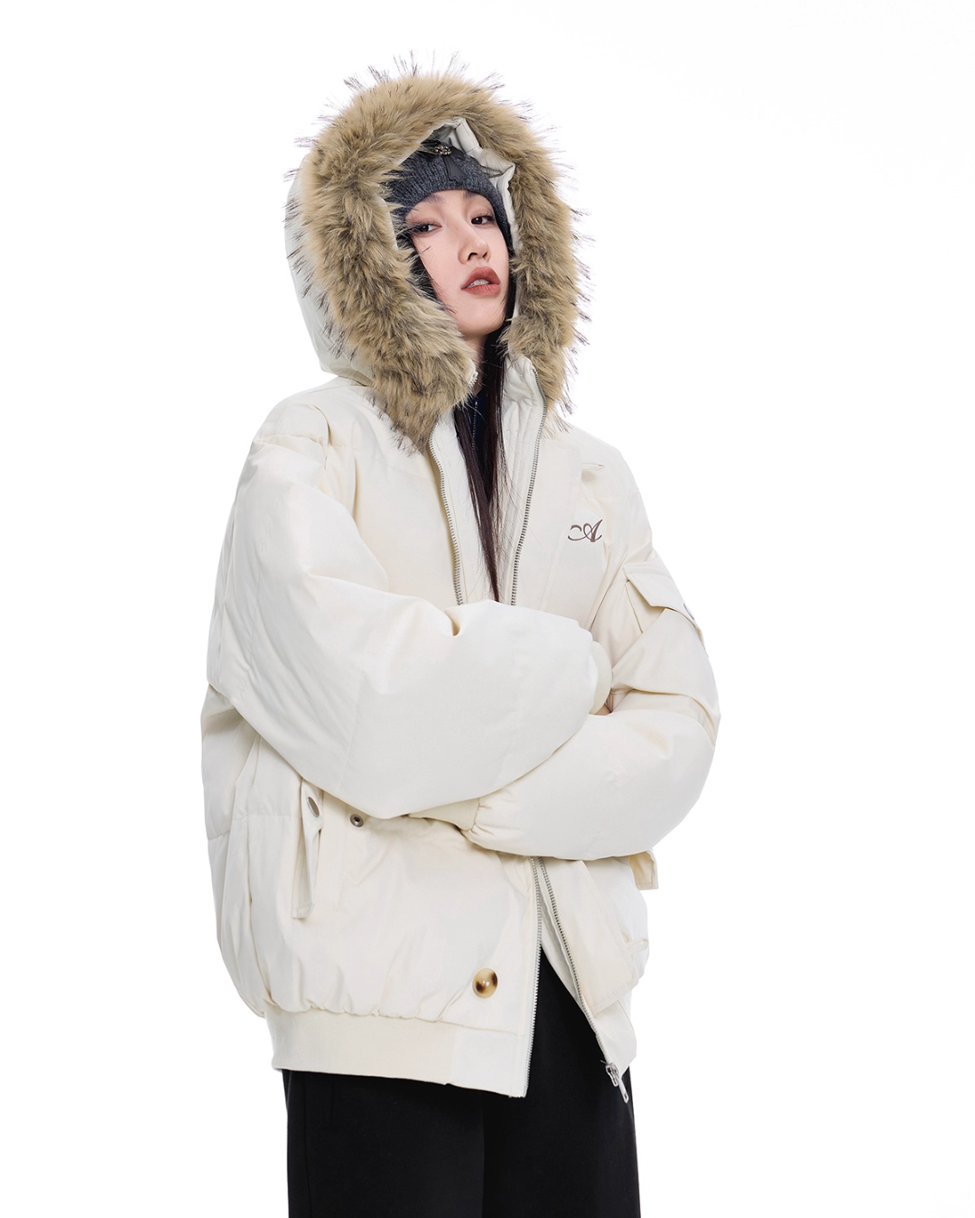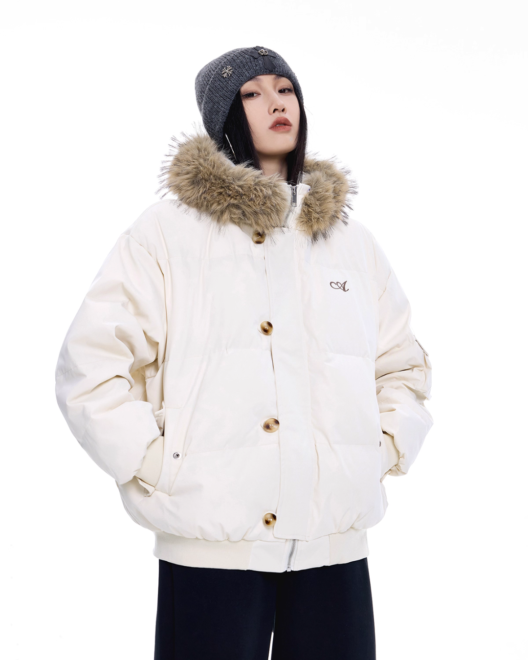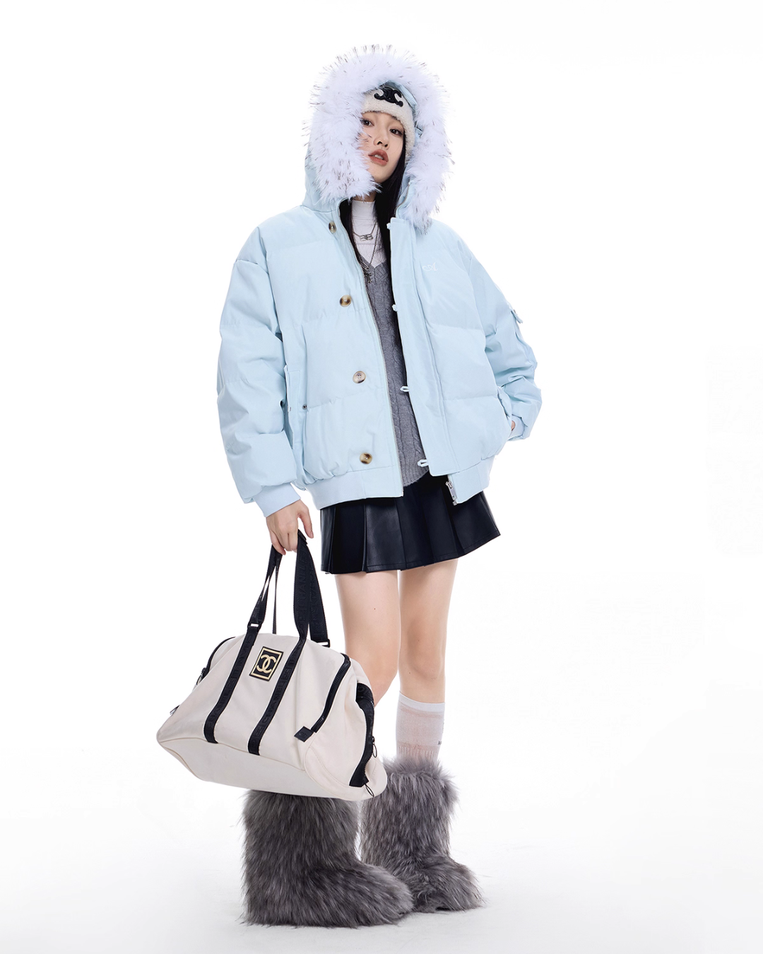 The down jacket with a three-dimensional voluminous silhouette catches the eye.