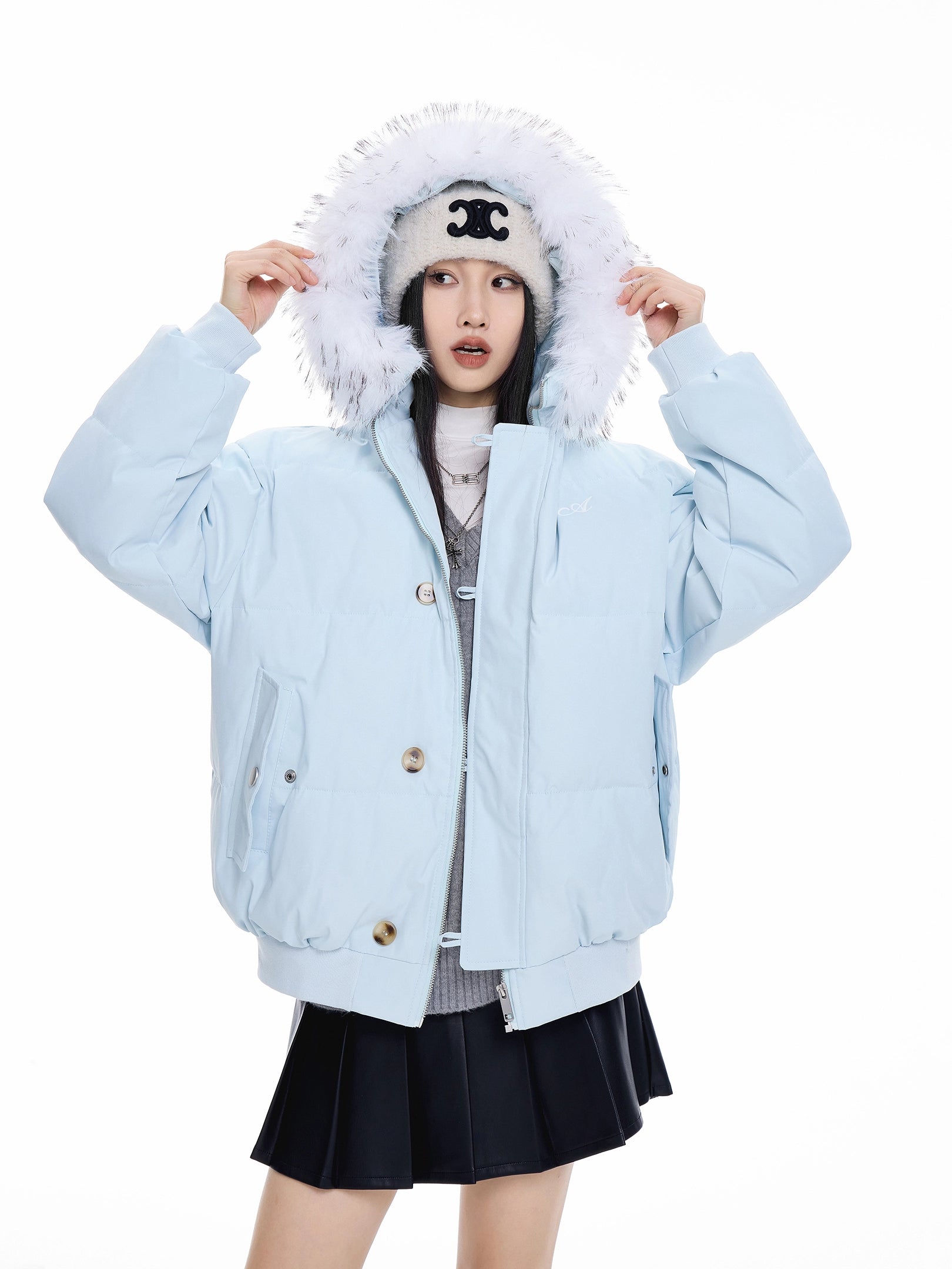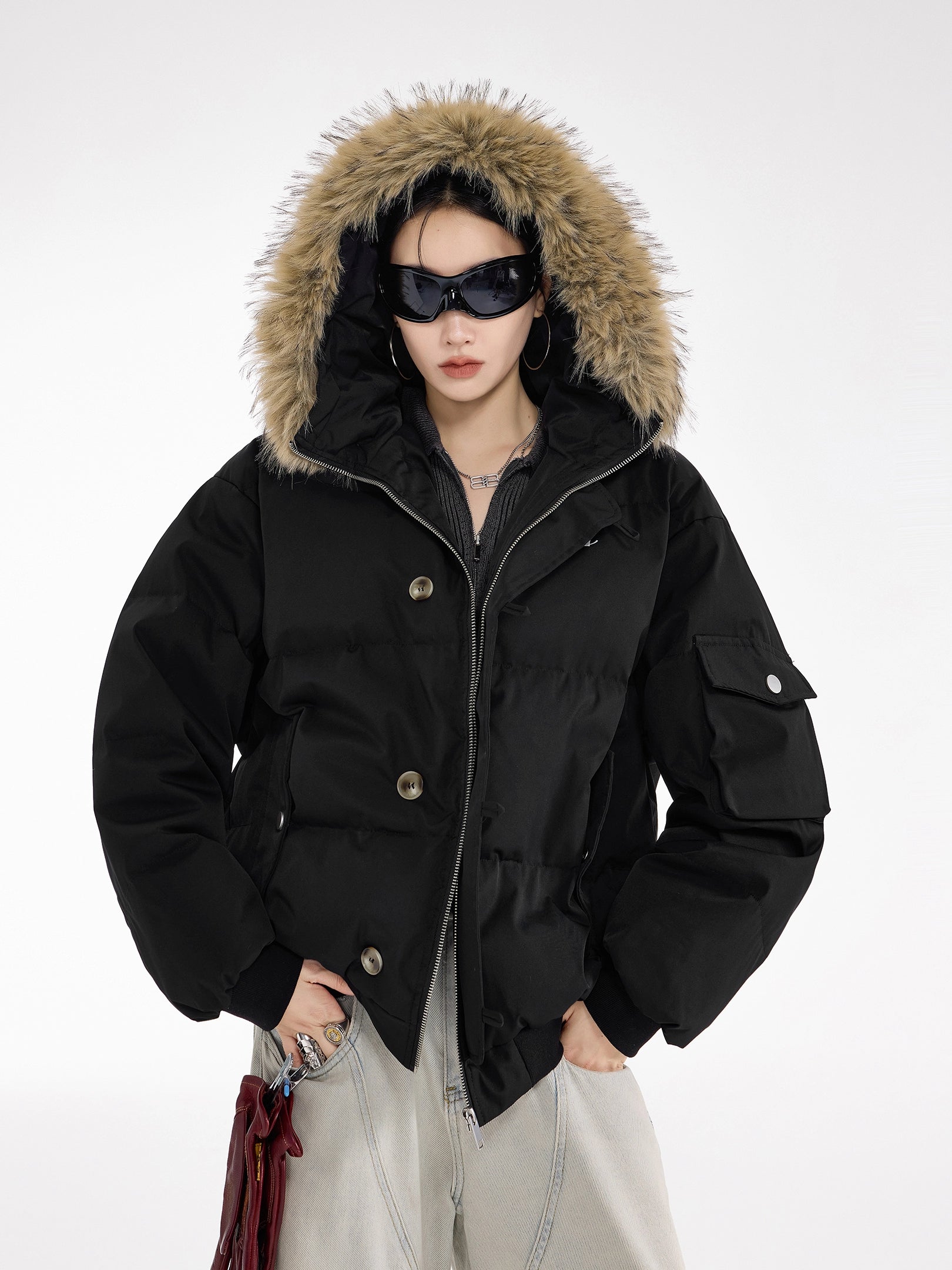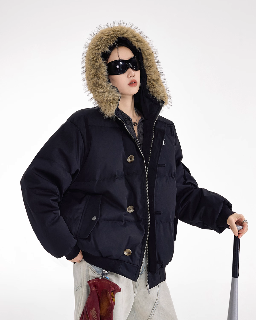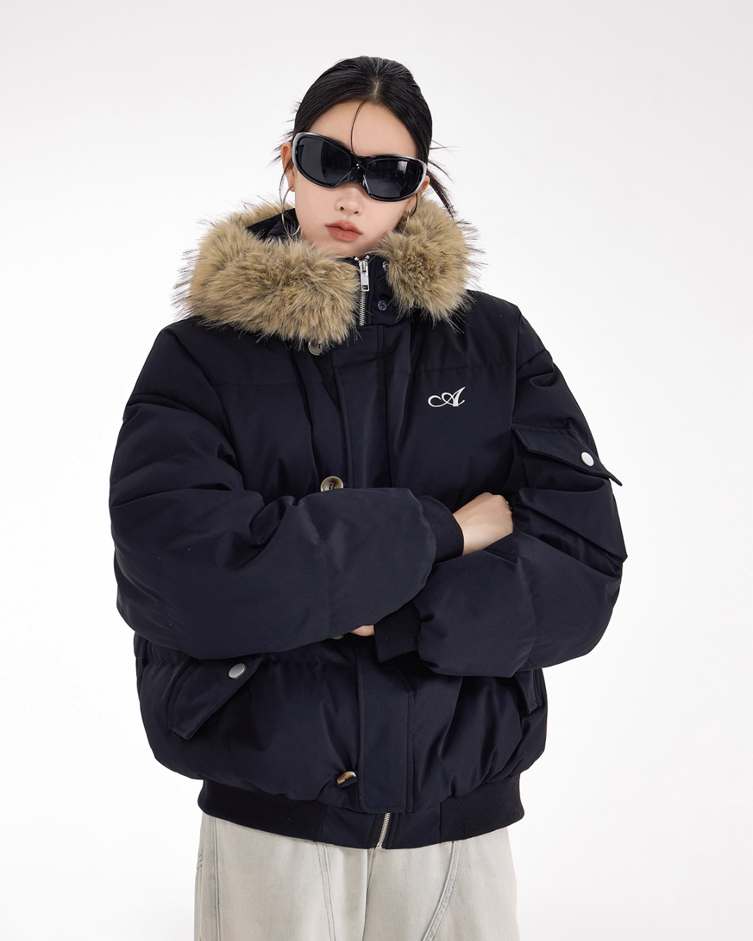 The down jacket with a three-dimensional voluminous silhouette catches the eye.