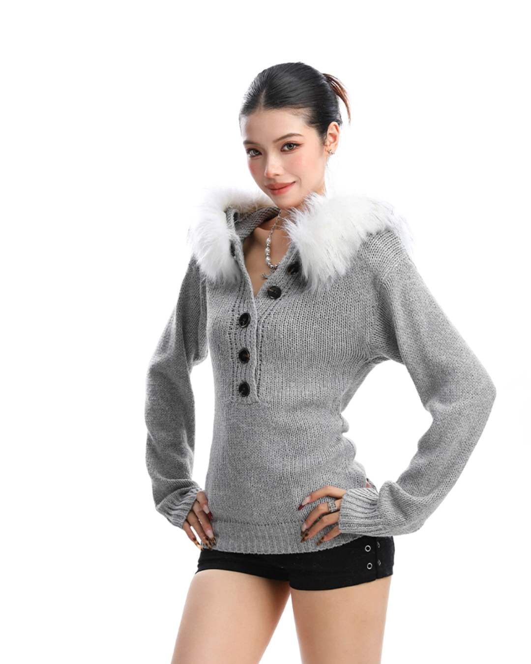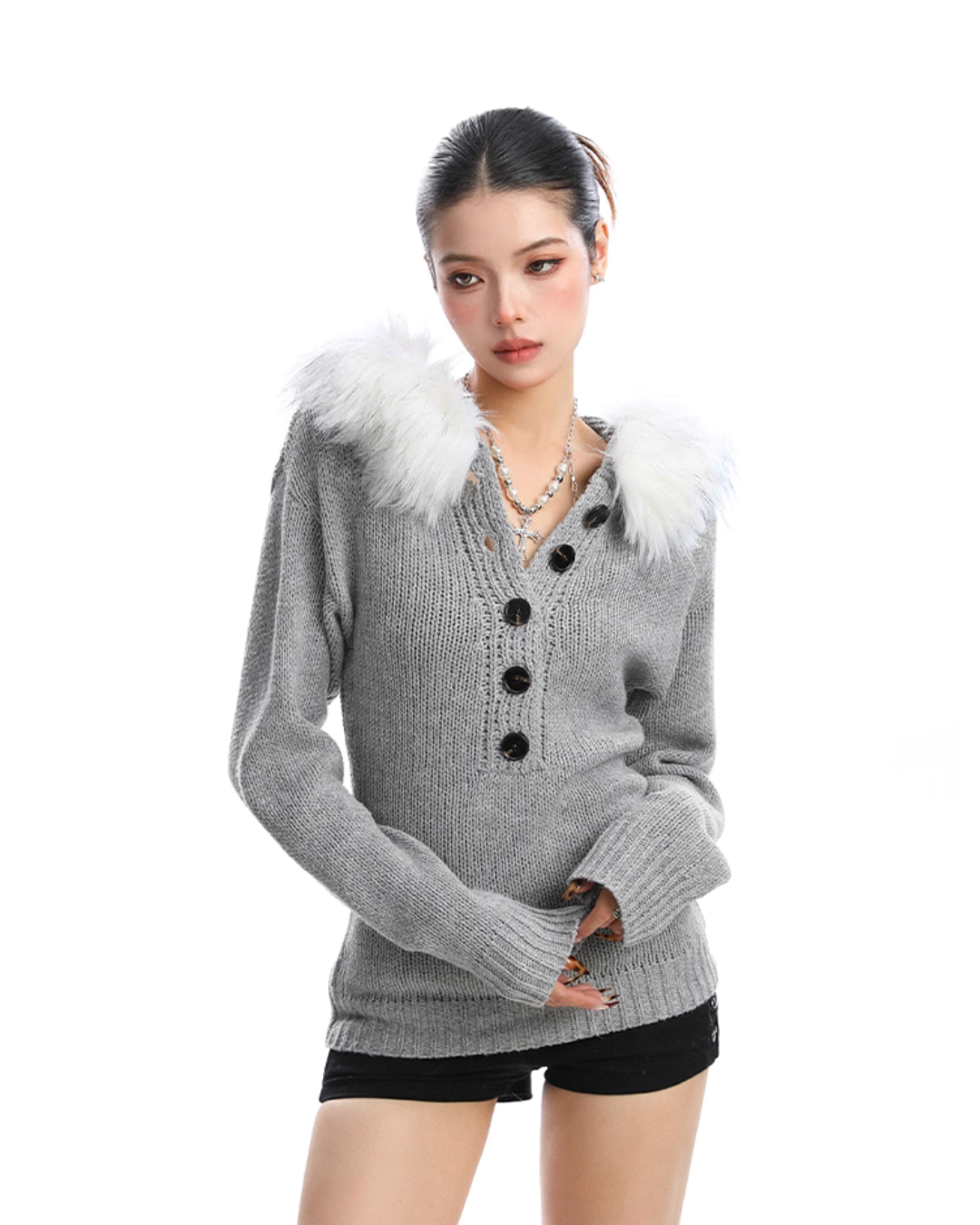 A knit top that gives a sense of adult sophistication adorned with fur.