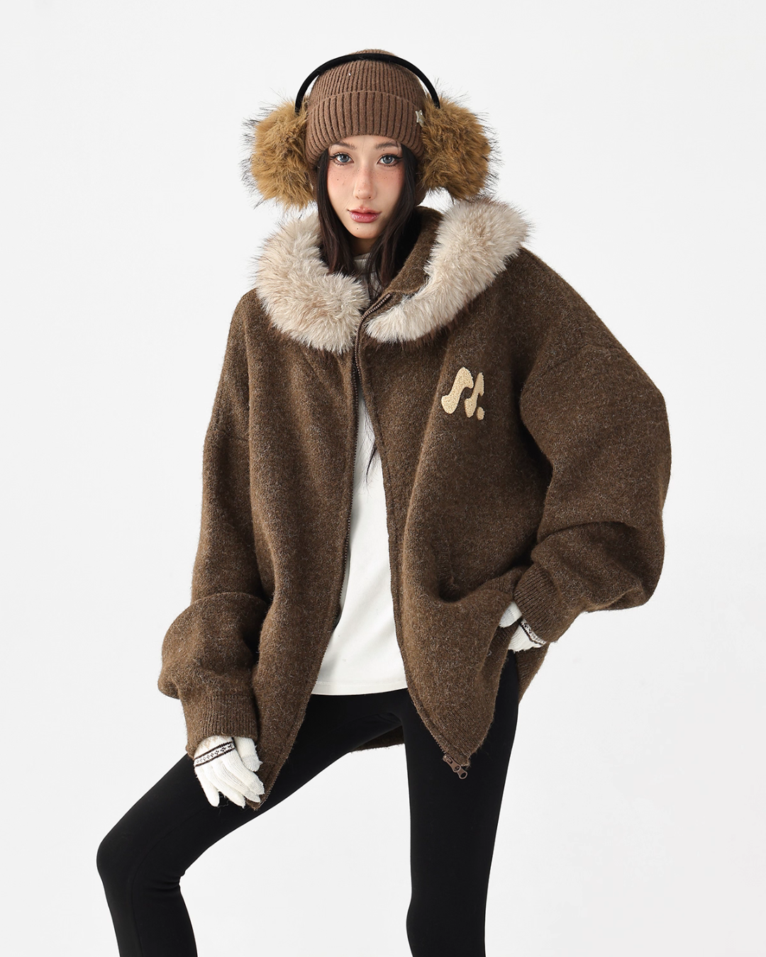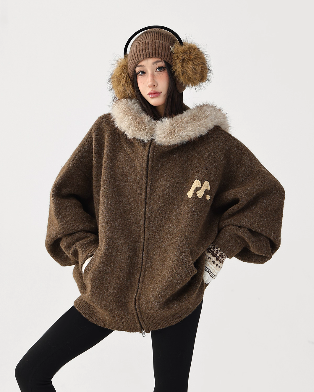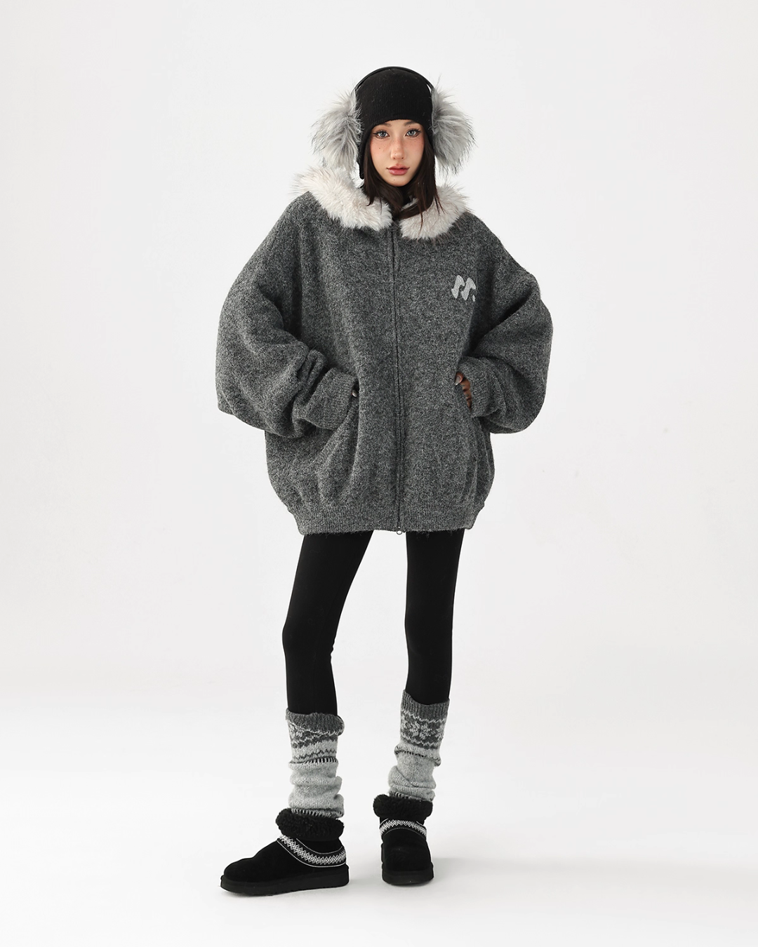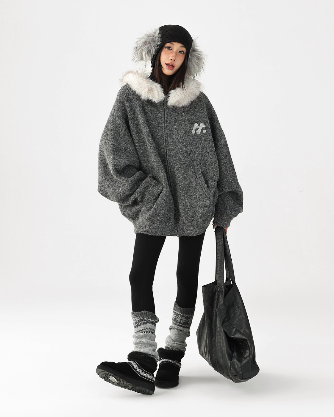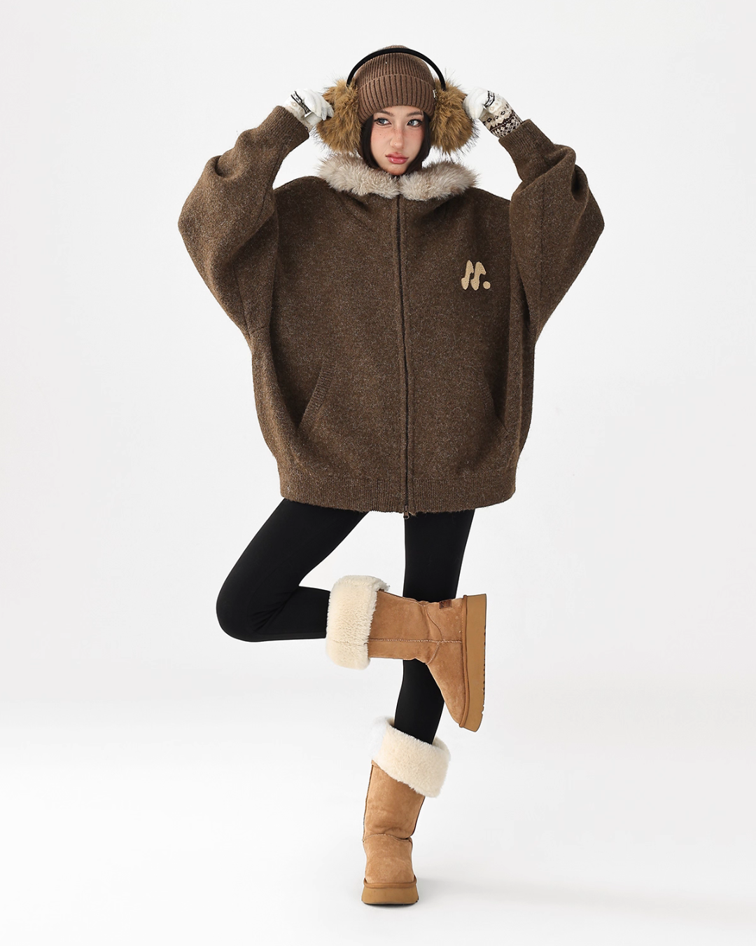 The fluffy fur on the hood adds a glamorous touch around the face.