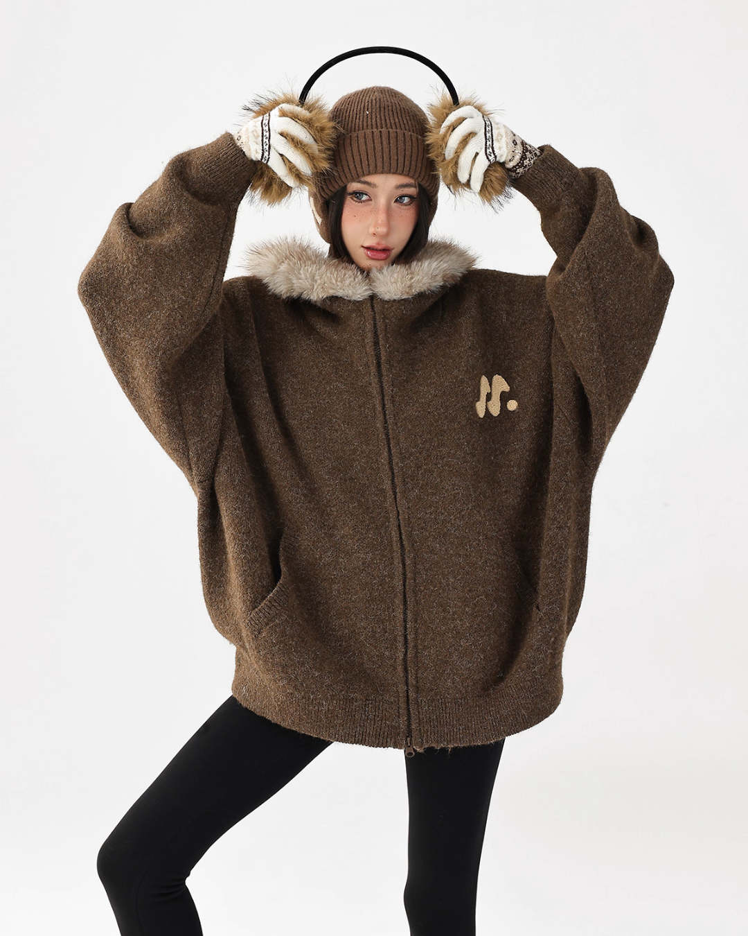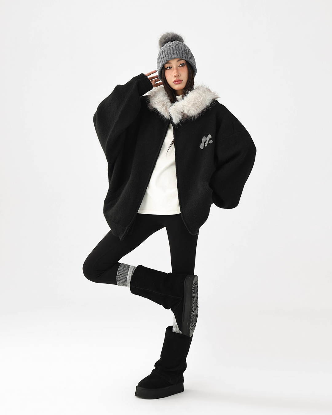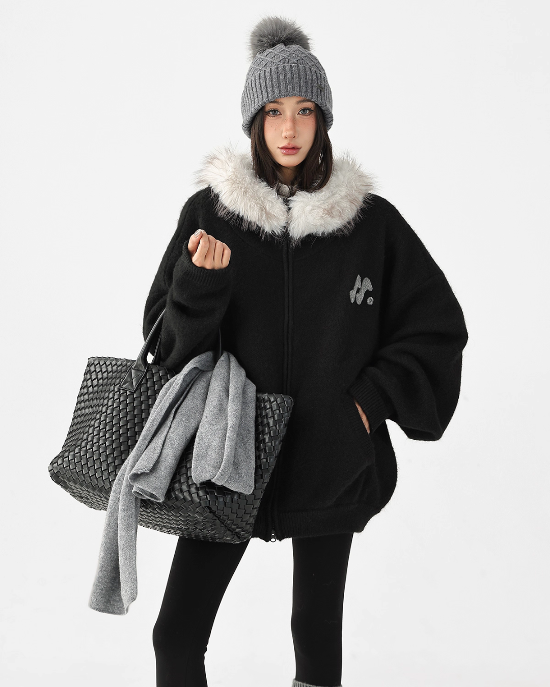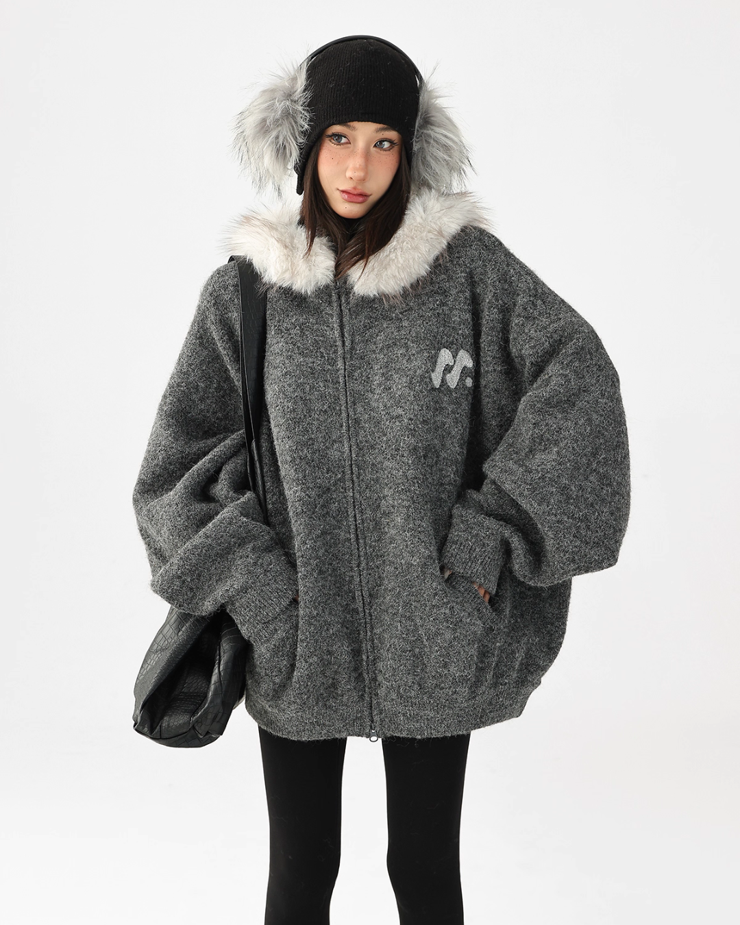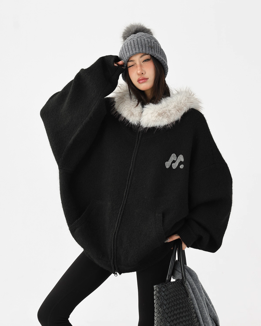 The fluffy fur on the hood adds a glamorous touch around the face.