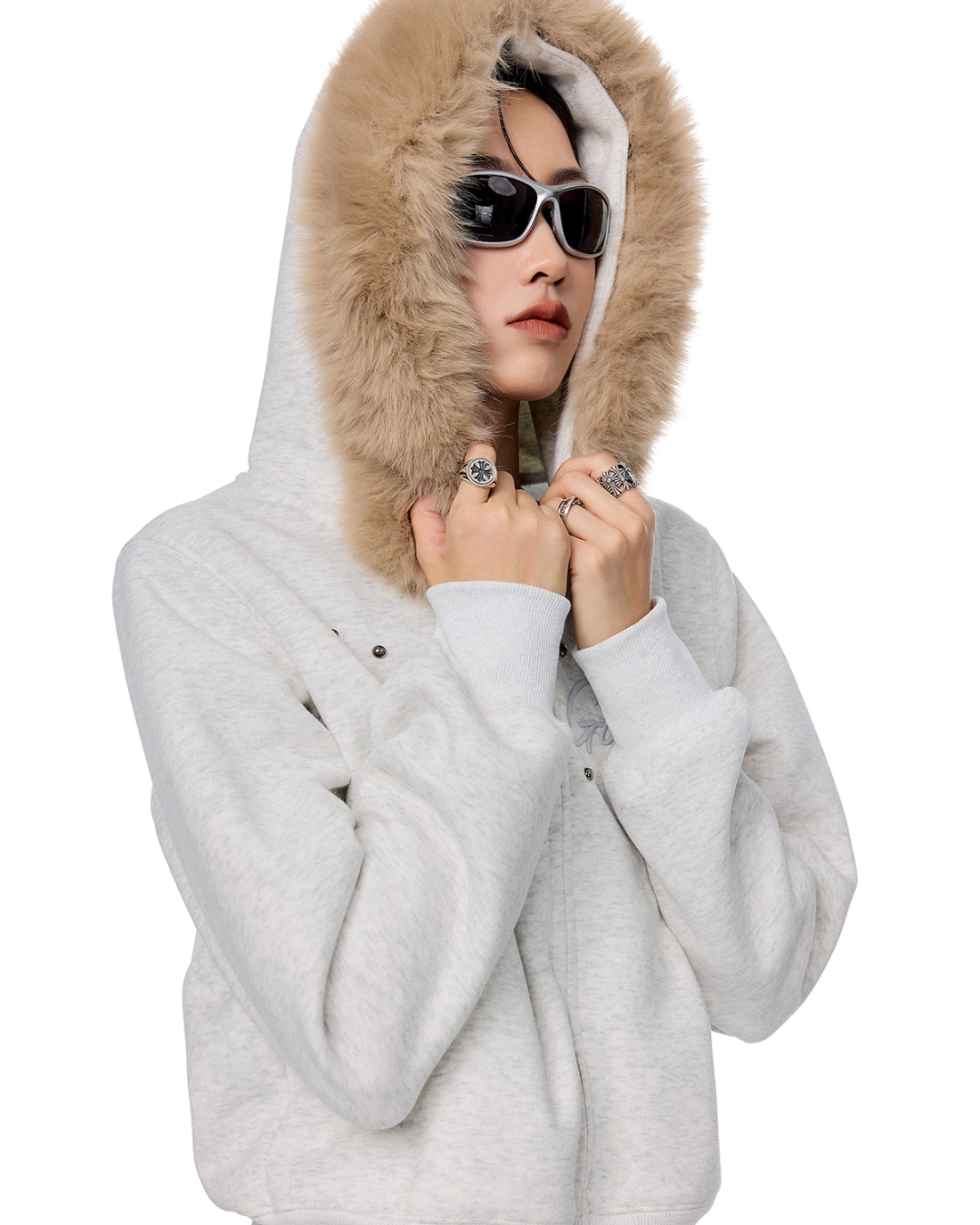 Zip parka with voluminous eco-fur.