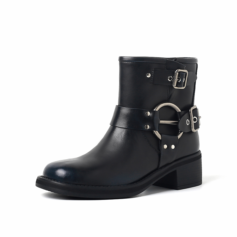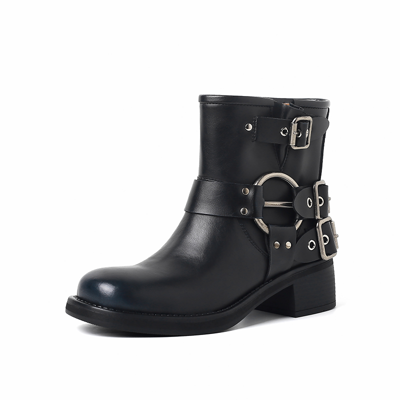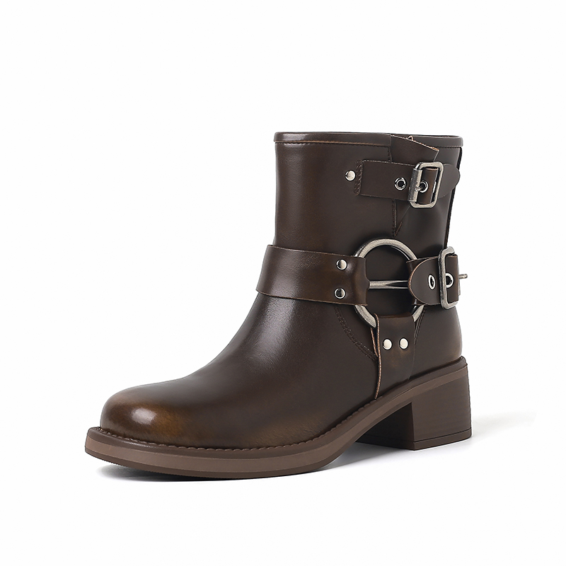 Genuine Leather Vintage Short Motorcycle Boots Three Buckles, Chunky Heels Women Autumn Winter High-quality product featuring fall outfits women, fall fits, warm fall outfits and more. Modern design that fits the latest trends. Premium materials ensure durability and comfort. Order now for special offers! Product designed with attention to every detail. Suitable for all occasions and personal styles.