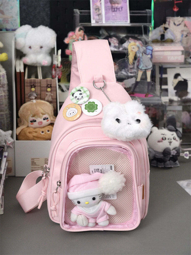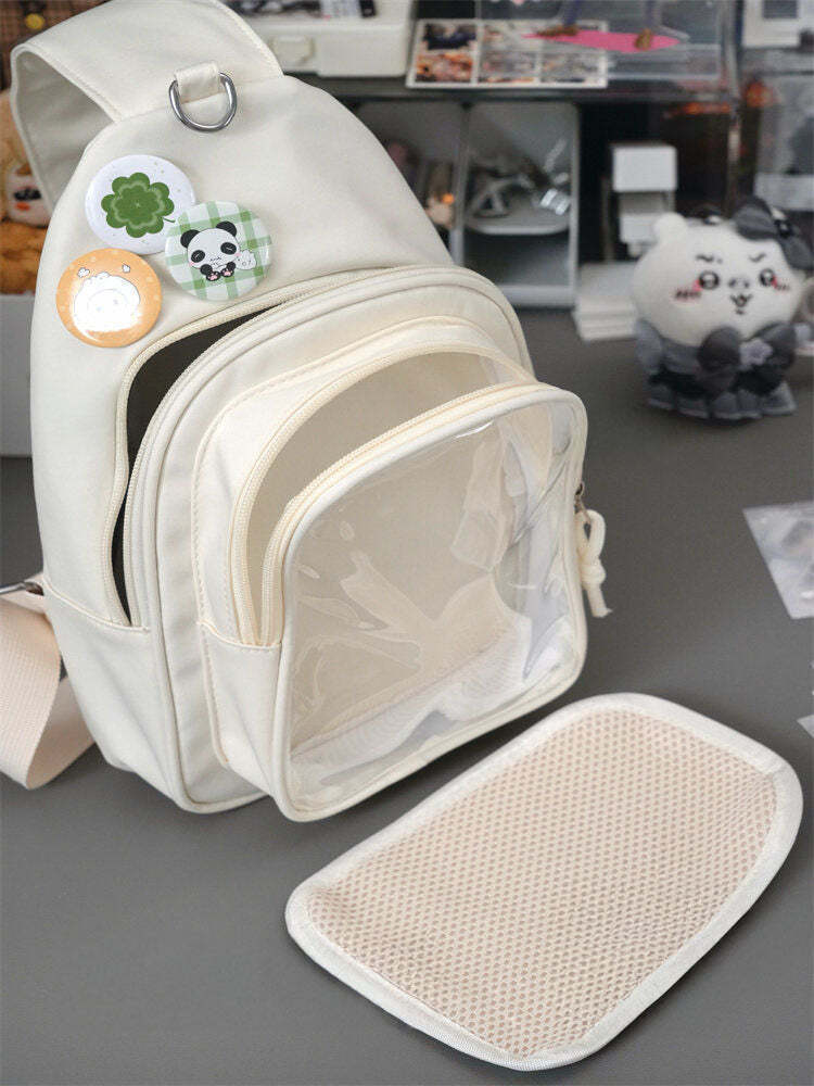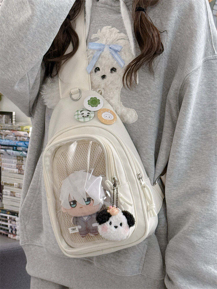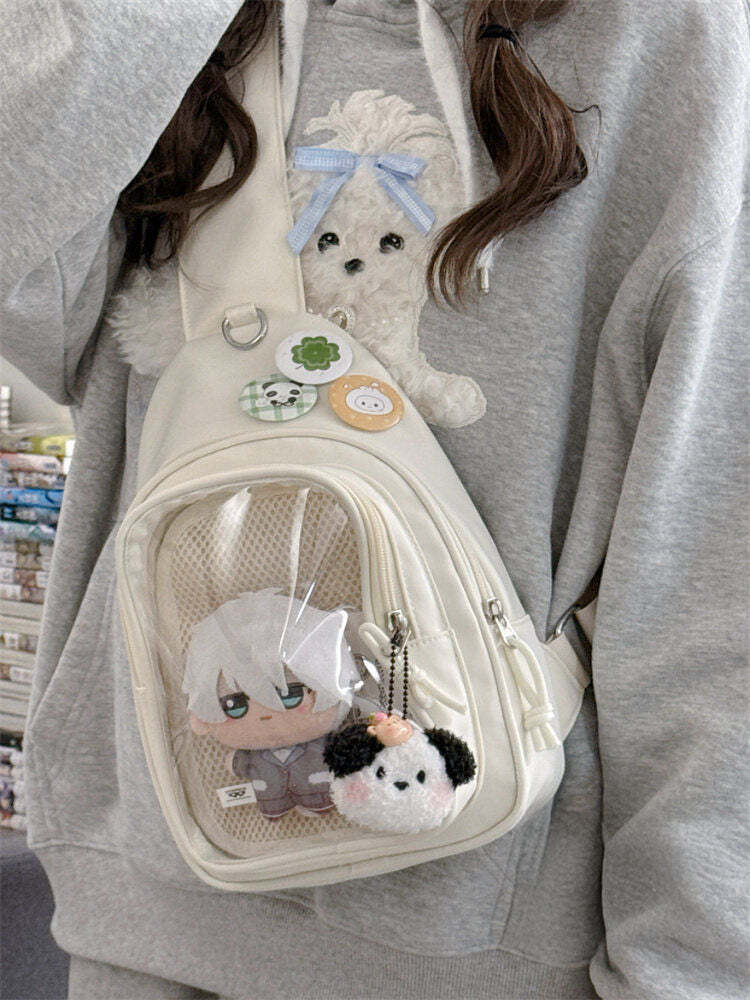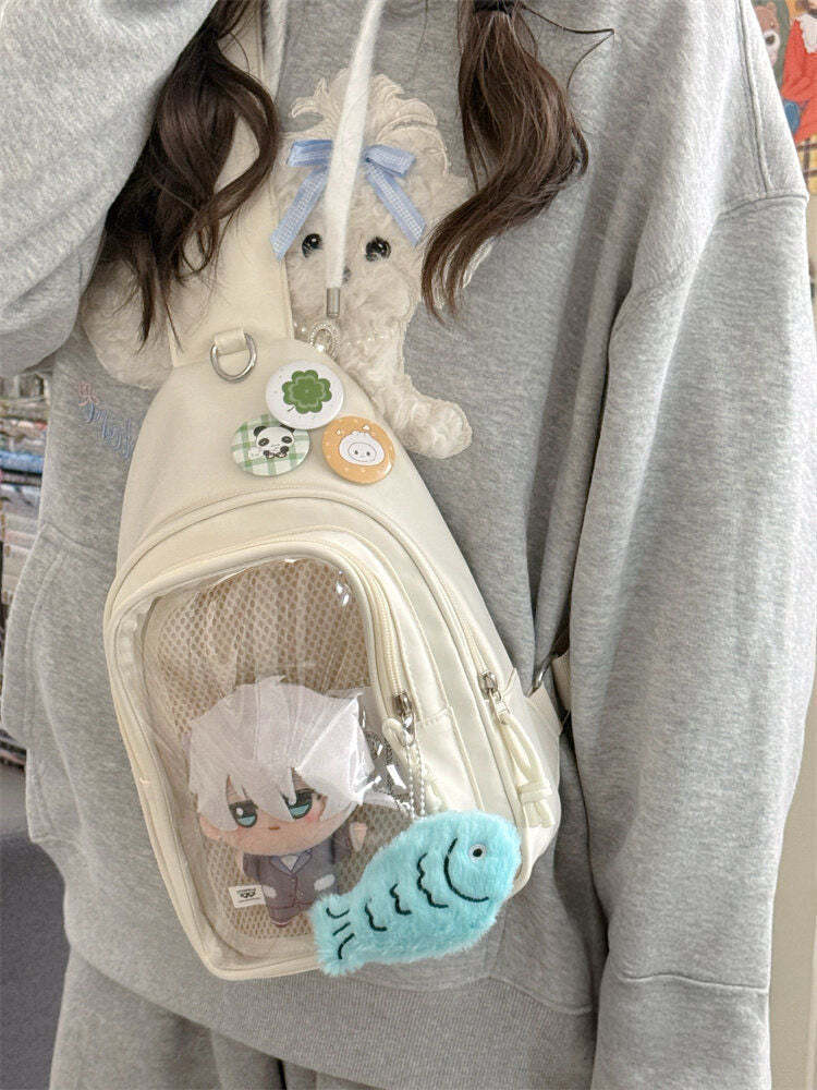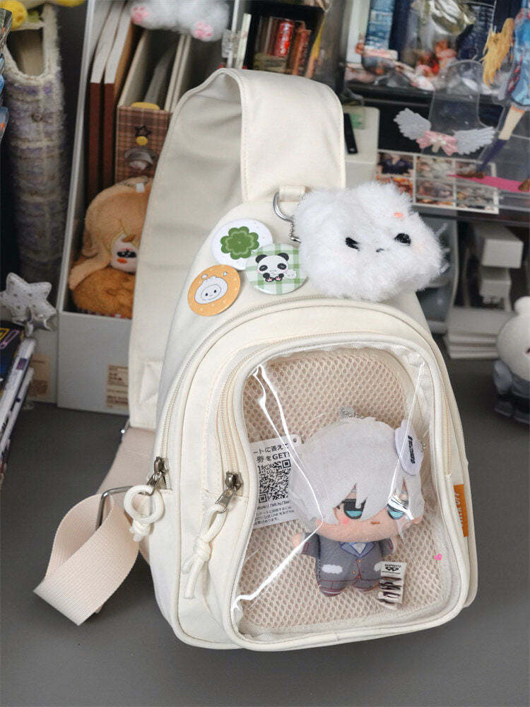 Ita Bag with Included Insert for Plushies and Pins is designed to display plushies, dolls, pins, and badges while keeping everyday essentials organized.