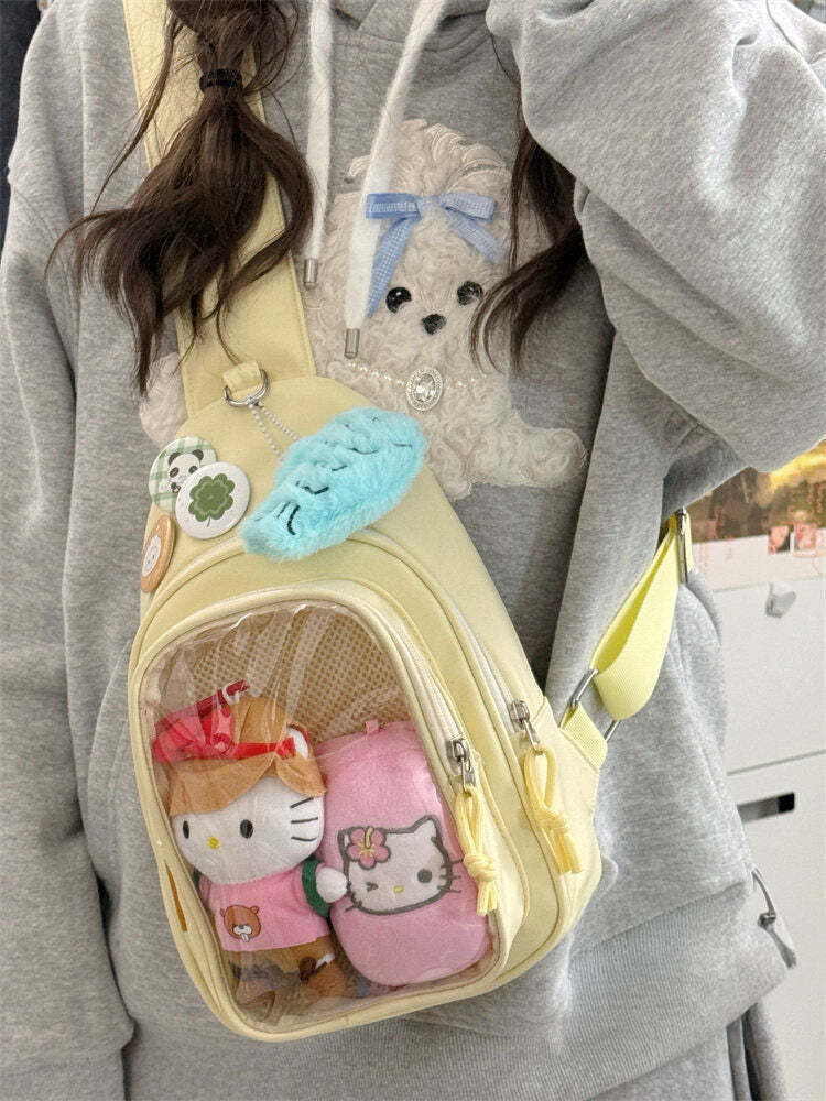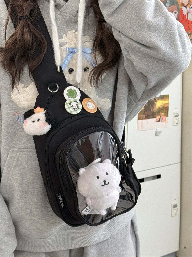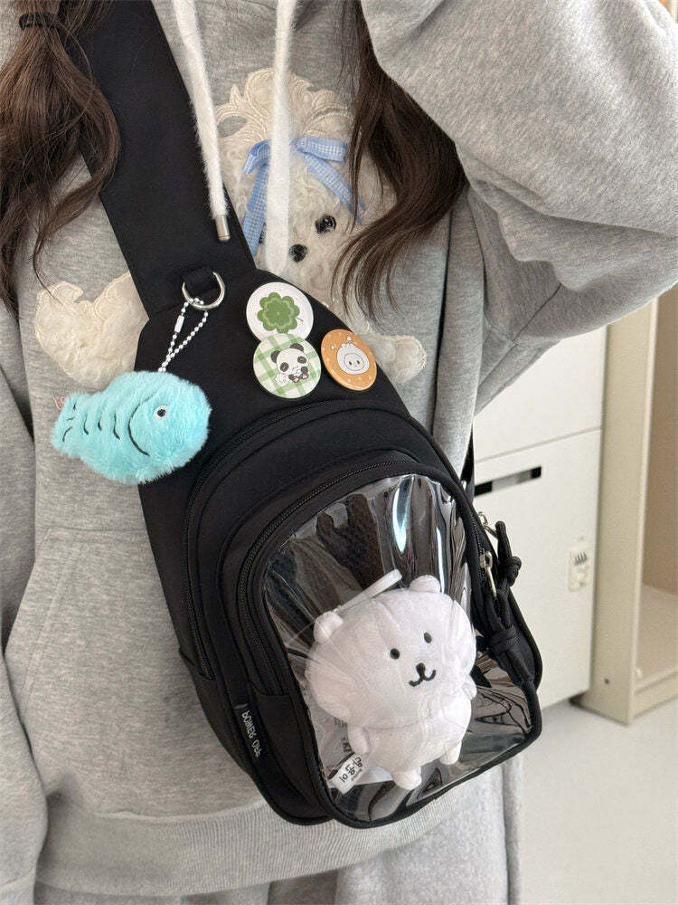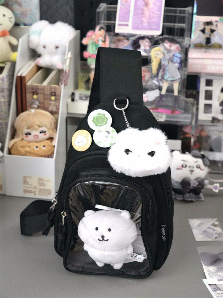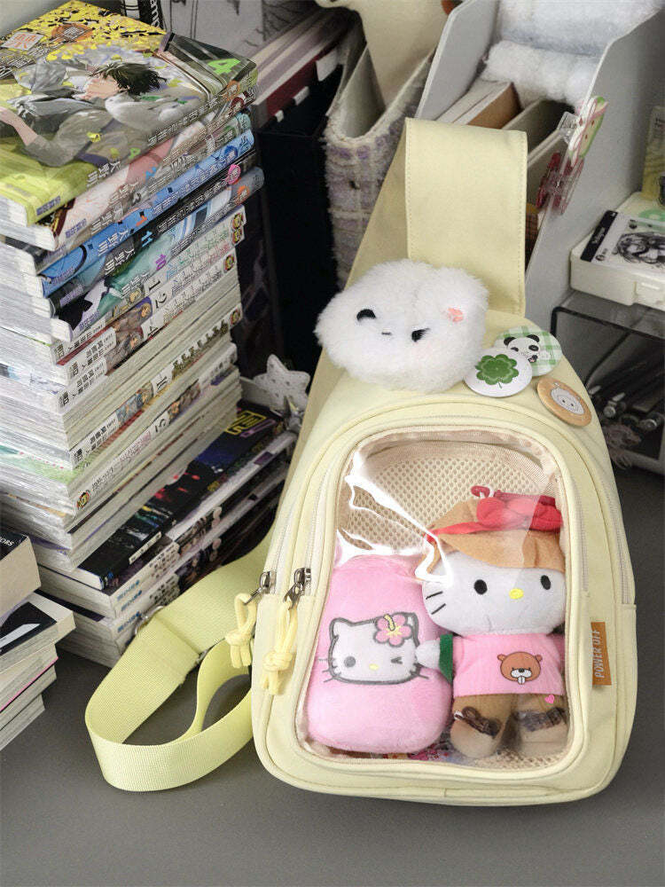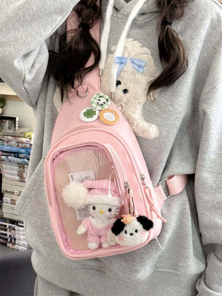 Ita Bag with Included Insert for Plushies and Pins is designed to display plushies, dolls, pins, and badges while keeping everyday essentials organized.