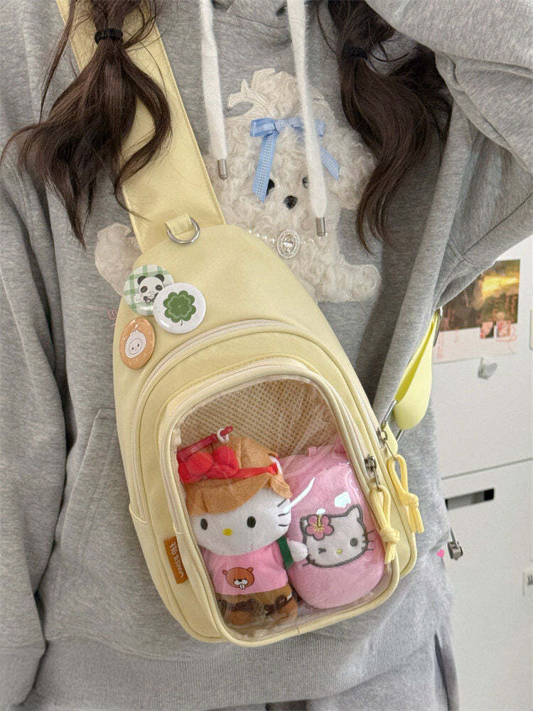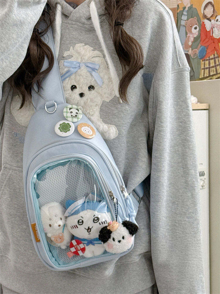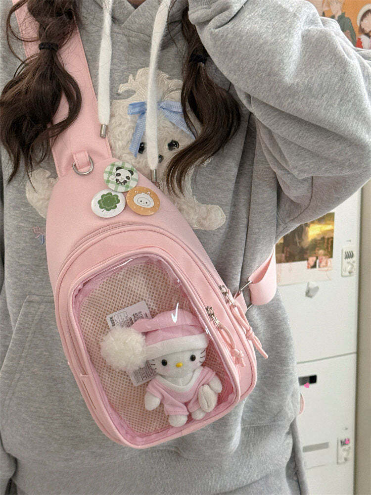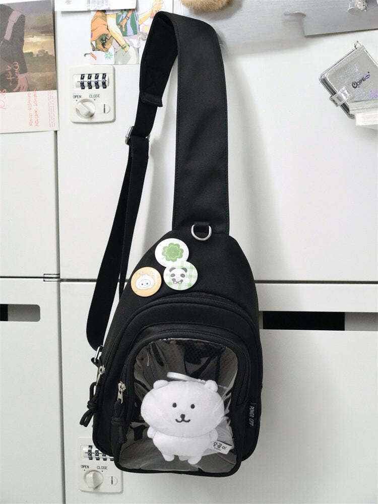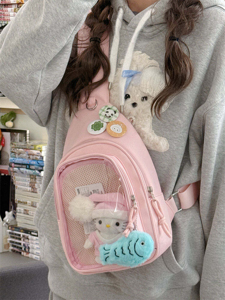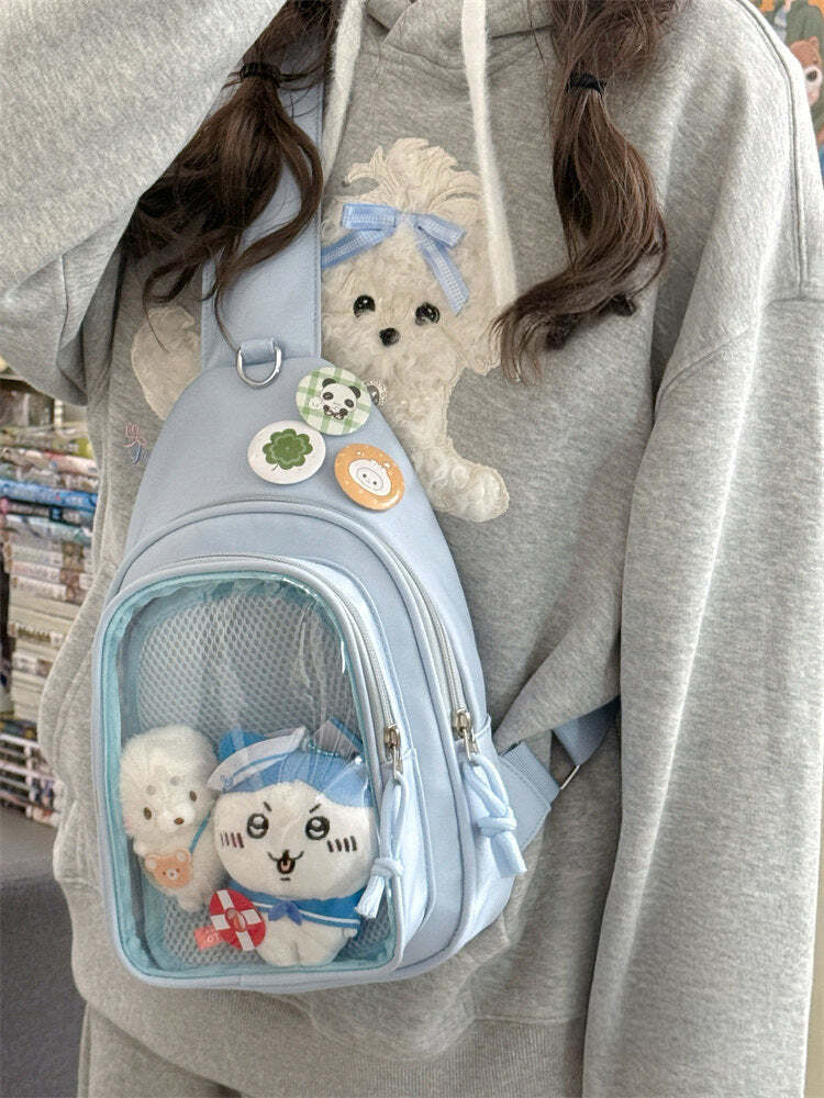 - A cute, girl-style ita chest bag perfect for anime conventions, daily outings, and casual looks. Designed with a widened shoulder strap for extra comfort, it’s great for carrying your essentials while showing off your favorite badges or plush.