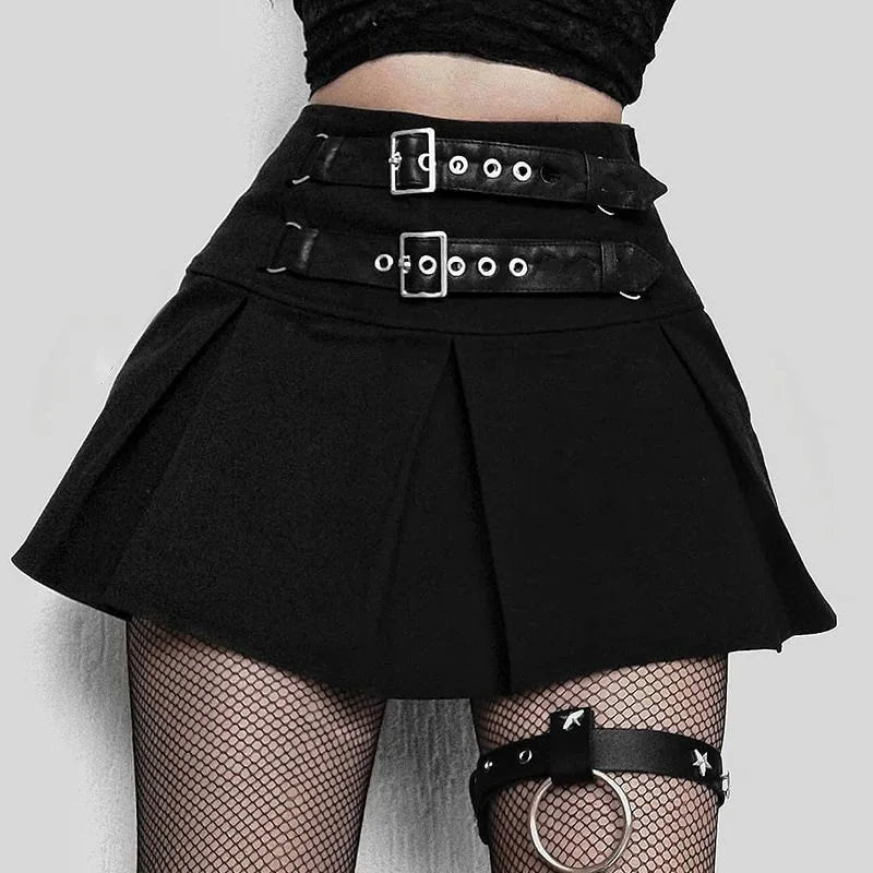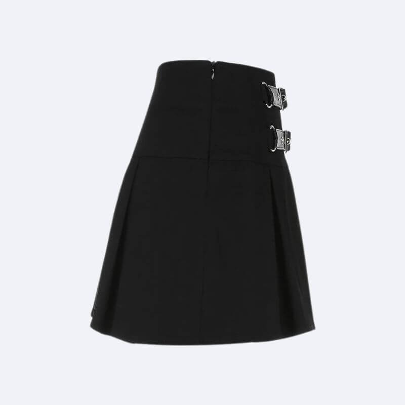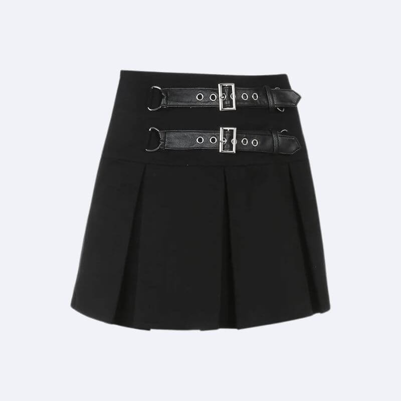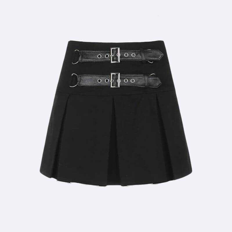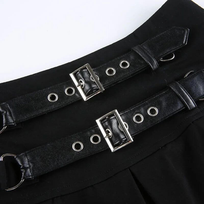 Goth Buckle Pleated Mini Skirt