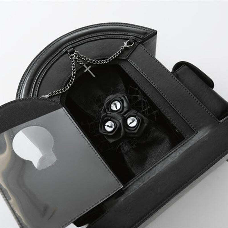 - This bag combines a gothic skull design with a vintage feel, perfect for creating a sense of ceremony. It can hold badges, commemorative tickets, stickers, or even a 6-inch BJD doll. Due to its design structure, the top of the bag does not have a zipper; instead, it uses a magnetic closure system with three strong magnets, ensuring the bag stays securely closed during normal walking or running. However, it is not recommended for storing expensive or fragile items.