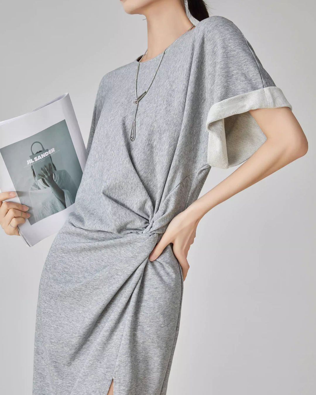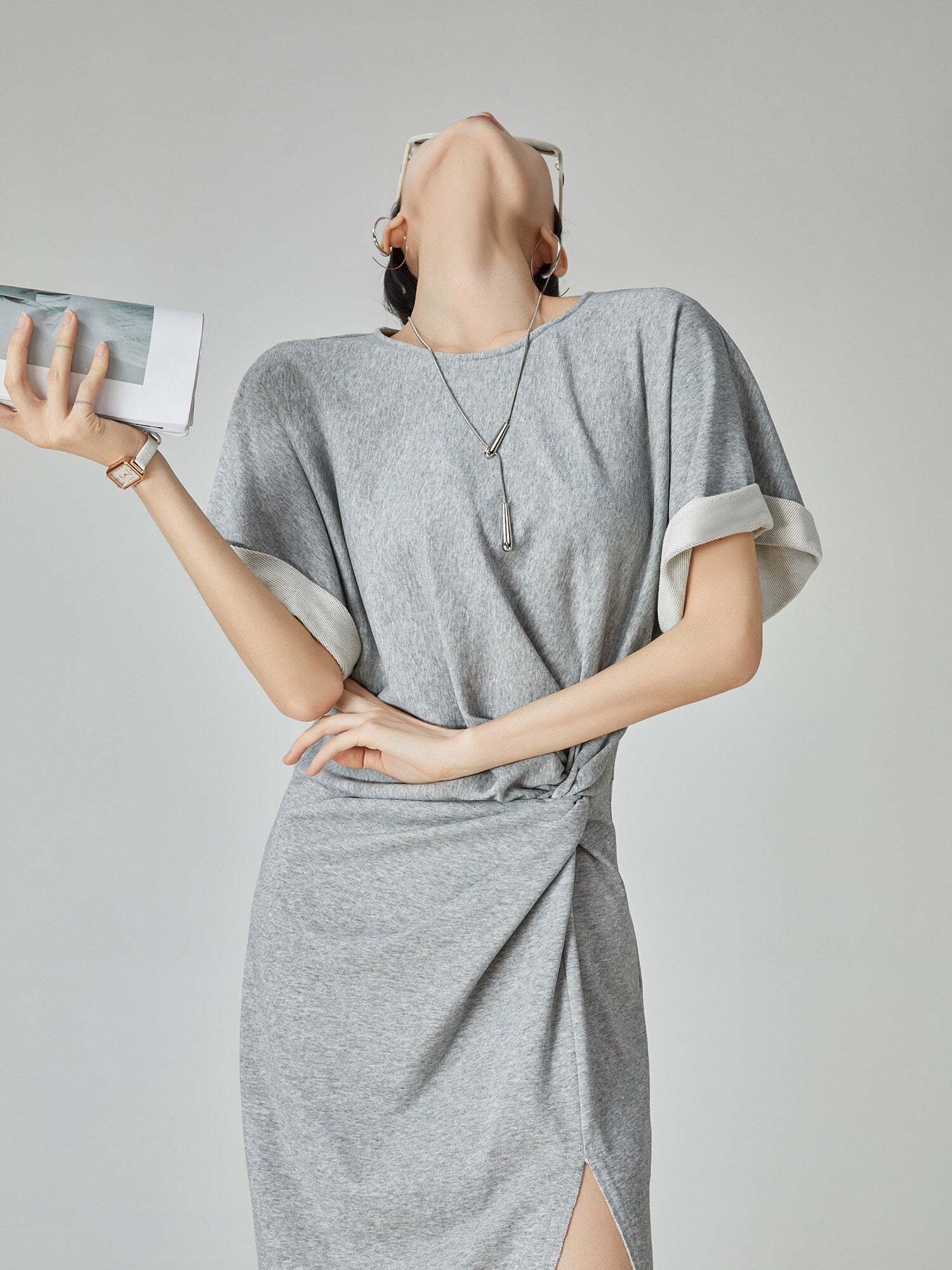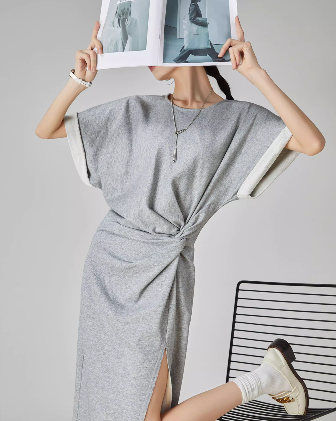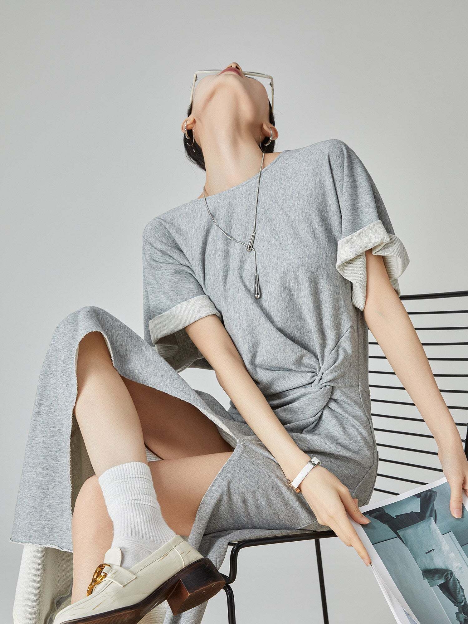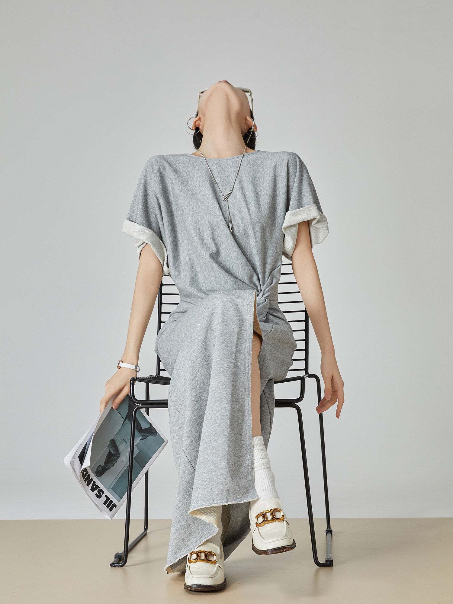 It features a deep slit in the front, allowing for ease of movement while creating a sense of openness.