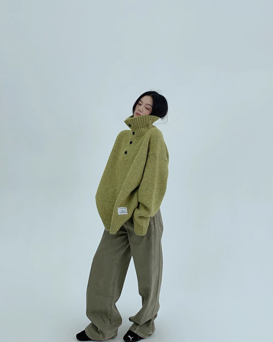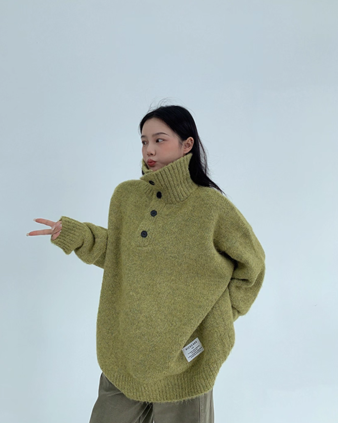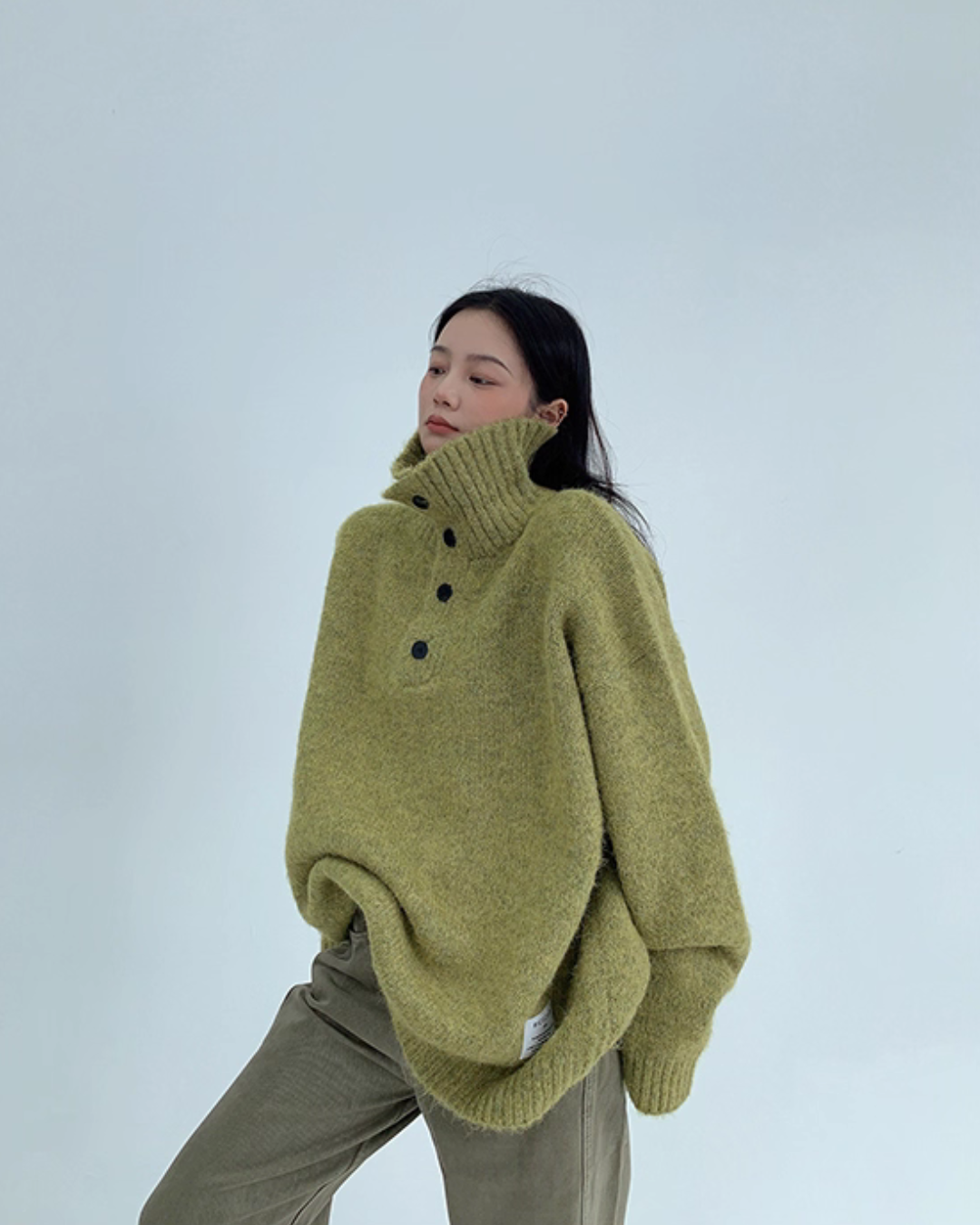 A knit top made of fluffy knit material that provides a soft wearing experience.