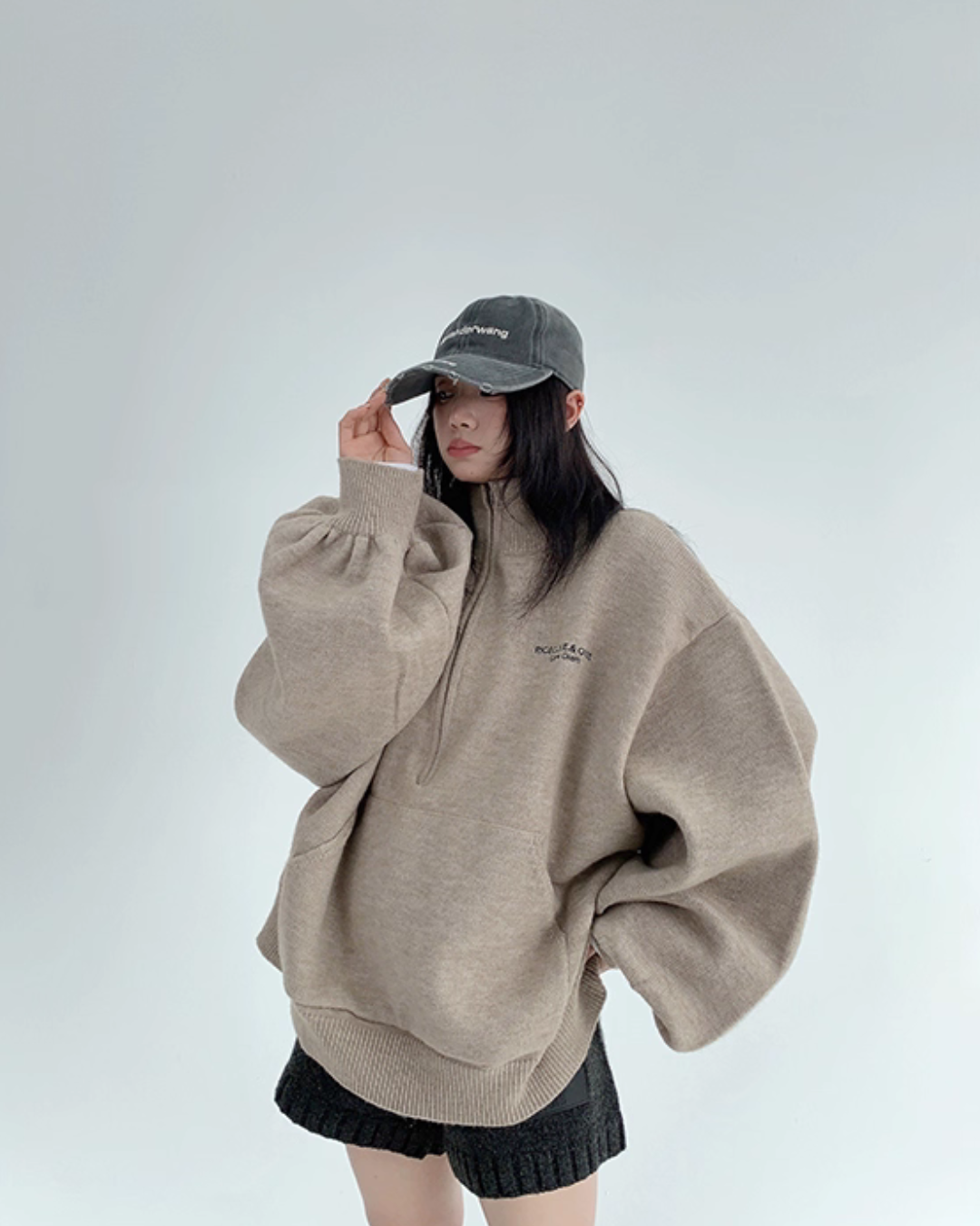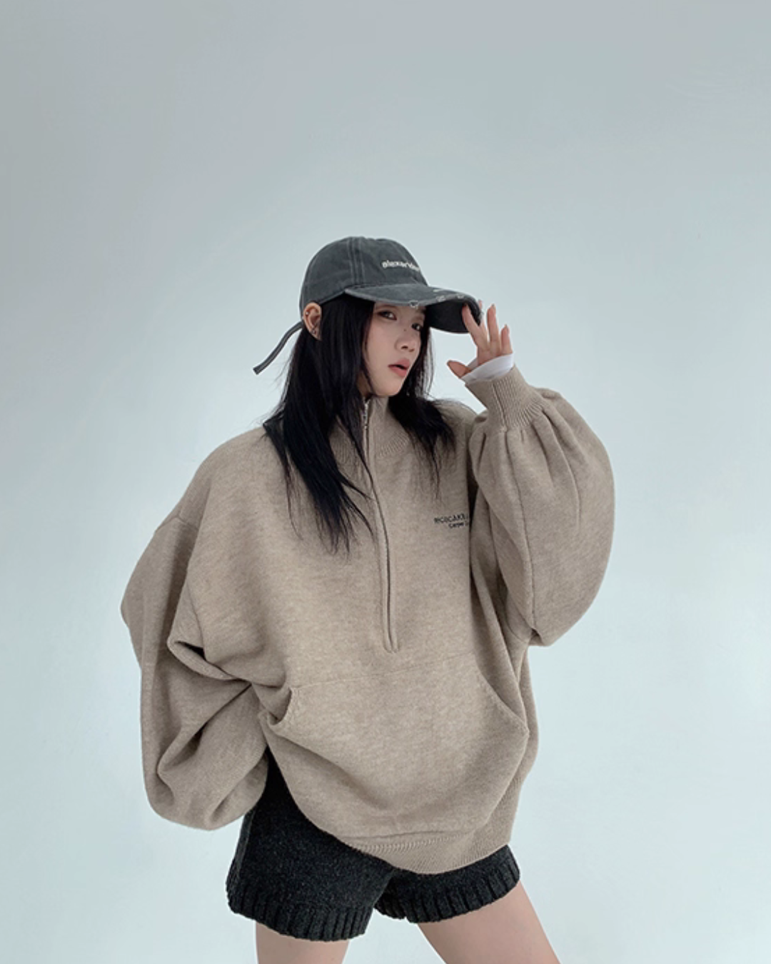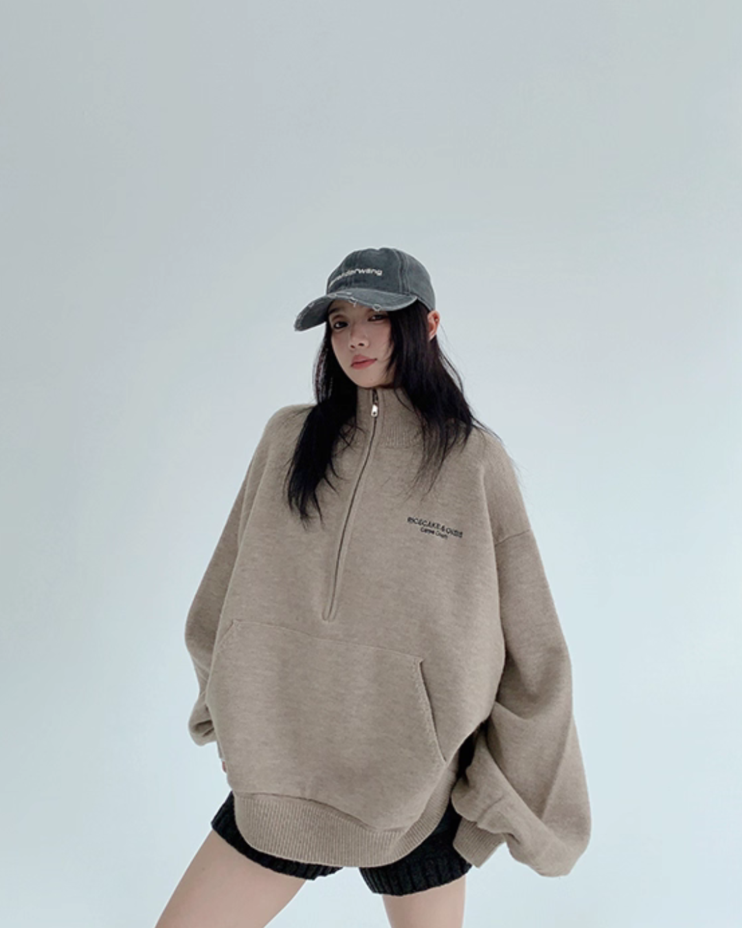While creating a relaxed feel with an oversized fit, it subtly covers the body shape.