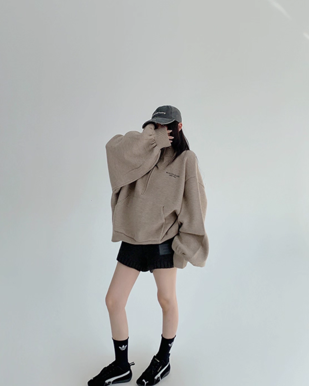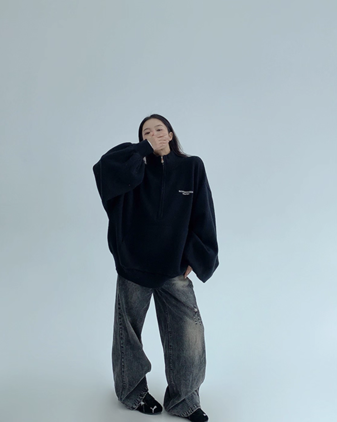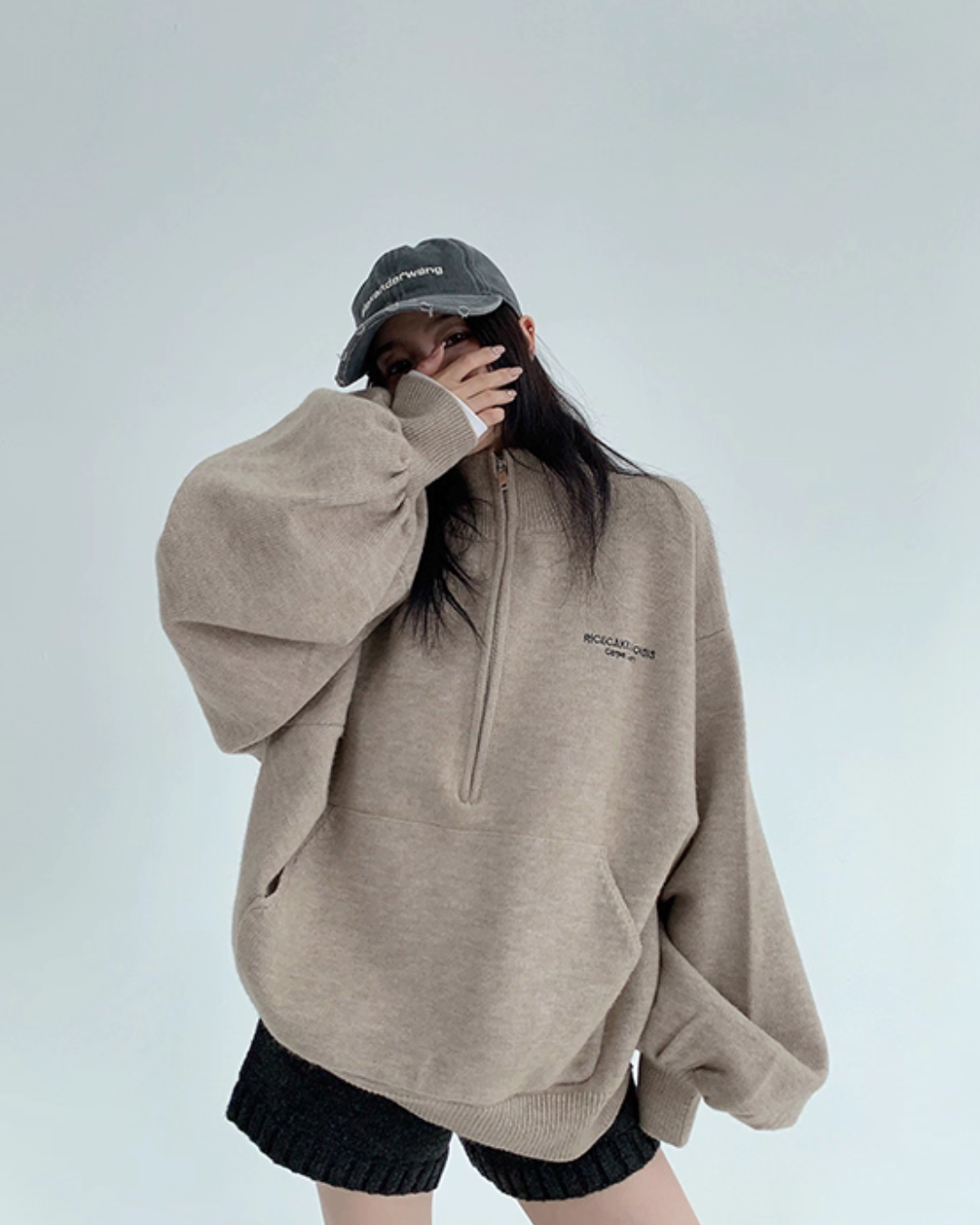 While creating a relaxed feel with an oversized fit, it subtly covers the body shape.