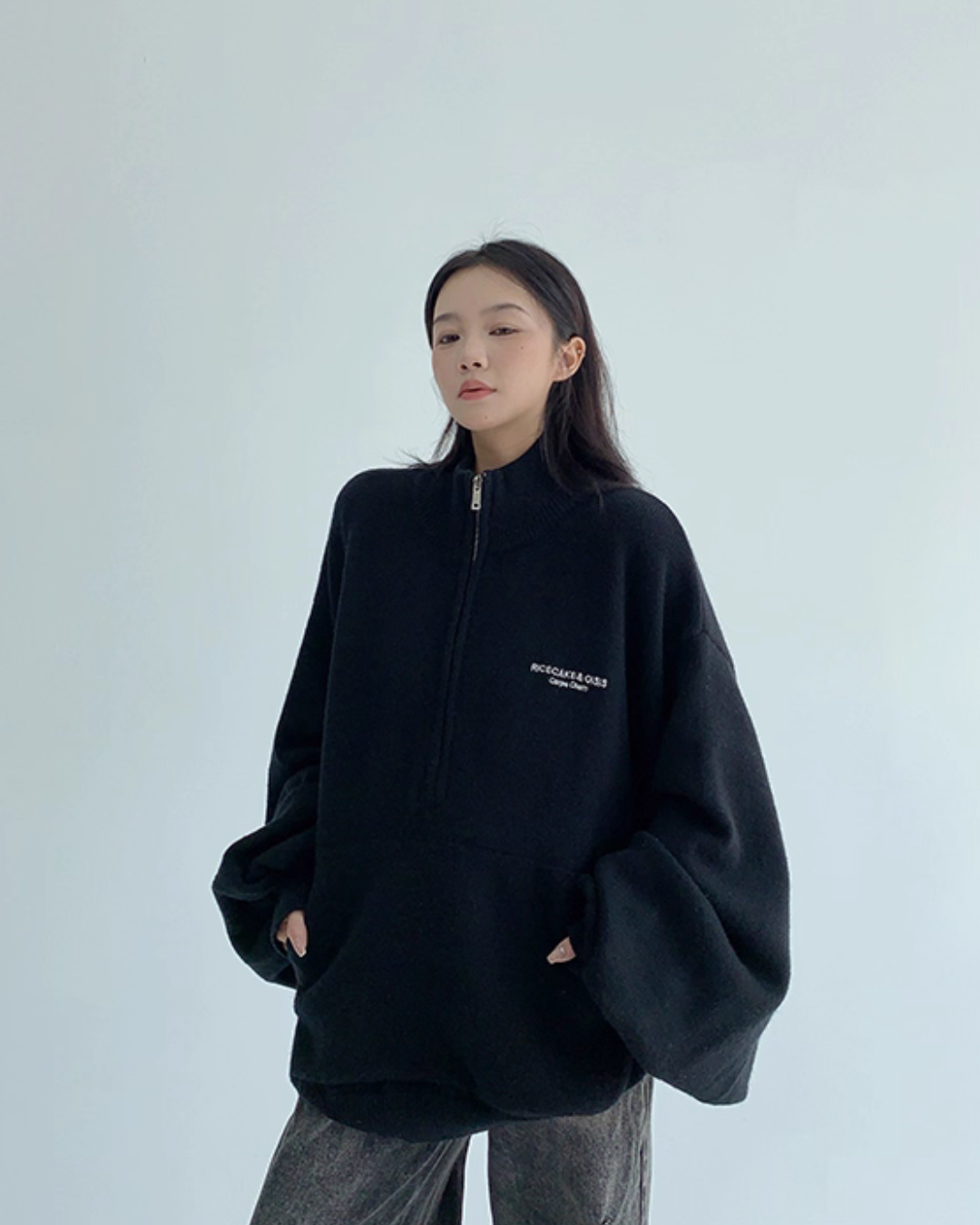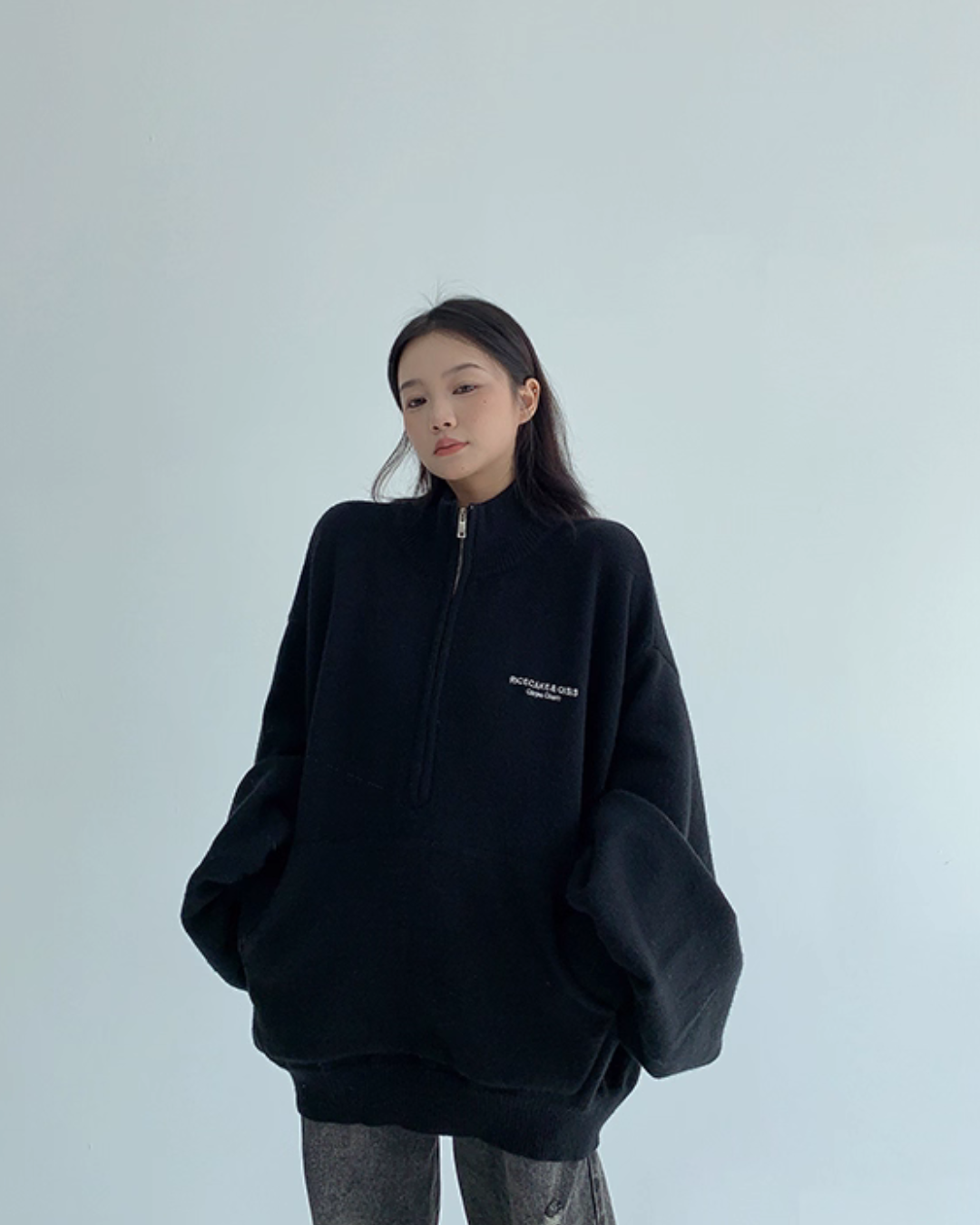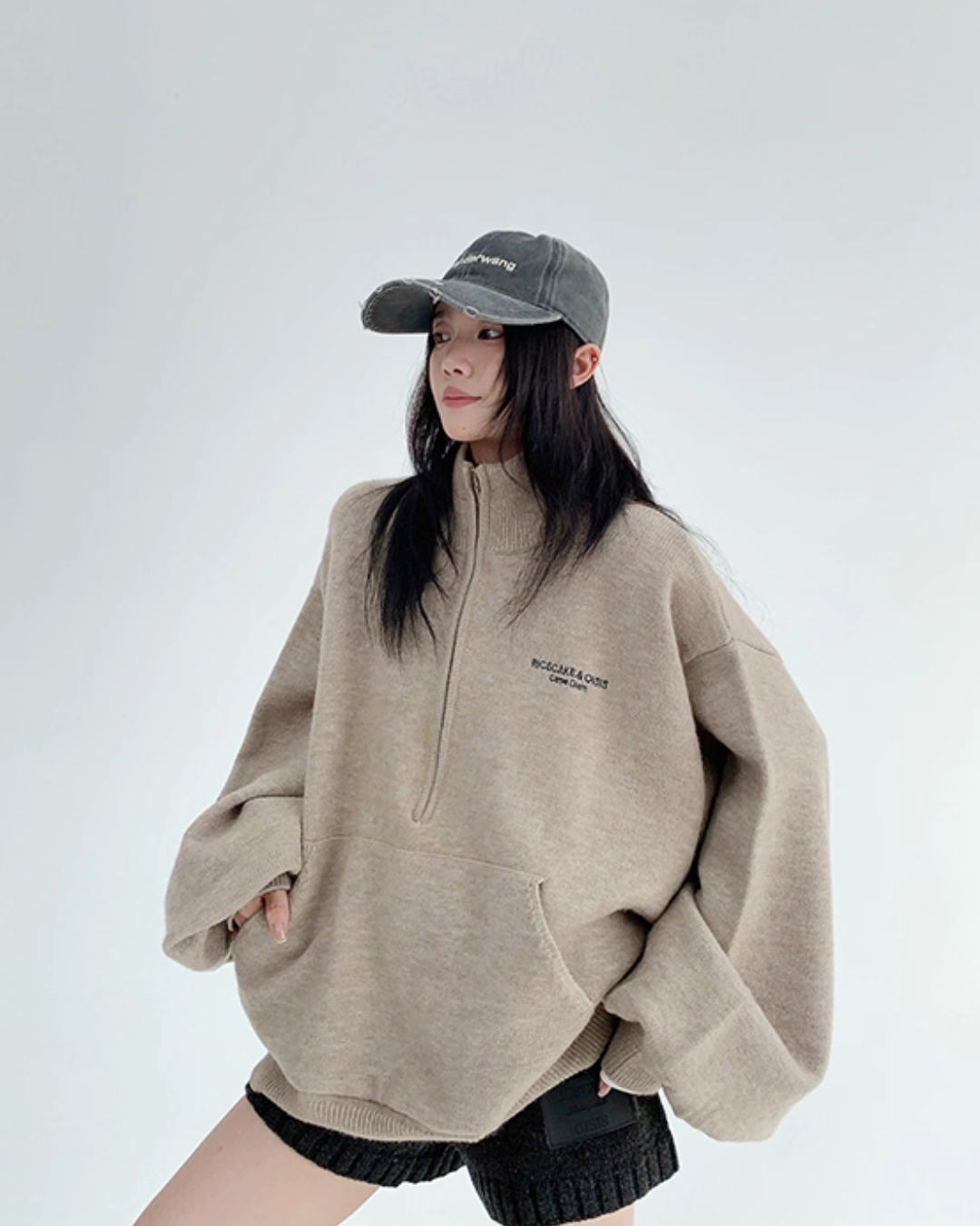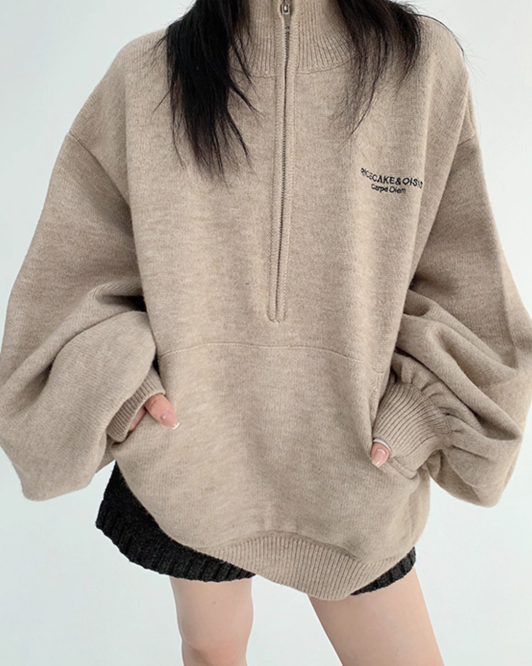 The half-zip at the neck adds a sporty accent, completing a trendy outfit with just one piece.
