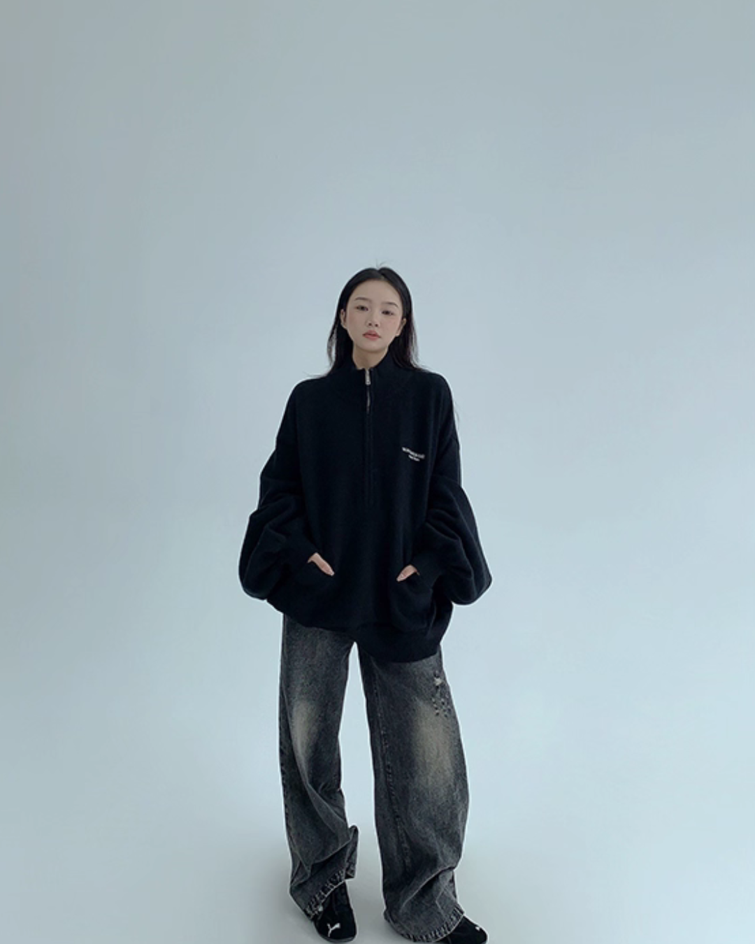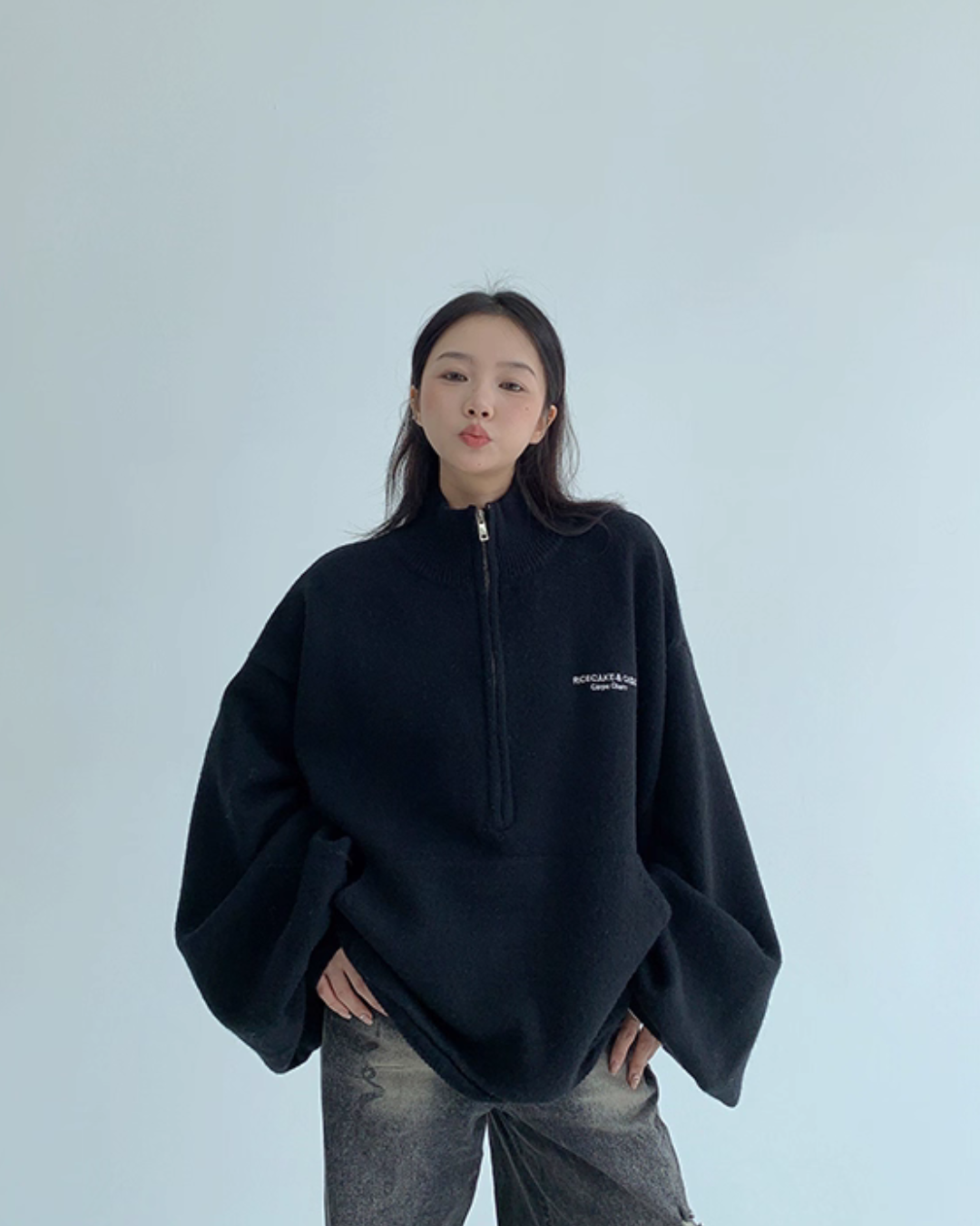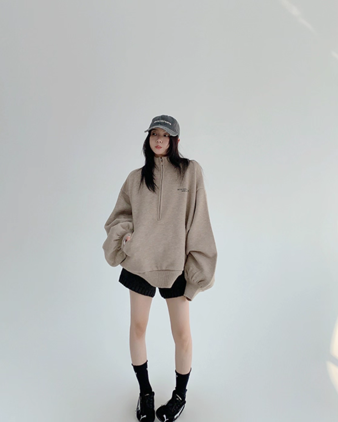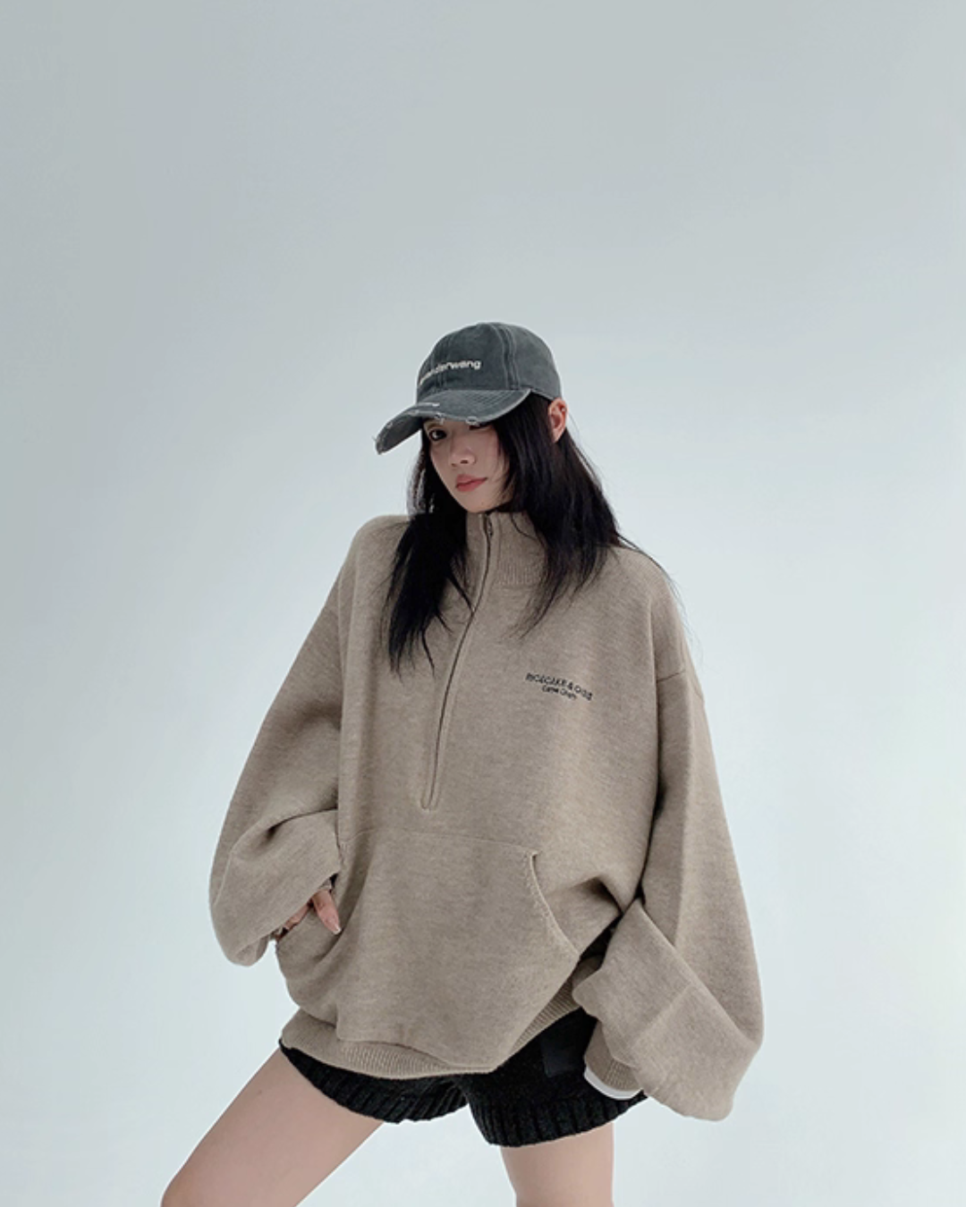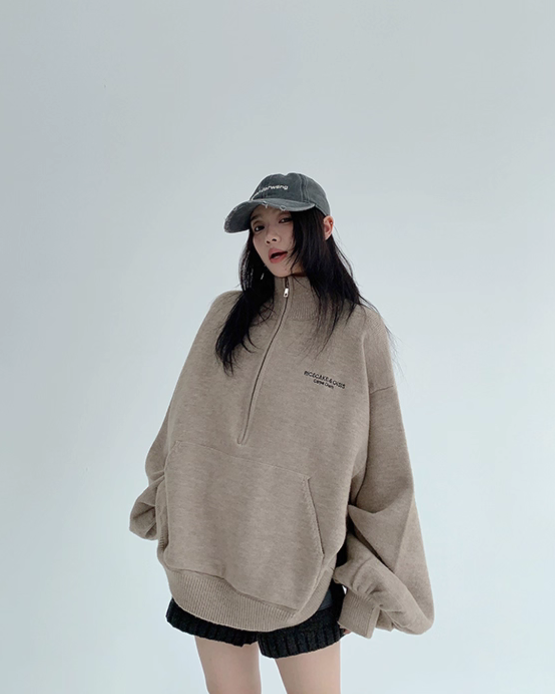 The half-zip at the neck adds a sporty accent, completing a trendy outfit with just one piece.