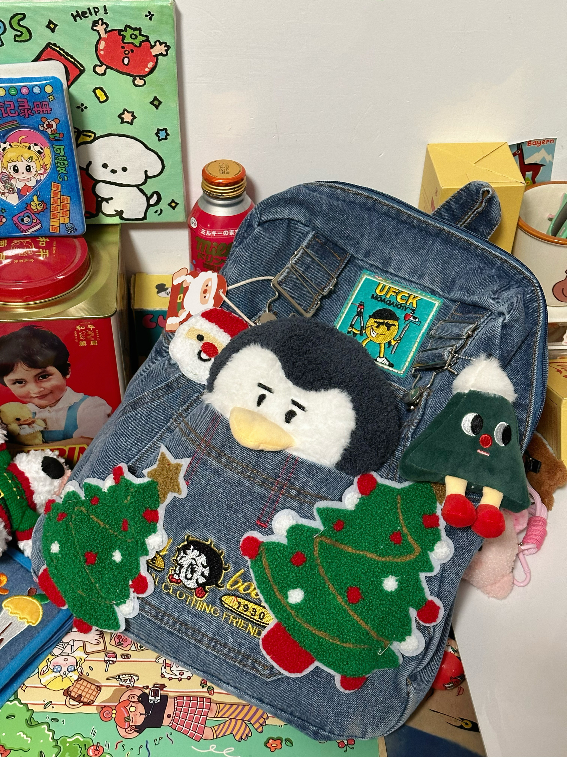 Elevate your holiday style with our Handmade Denim Christmas Series Large-Capacity Backpack for Women, the perfect blend of fashion and functionality. This cute student book bag features a spacious interior to accommodate all your essentials, making it ideal for school, work, or holiday outings. With its unique denim design and festive accents, you’ll stand out in any crowd while enjoying the comfort of adjustable straps. Don’t miss out on this must-have accessory for the season add it to your cart today!