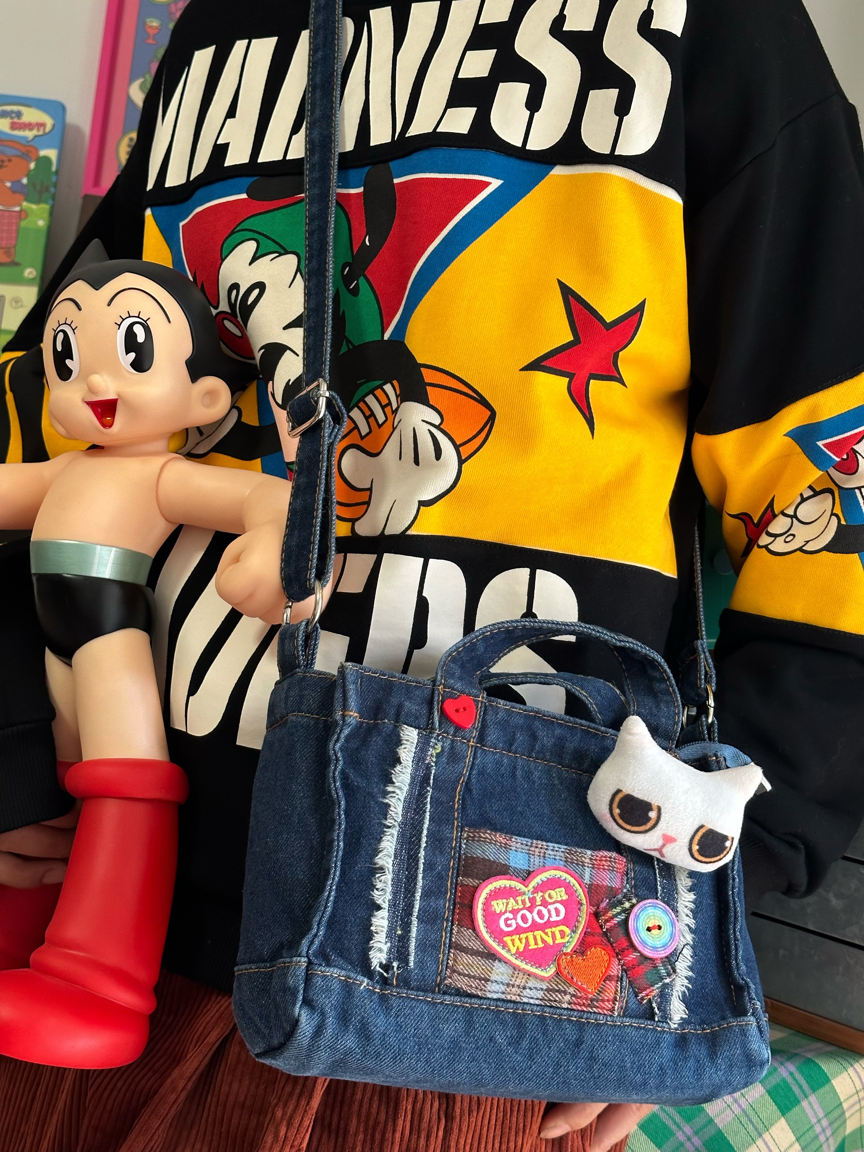 Elevate your style with our Handmade Versatile Denim Shoulder Bag, designed for the modern millennial. This trendy crossbody tote is the perfect blend of retro charm and casual fashion, making it an ideal accessory for students on the go. With its compact size and chic denim fabric, it effortlessly fits all your essentials while adding a touch of flair to any outfit. Don’t miss out on this must-have piece add it to your cart today and step out in style!
