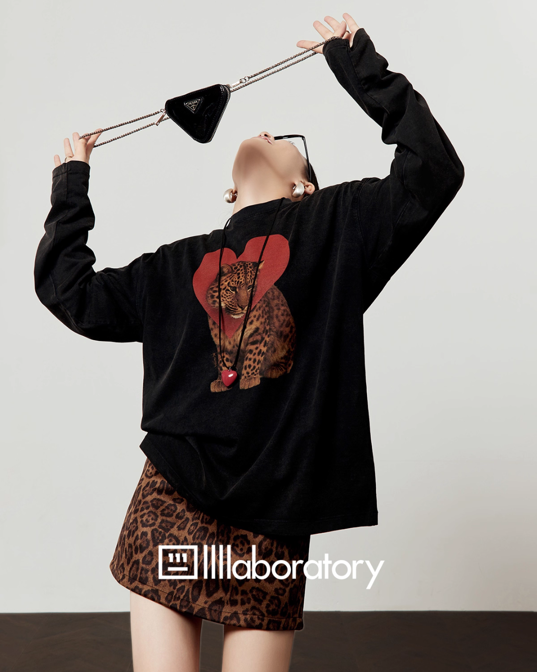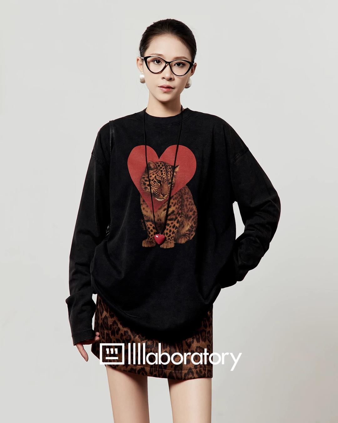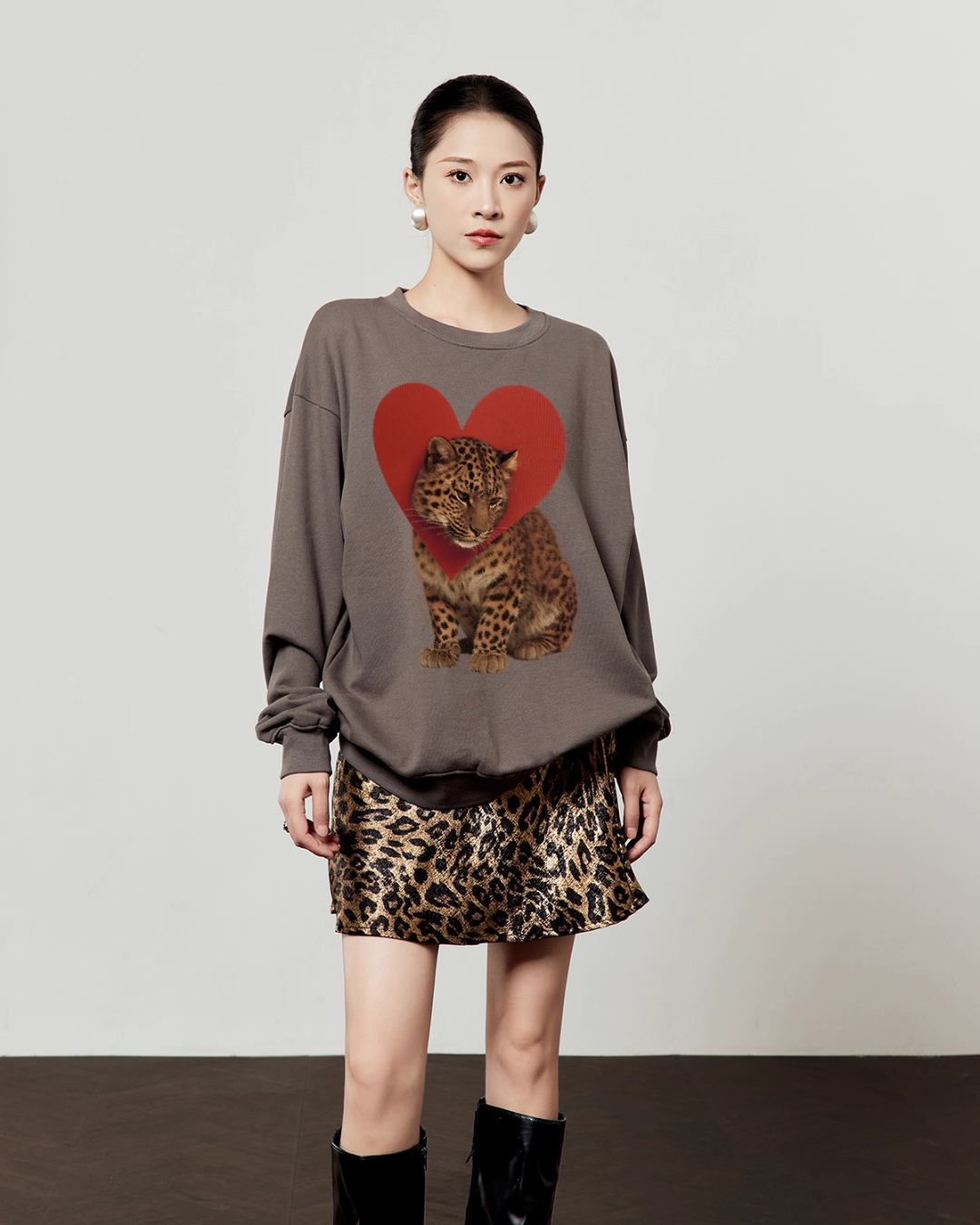 A cute tiger print long-sleeve top and skirt set that is full of charm.