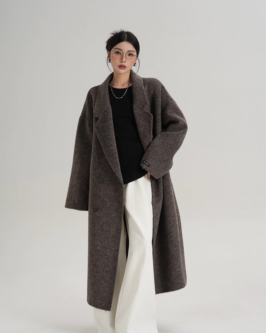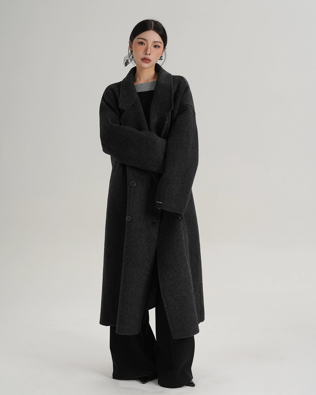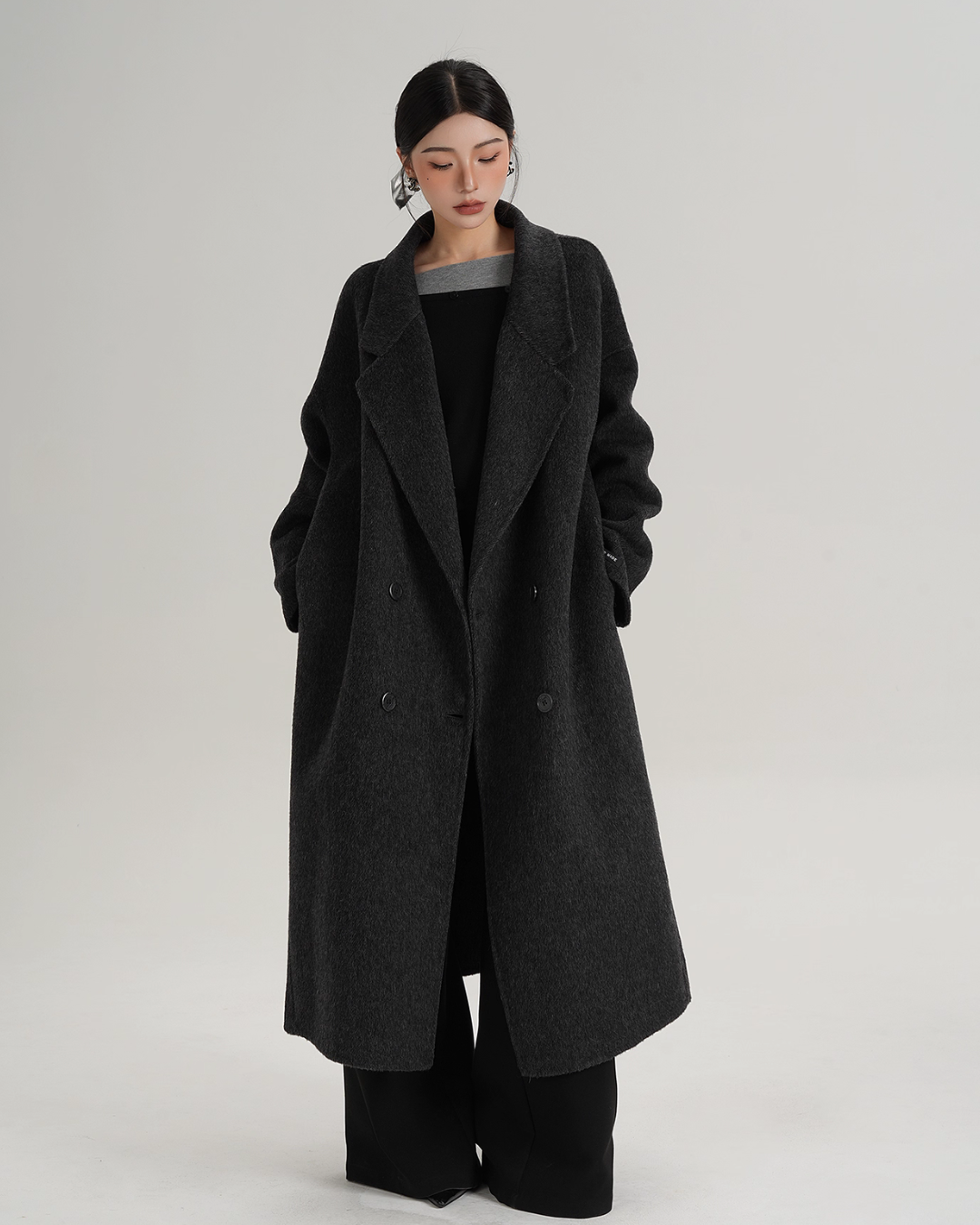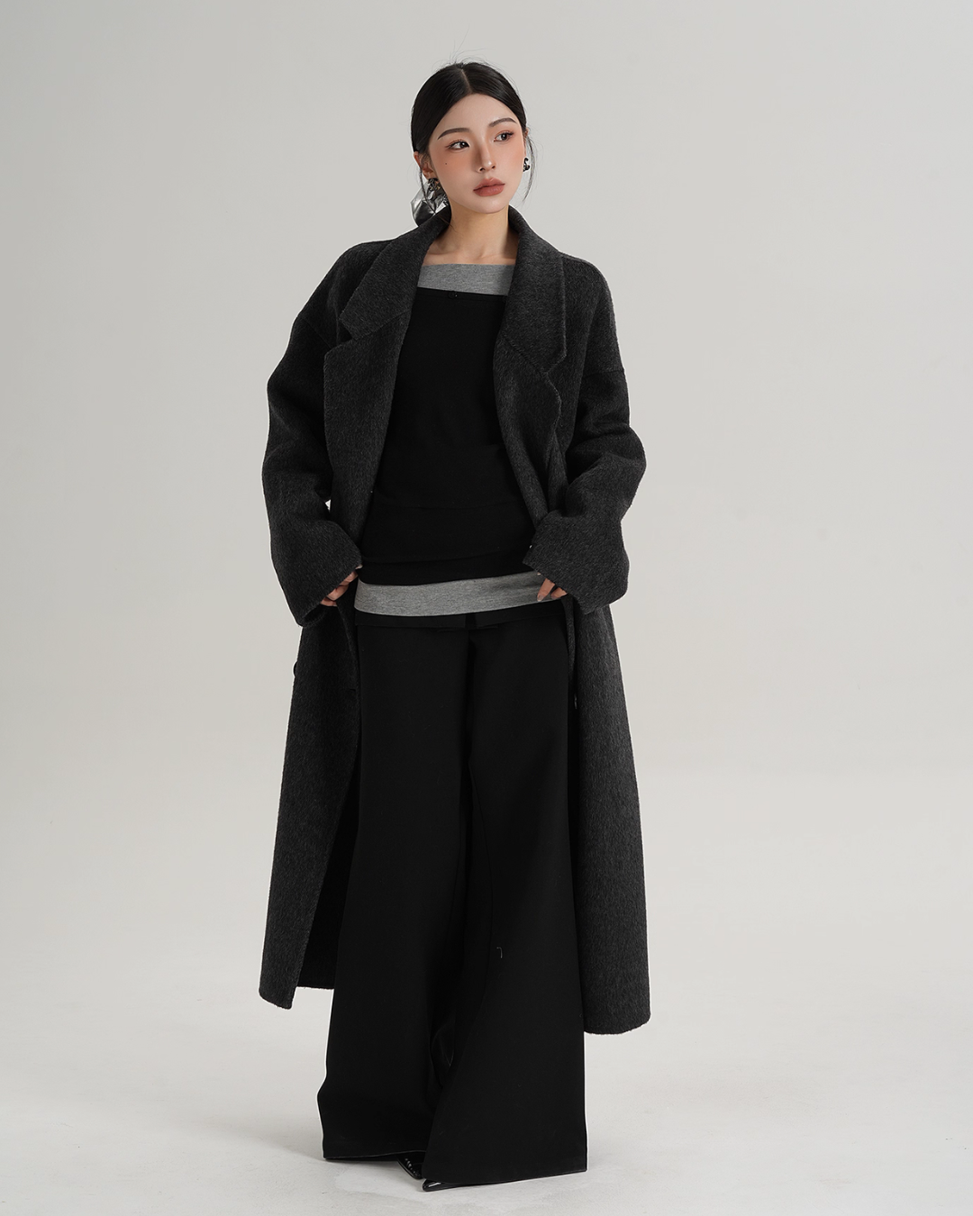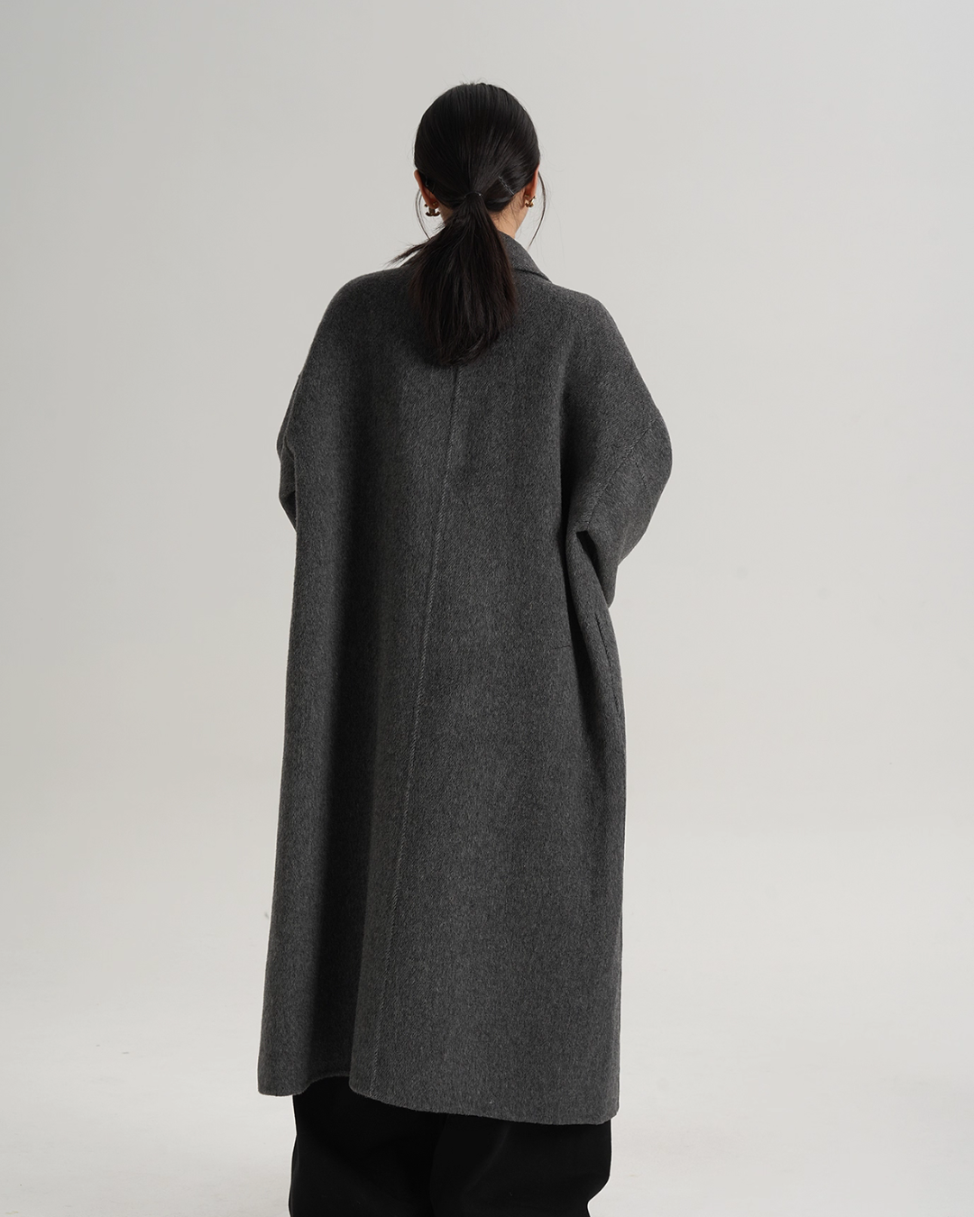 Long coat finished with a material that achieves a warm and comfortable fit.